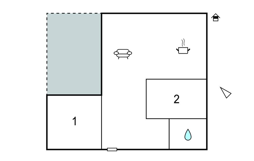 Opholdsstue/køkken 30m2 - 1 Soveplads. (Sofa, madras eller lignende).