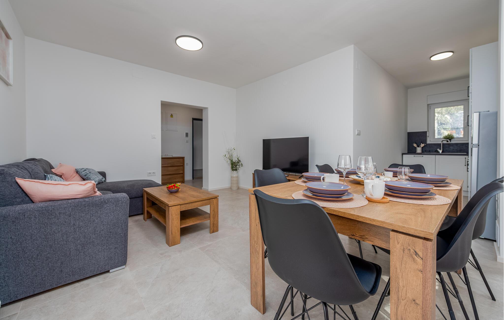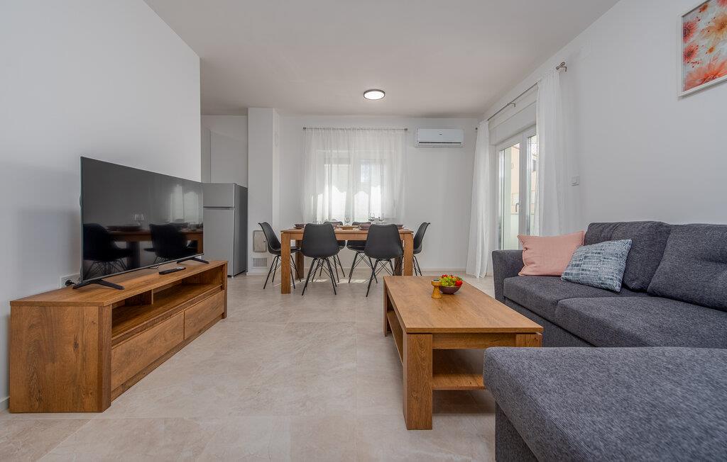 Den moderne møblerede lejlighed byder jer velkommen i ideel beliggenhed tæt på stranden og er perfekt til en ferie med skønne stunder ved vandet. Nyd tiden sammen, og tilbring hyggelige aftener i den indbydende stue på den behagelige sofa, måske med en god film.