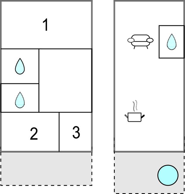 Badeværelse 4m2 (nr. 2) - WC. Varmt og koldt vand. Bruser