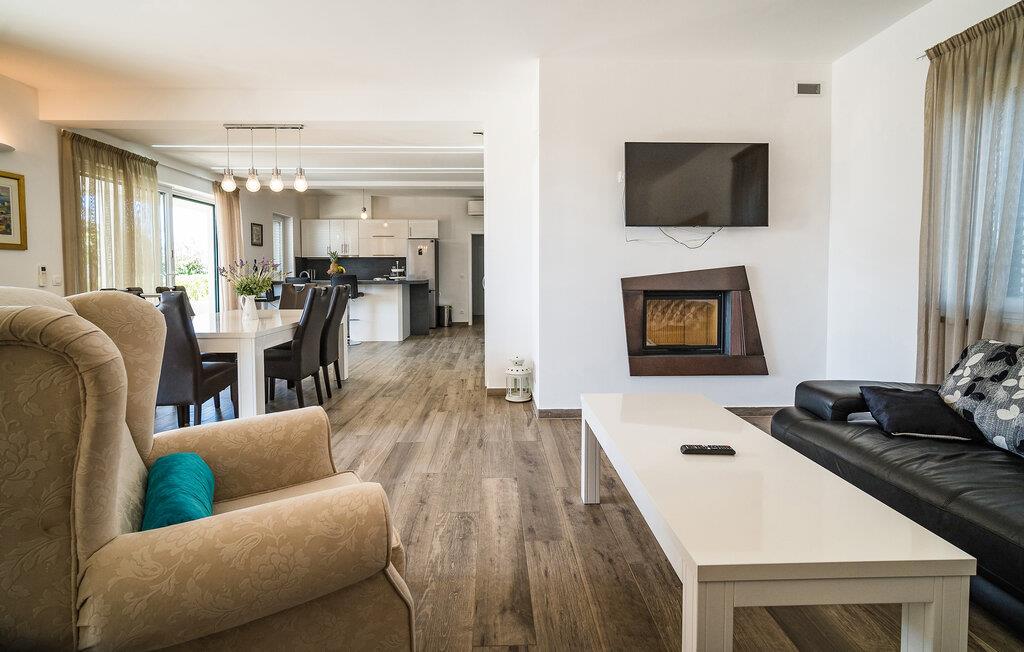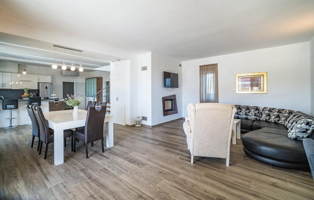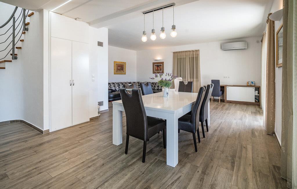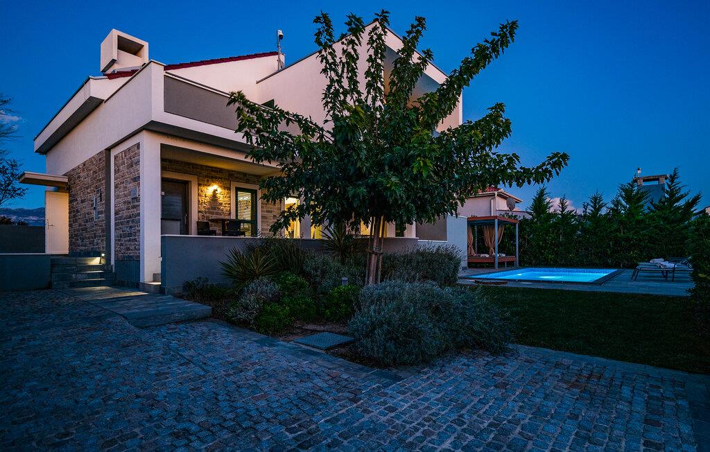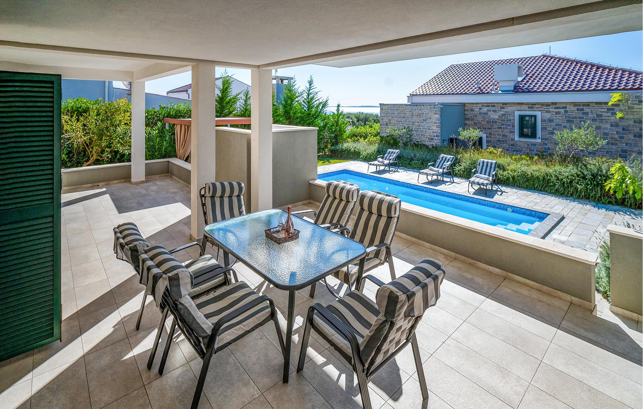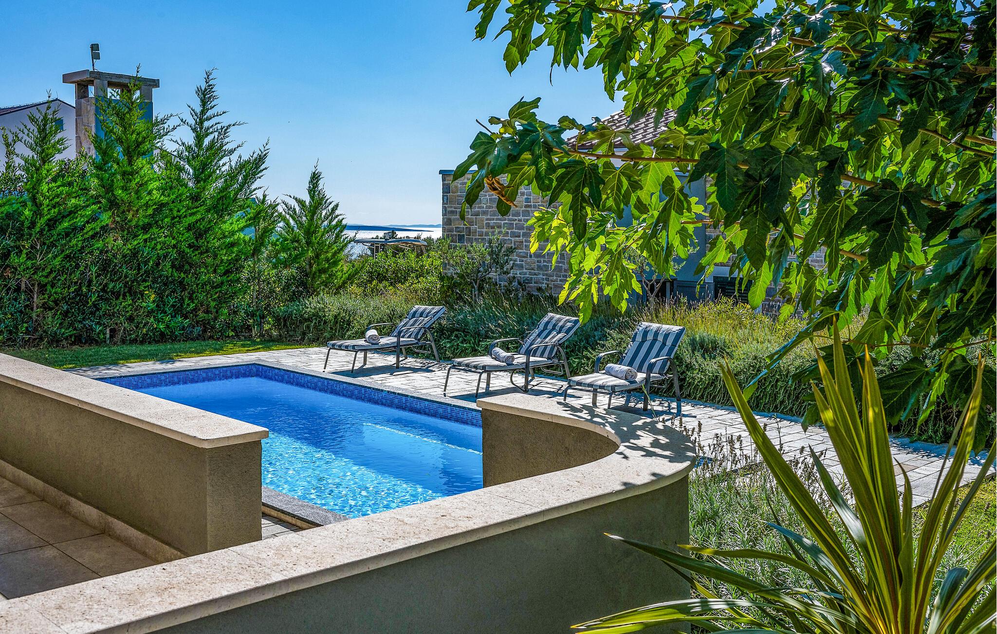 Lad turen gå til den dejlige ø Pag, hvor der venter jer en herlig bolig i dette rummelige og moderne hus. Huset er fordelt over to etager og er virkelig lækkert. Indretningen fremtræder elegant og attraktivt, og med de mange gode faciliteter kommer I ikke til at mangle noget her. Tværtimod. Begynd dagen på jeres egen altan ved soveværelset og nyd morgenkaffen eller måske lidt yoga. I den åbne stue kan I mødes til en lækker morgenmad, inden I dypper jer i poolen eller finder jer godt til rette med en god bog i liggestolene.