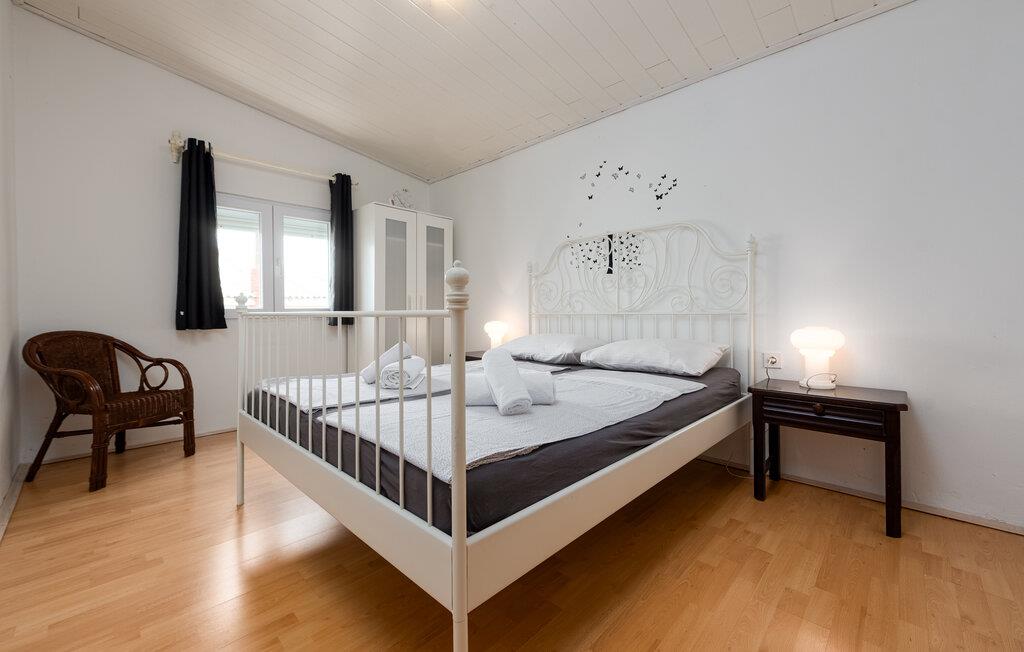 Glæd jer til afslappende dage i denne hyggelige ferielejlighed med adgang til poolen. Dette rummelige feriehus er ideelt for dem, der søger fred og ro, og som ønsker at lægge hverdagen bag sig i smukke omgivelser. Forkæl hinanden med jeres yndlingsretter, nyd harmoniske måltider, mens I kigger ud over det vidtstrakte landskab, og slap af efter en lang dag i den behagelige sofa for at streame en film eller tilbringe tid med familien under en spilleaften. Nyd jeres første kaffe på jeres terrasse i skyggen af parasollen. Bagefter kan I slentre til den fælles pool, nyde solen på en liggestol eller hygge jer omkring grillen. Vandr på Life on Mars-ruten nær Metajna og nyd den spektakulære udsigt over det golde månelandskab. Besøg saltmarsken i Pag, tag en bådtur til Zavratnica-bugten, og nyd regionale specialiteter i den nærliggende restaurant.