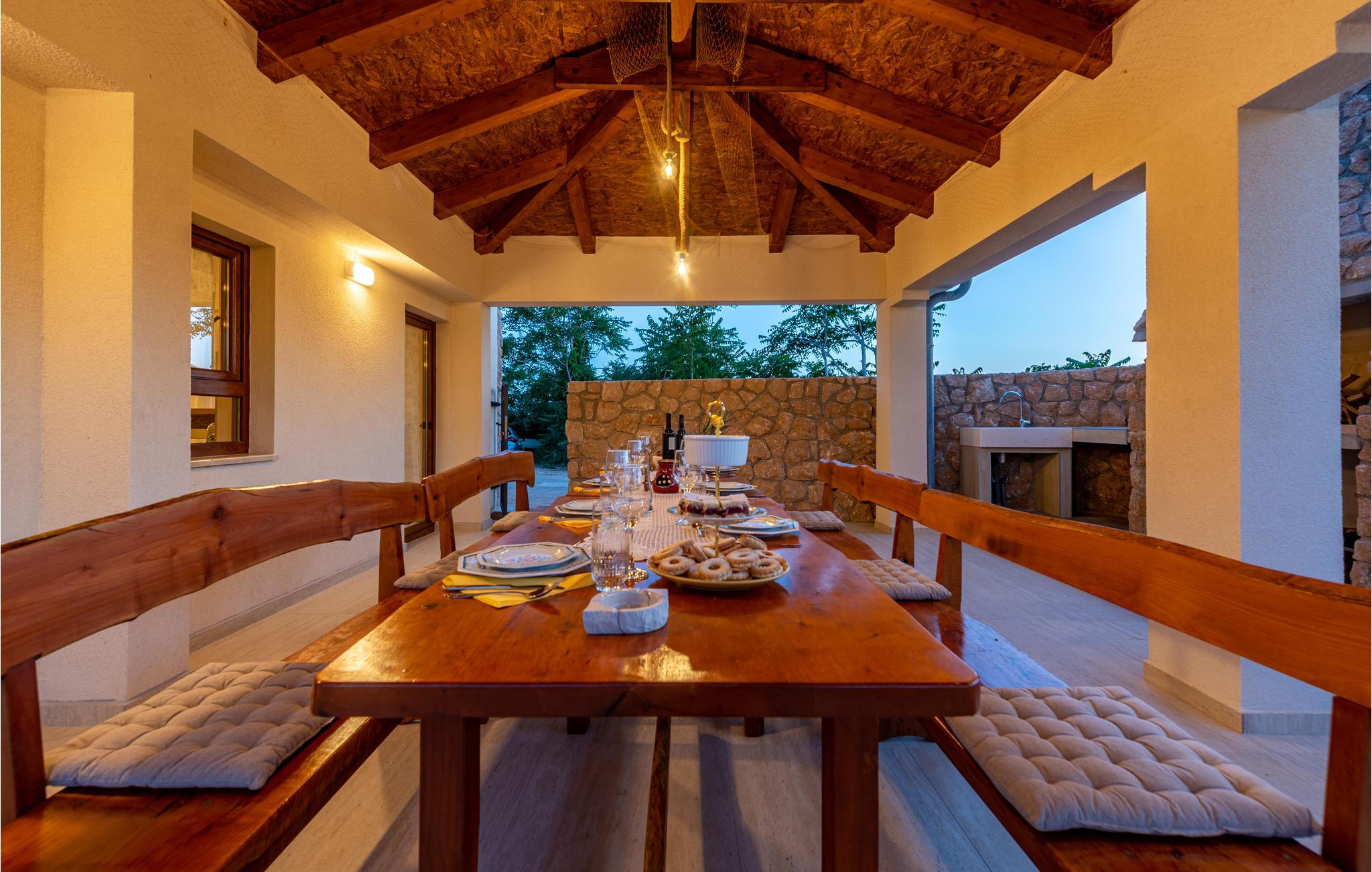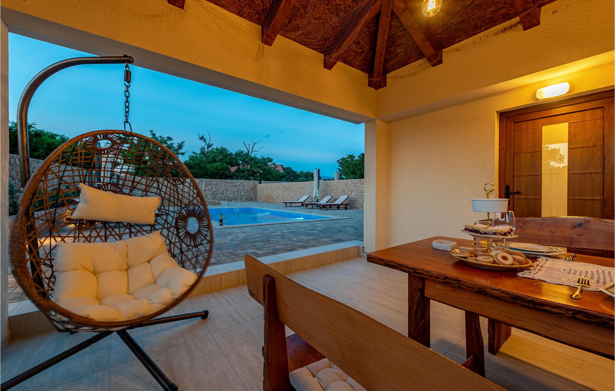 Rejs til øen Pag med familien og flyt ind i dette skønne feriehus med havudsigt. I kan føle jer hjemme i to etager og nyde den hyggelige indretning og gode faciliteter. Brug tid i den hyggelige stue, som kombinerer afslapning i sofaen, leg ved spisebordet og madlavning.