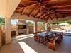 I kan nyde jeres måltider på den store, overdækkede terrasse, som også indbyder til fælles grillaften om aftenen. En opvarmet pool venter jer lige ved siden af, som inviterer jer til at have det sjovt i vandet og køle ned.