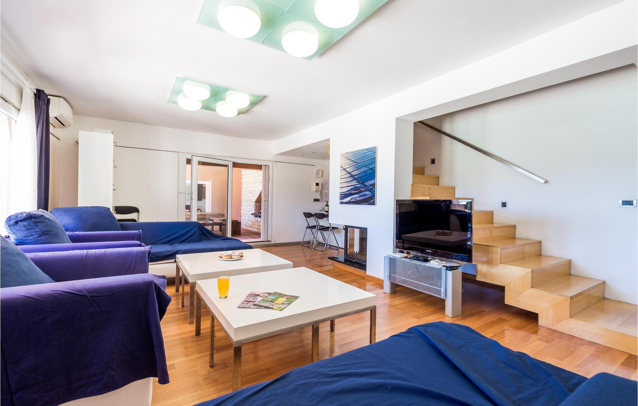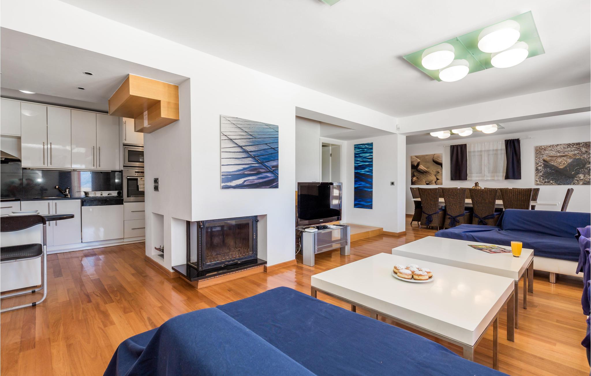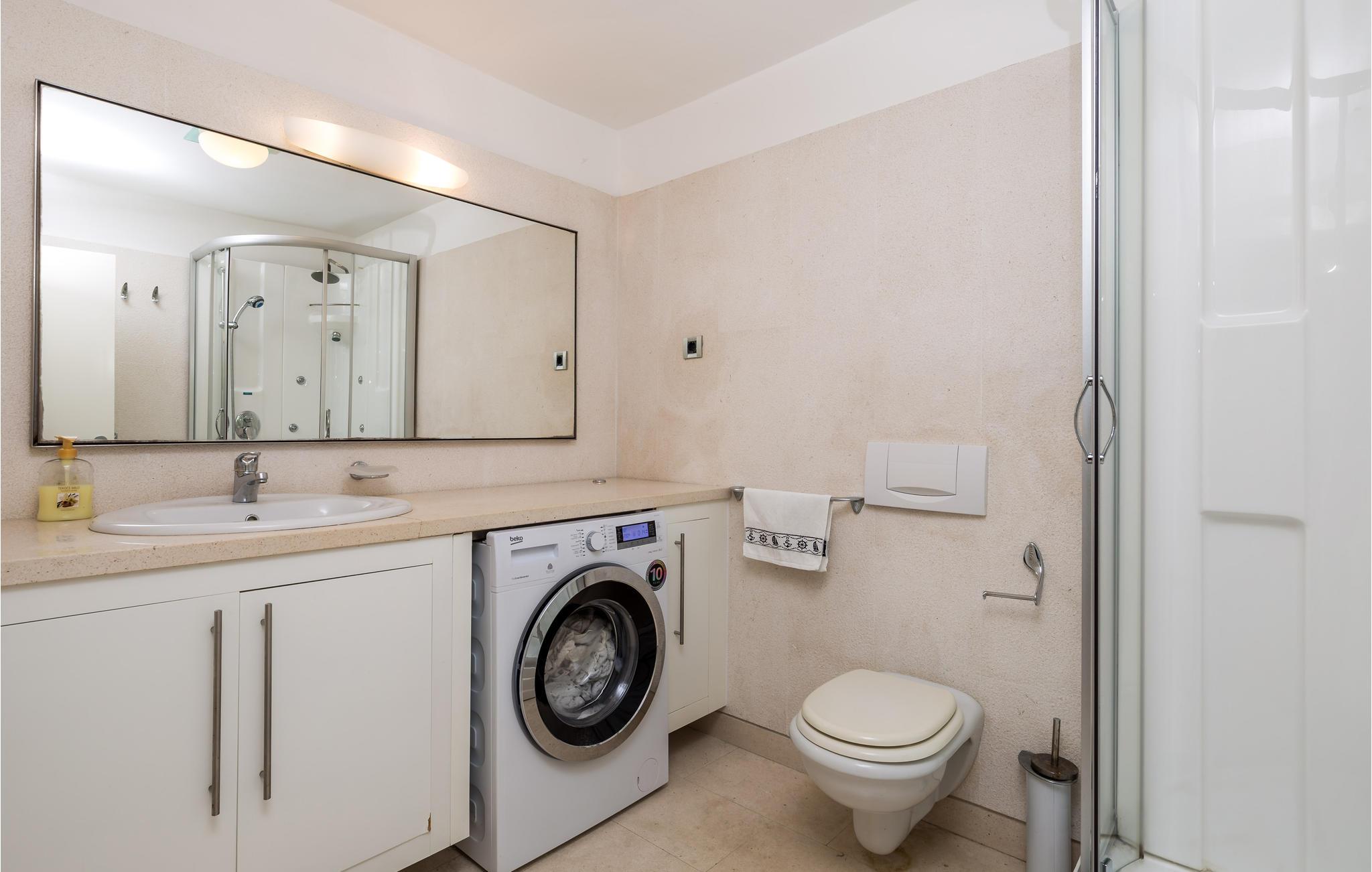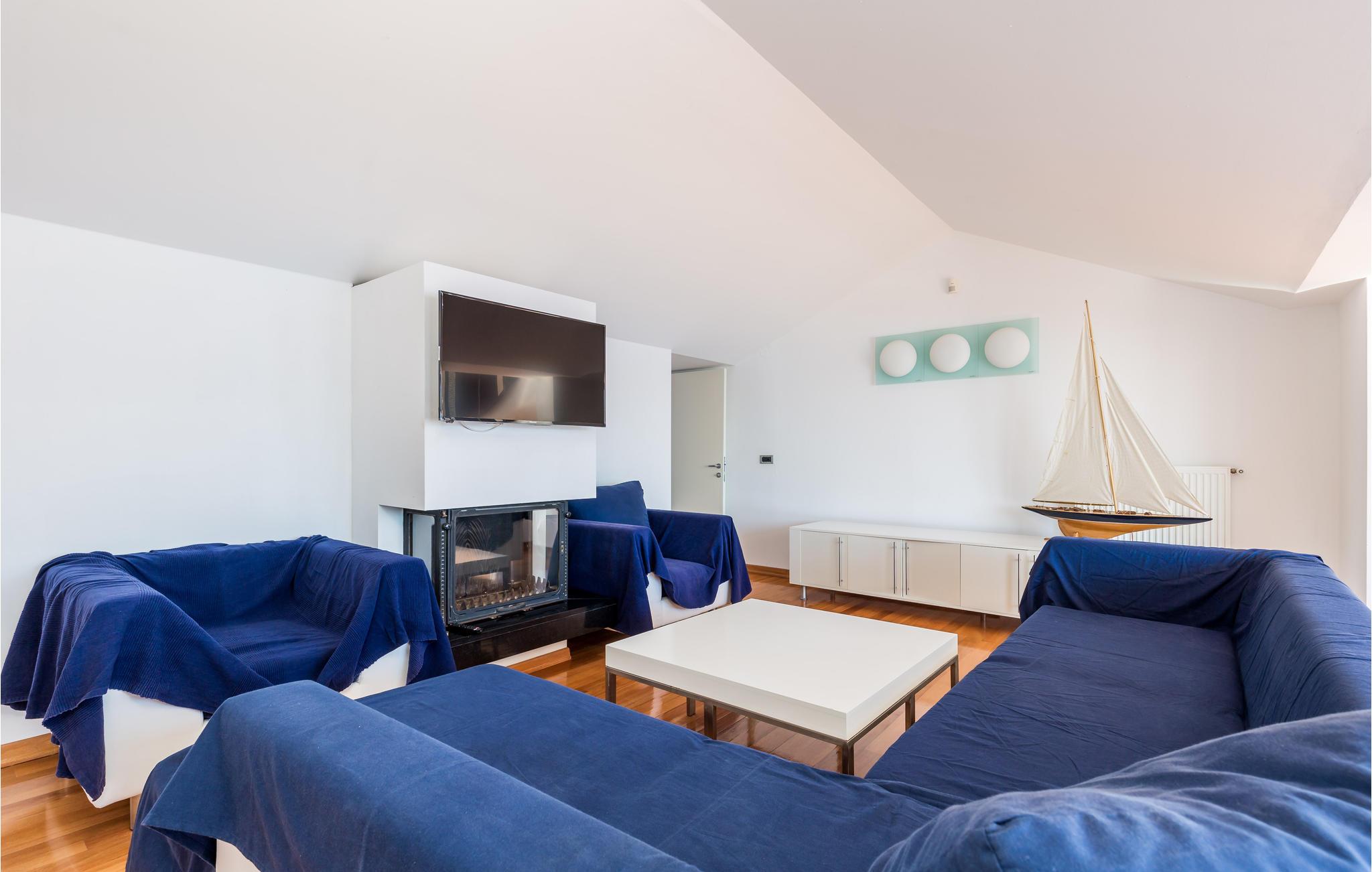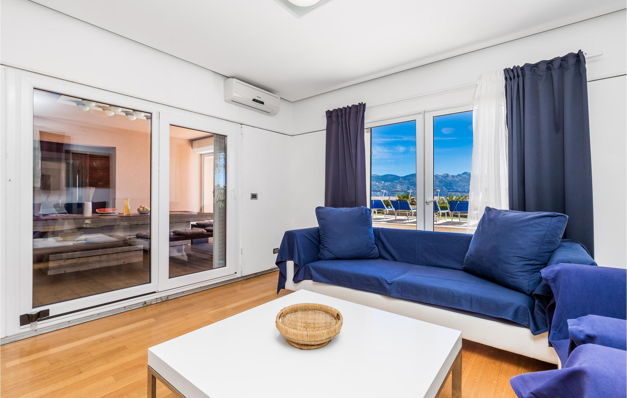 Und jer selv en luksusferie, og tilbring de bedste dage på året i dette fantastiske drømmehus i rolige omgivelser. Allerede i stueetagen mærker I den behagelige og stilfulde indretning. Her finder I det store opholdsrum med det veludstyrede køkken og spisekrog samt et badeværelse. I den centrale del af stueetagen er en stor, overdækket terrasse, som hænger sammen med en hyggelig 'konoba', et badeværelse og yderligere et (mindre) opholdsrum. Fra begge opholdsrum er der en fantastisk udsigt over havet, og kun en skydedør skiller jer fra poolterrassen. Via en indendørs trappe eller en udendørs vindeltrappe kommer I til 1. sal med soveværelser og yderligere 2 badeværelser. Til soverum 2,3 og 4 hører overdækkede terrasser. På 2. sal ligger soverum 5, hvor den ene væg er af glas. Det giver en meget flot udsigt over byen Pag og Velebit-kanalen. Fra alle rum er der udsigt til hav og pool. Området omkring poolen er flisebelagt og indbyder til solbadning. Men skulle det blive for varmt, kan man bare gå ind i skyggen i pavillonerne og nyde en kold forfriskning og udsigten til Velebit-bjergene. Om aftenen er poolen oplyst, hvilket fremkalder en romantisk stemning. Grunden er indhegnet og god for børnene at lege på. Stranden neden for huset er en stenstrand, men en kiselstrand ligger kun få minutter derfra til fods. Byen Pag ligger 3 km væk. Her kan I komme på bådtur og lære at dykke. Besøg de lokale restauranter, og husk endelig at få smagt lammekødet og den krydrede Pag-ost. Skrå lofter i tagetagen med mindste loftshøjde 1,20 m.