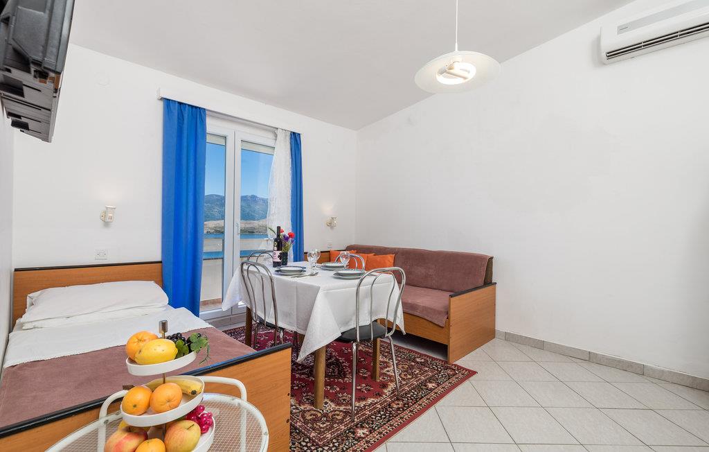 Lejligheden ligger på 1. sal og tilbyder sine gæster en vidunderlig panoramaudsigt over havet. Den er lys, moderne og indbydende og tilbyder plads til 4 personer til en dejlig ferie i enhver sæson. Takket være klimaanlægget er her altid behageligt, selv på de varmeste sommerdage.