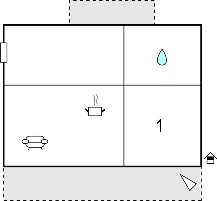 Komb. spisestue/køkken 20m2 - 1 Soveplads. (Enkeltseng(e)). 1 Soveplads. (Sofa, madras eller lignende).