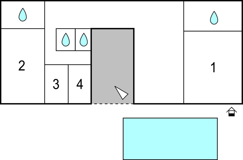 Badeværelse 3m2 (nr. 1) - WC. Varmt og koldt vand. Bruser