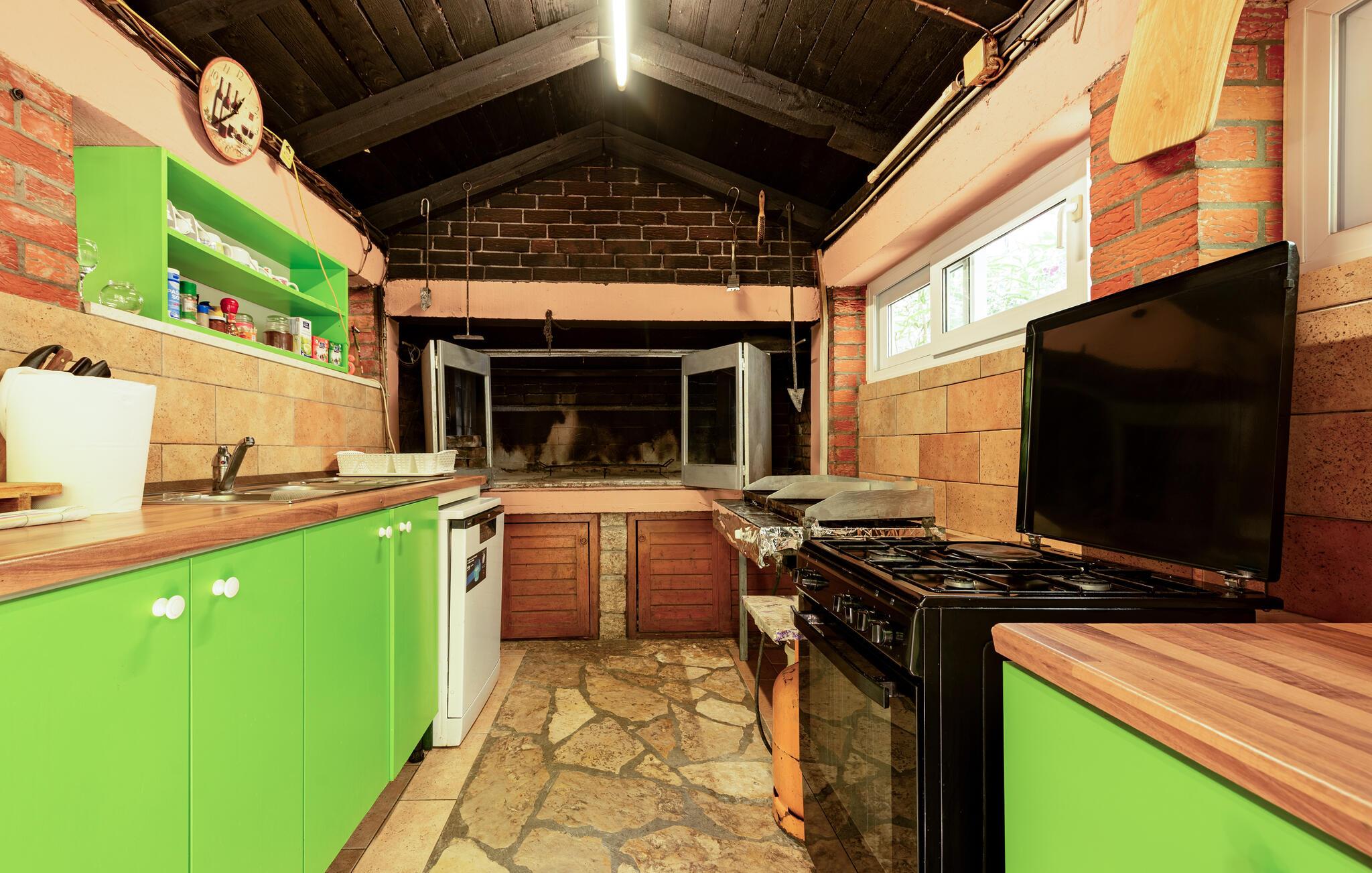 Glæd jer til lækre måltider på jeres overdækkede terrasse og nyd den smukke havudsigt. Brug de fælles grillfaciliteter til hyggelige aftener, hyg jer i udekøkkenet, spil bordtennis og lad jeres børn nyde de mange legemuligheder på den store, fredede ejendom.