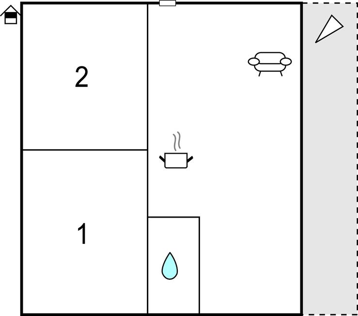 Opholdsstue/køkken - 1 Soveplads. (Sofa, madras eller lignende).