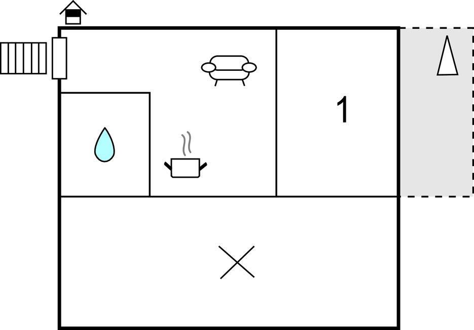 Opholdsstue/køkken - 1 Soveplads. (Sofa, madras eller lignende).
