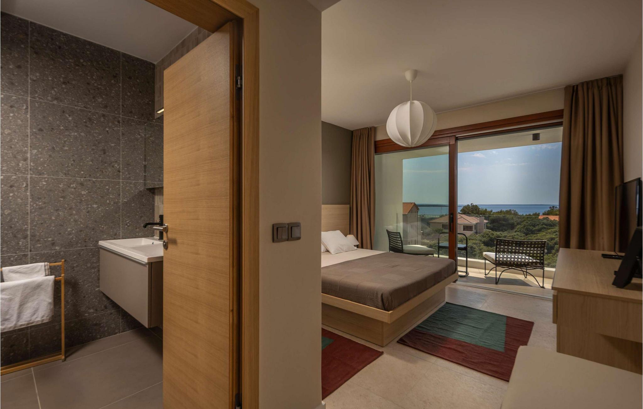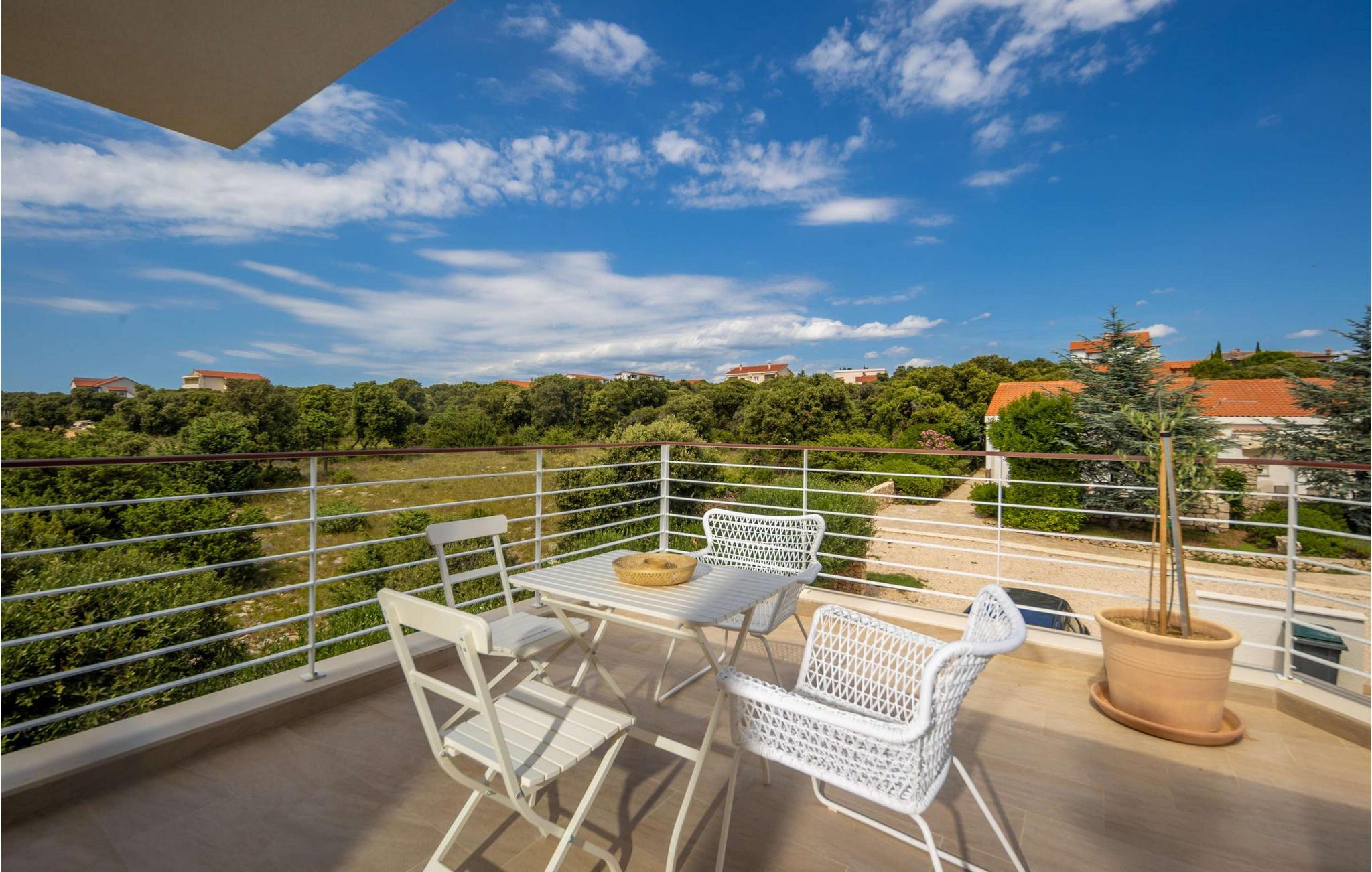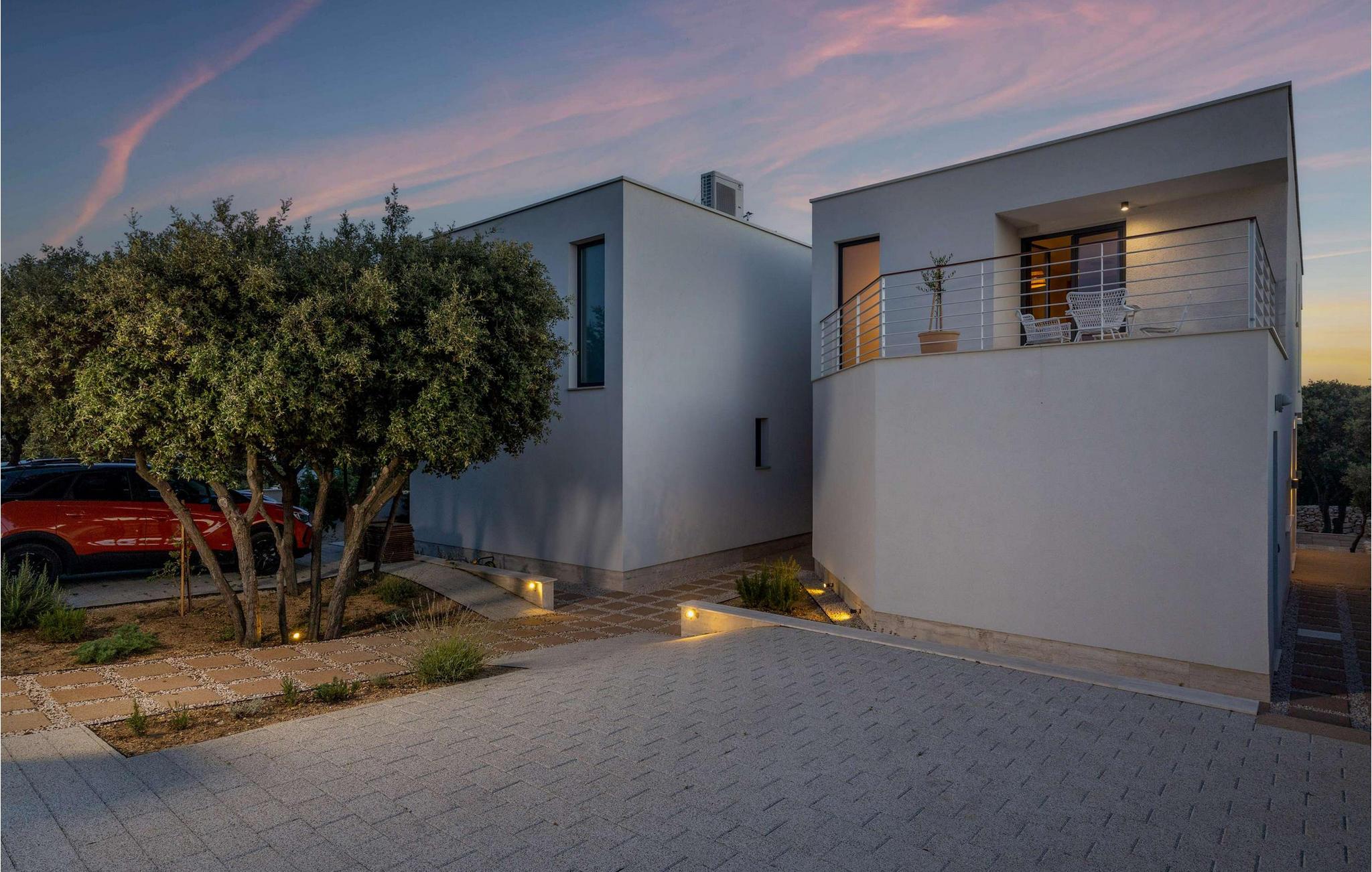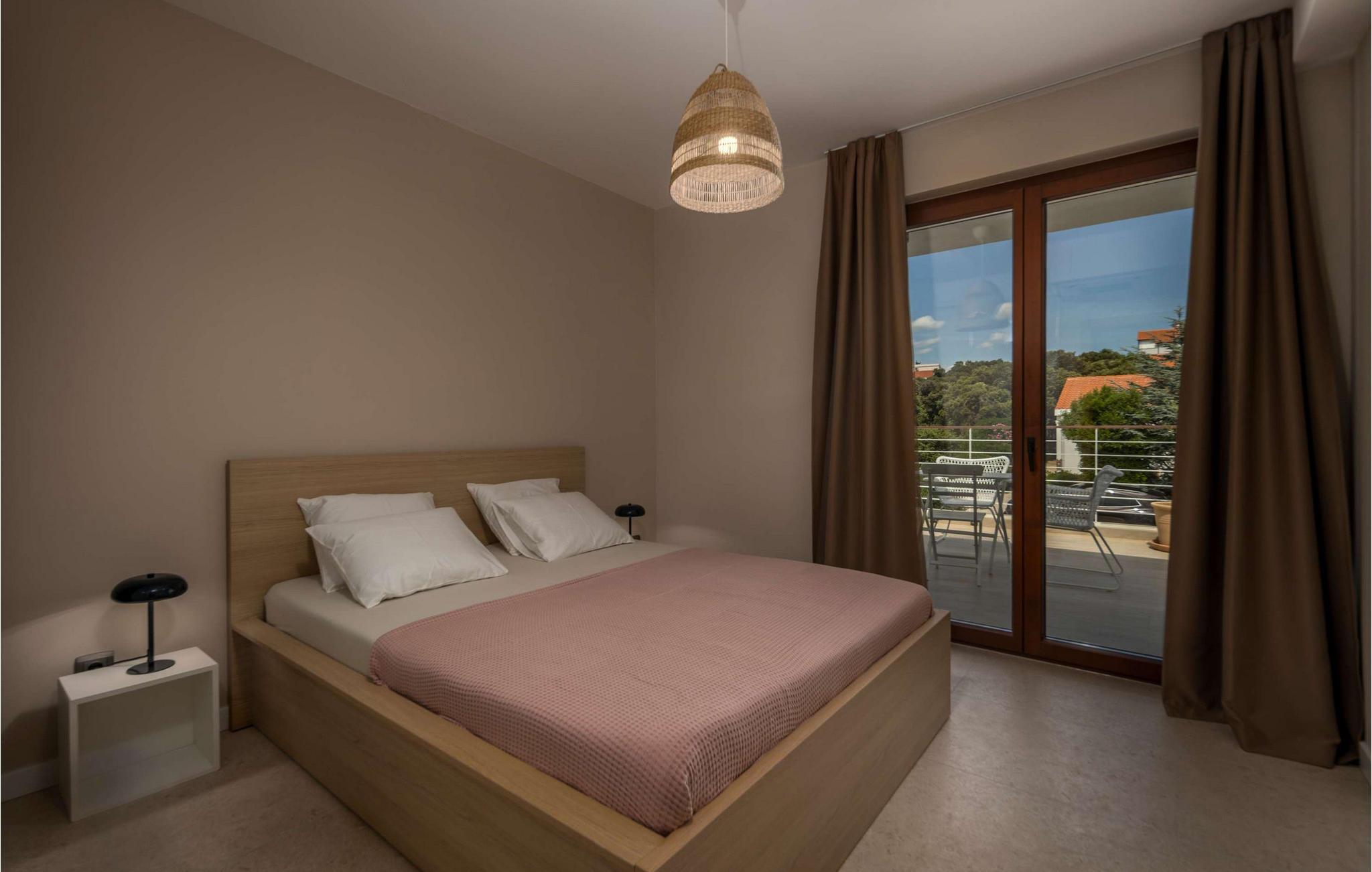 Villa Terakota Mandre ligger på sydsiden af øen Pag, omkring 10 km fra den berømte Zrce-strand, i byen Mandre. Den smukke udsigt over øerne Silba og Olib og de nærliggende øer Maun og Škrda, det klare hav og rene strande tiltrækker uimodståeligt besøgende, der ønsker en fredelig ferie i naturlige omgivelser. Vil du væk fra hverdagens stress og jag og slappe af i krop og sind i selskab med familie og venner, så er du kommet til det rette sted! Villa Terakota Mandre blev bygget i 2022 i en moderne arkitektonisk stil og tilbyder sine gæster 160 m2 boligareal, mens det samlede areal af ejendommen er 450 m2. Lige ved siden af Villa Terakota Mandre ligger Villa Oliva Mandre, som også kan bookes separat, hvilket giver gæsterne fuldstændig privatliv under deres ophold. Villa Terakota Mandre kan maksimalt rumme 8 personer, det optimale antal gæster er 6. Villaen er fuldt klimatiseret og består af en stueetage og en øverste etage. I stueetagen er der en stue, hvor du finder en sofa, en lænestol, et lille bord og et tv, og i det moderne udstyret køkken og spisestuen med et bord til 8 personer kan du tilberede og nyde lækre måltider. Ovenpå vil du bo komfortabelt i 3 soveværelser med dobbeltsenge og to badeværelser, det ene med badekar og det andet med eget badeværelse med brusekabine. Fra soveværelserne, terrassen og køkkenet kan du nyde udsigten over det rene og klare Adriaterhav. På den udendørs terrasse er der en opvarmet swimmingpool med en størrelse på 32 m2 og en dybde på 1,2 – 1,8 m. Du kan solbade på 4 liggestole og tilberede din mad ikke kun i villaen men også på terrassen, hvor der er en udendørs kul- eller trægrill. Om aftenen kan du selvfølgelig også finde dig til rette på terrassen i udendørssofaen eller ved det udendørs spisebord med 6 siddepladser. Yderligere faciliteter inkluderer en vaskemaskine, en tørretumbler og et strygejern samt et separat toilet. Kommer børn med på ferie, har du et fodertrug og en tremmeseng til din rådighed. Sofaen i stuen fungerer som en ekstra seng til to personer. Gården til Villa Terakota Mandre er fuldstændig indhegnet og tilbyder 2 private parkeringspladser. Børnene har plads nok til at lege og have det sjovt, der er også en smukt anlagt have og masser af grønt i gården. Restauranter og cafeer langs kysten, regelmæssigt organiserede temabegivenheder såsom fiskefestivaler, samt værternes gæstfrihed vil hjælpe med at gøre din ferie og din families ferie i Mandre fredelig og romantisk. I en lille bugt, i centrum af Mandri, er der stranden Mala Mandra - siden 2006 en Blå Flag-bærer. På grund af sin fremragende adgang til havet er denne unikke stenstrand velegnet til både børn og mennesker med handicap. Forkæl dig selv med en drømmeferie og hav det sjovt med at bo på Villa Terakota Mandre! Velkommen! Kæledyr er tilladt på denne ejendom efter ejerens skøn eller mod et gebyr.