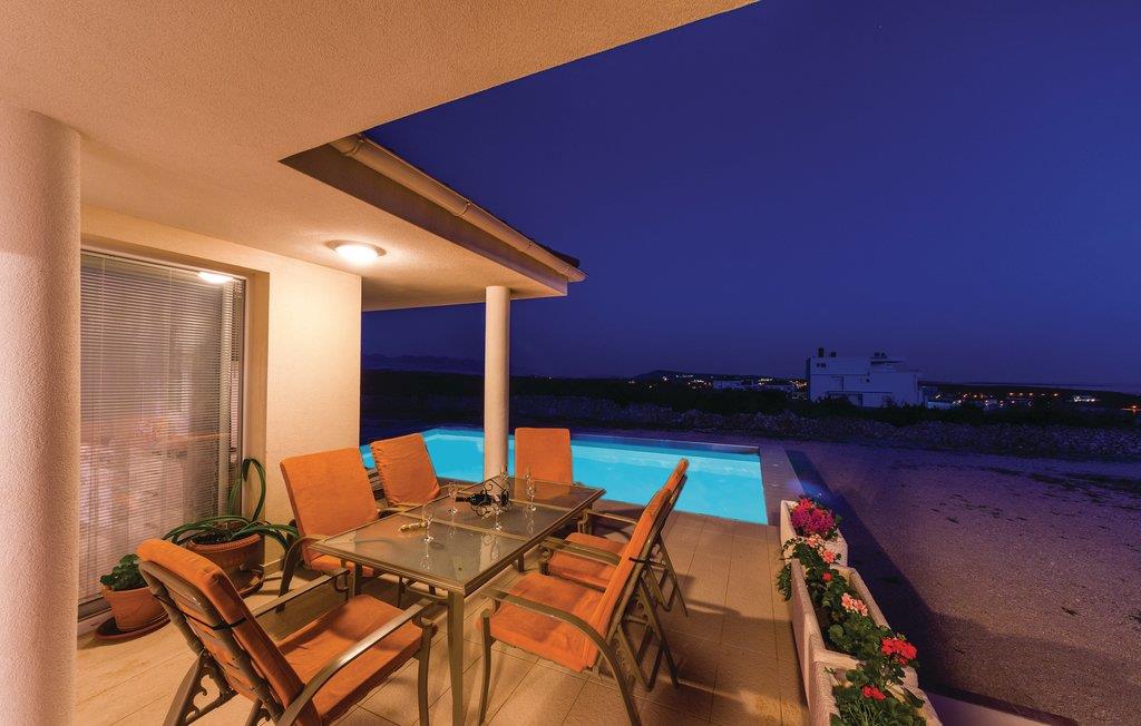 På en stor grund på 2000 m² på halvøen Pag ligger dette moderne feriehus. Afkøling finder I helt sikkert i den store pool med sine 77 m². Huset er godt udstyret og godt isoleret, så at trafikken på den nærliggende gade ikke vil forstyrre jer. Etagerne er forbundet med en vindeltrappe. Fra terrassen har I en skøn havudsigt, som I vil nyde til morgenkaffen. I nærheden er der en olivenpark, hvor der vokser 1000 år gamle oliventræer, som parkguiden gerne vil vise jer. Byen Novalja er kendt for sin skønne sandstrand og mange restauranter, men Zrce-Stranden er den kendteste. Øen Pag er kendt for sin gedeost, som I endelig skal smage.