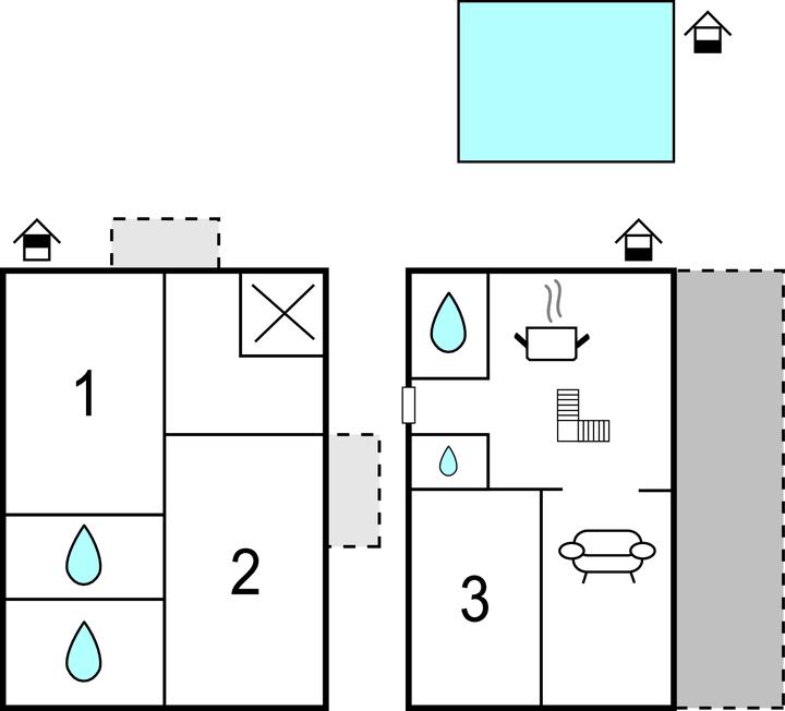 Opholdsstue/køkken - 2 Sovepladser. (Sofa, madras eller lignende).