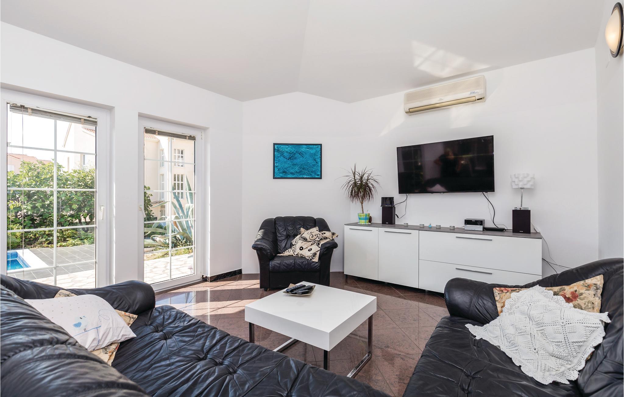 Denne skønne feriebungalow er omgivet af Dalmatiens skønne planter og blomster i alle farver. Den ligger heller ikke langt fra Novaljas centrum. Her er tre soveværelser, grunden deles med husets ejer. Novaljas særkende er de skønne strande, på den berømteste, partystranden Zrce holdes der fest hver aften, hvor nogle af de meste berømte DJ’s spiller op. Byen Pag, med mange gode restauranter, det unikt smukke landskab, strandene og den bekvemme infrastruktur til øen over en bro, er kun lidt af alt det, der gør Pag til et meget populært feriemål.