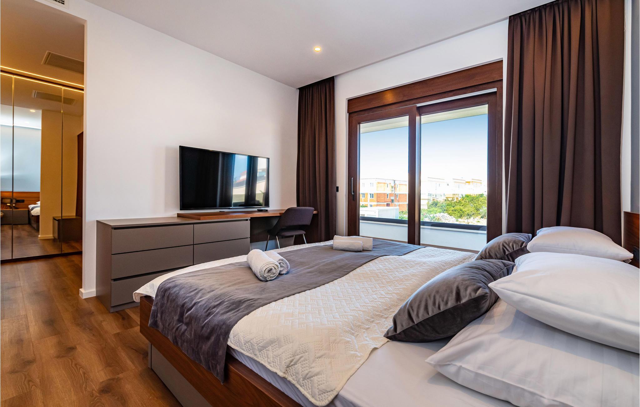Glæd jer til en luksuriøs familieferie på øen Pag! I kommer til at bo i en smuk, moderne villa, der vil passe til alle familiemedlemmer. Tilbring jeres værdifulde tid i denne smarte villa, der tilbyder attraktive fællesarealer, men også privatliv, der fører til afslapning for alle. I huset finder I flere hyggelige soveværelser med badeværelser en suite. Boligen byder på utallige muligheder. I kan lave mad, spise, lege eller slappe af sammen. Poolbordet og Playstation vil være særligt populære hos børn og barnlige sjæle.