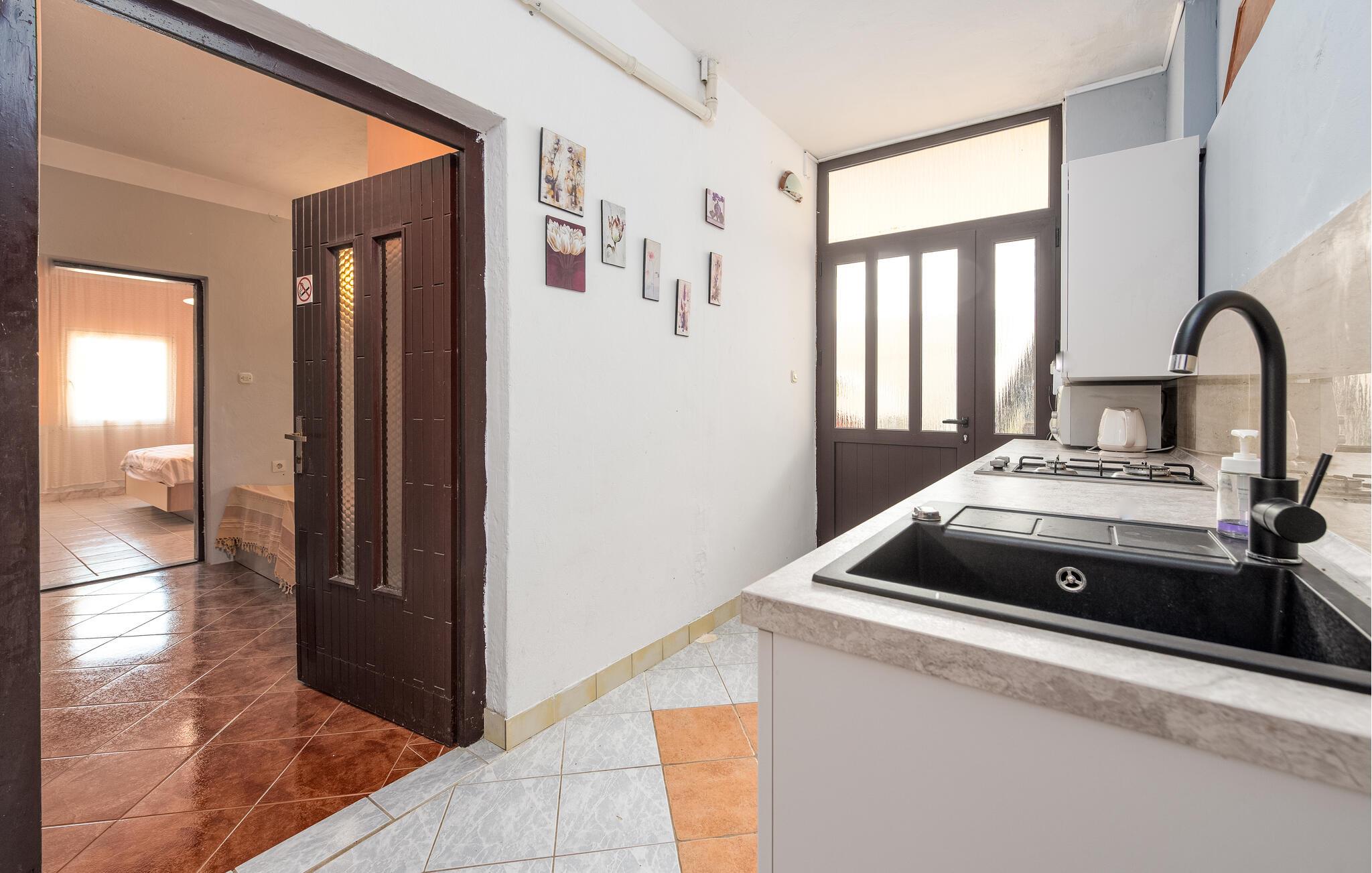 En ferie for fire, lige ved vandet, venter jer i denne indbydende ferielejlighed på den smukke ø Pag. Nyd en afslappende pause fra hverdagen i de lyse rum. Tilbered jeres måltider eller en picnic til stranden i det venlige køkken, og planlæg jeres udflugter i de solbeskinnede omgivelser.