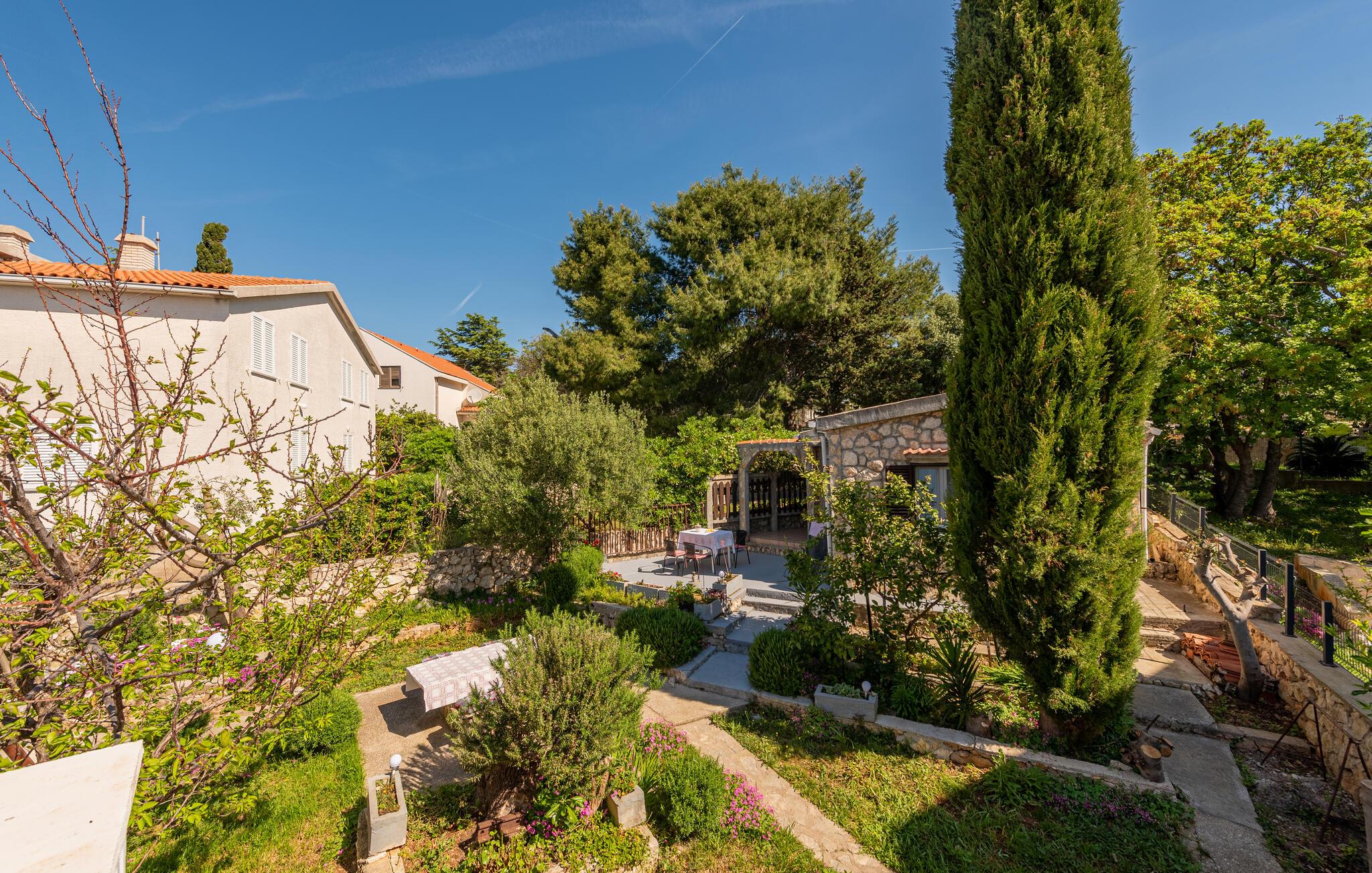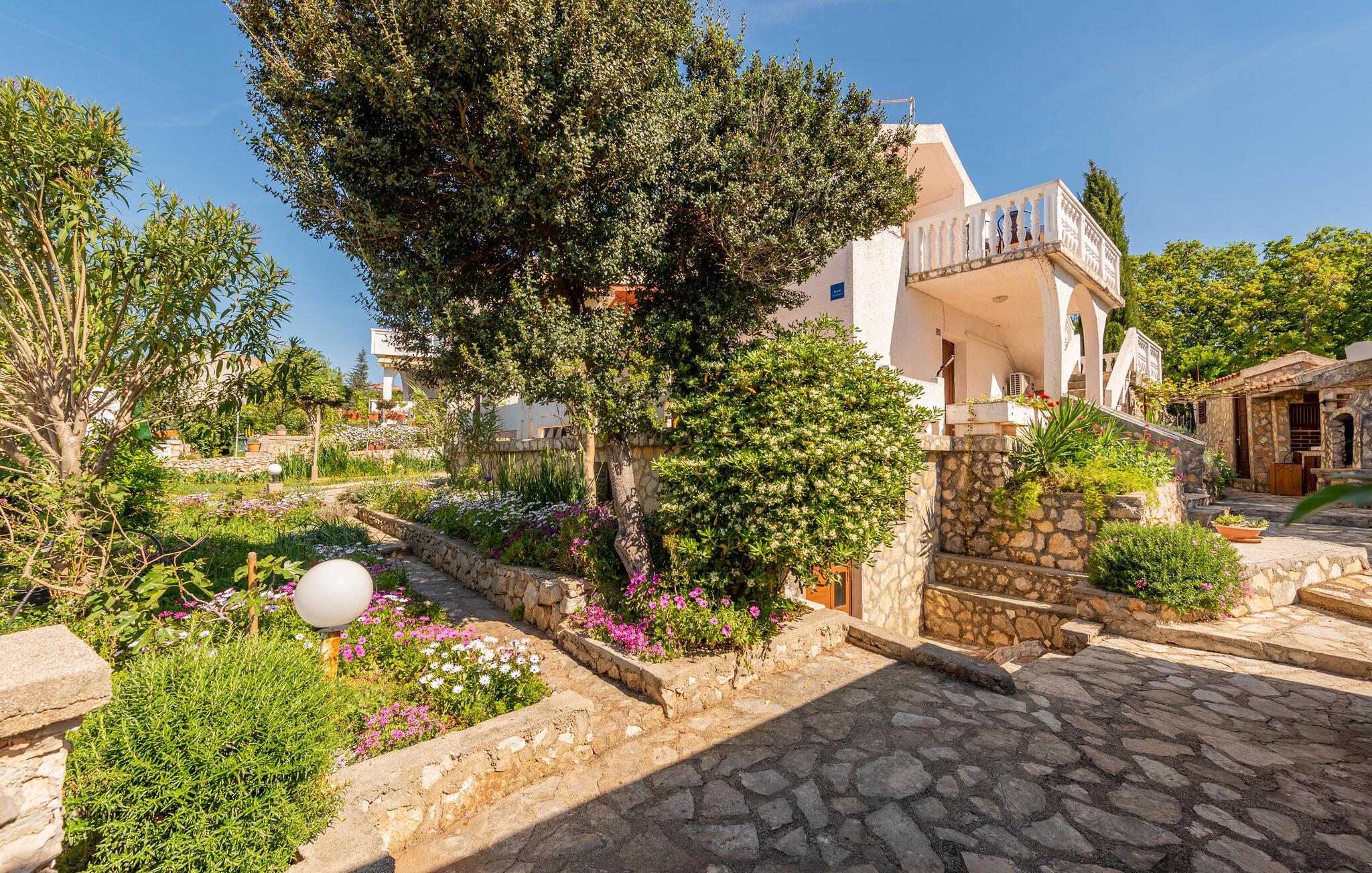 Denne praktisk indrettede ferielejlighed ligger på øverste etage i en privat ejendom og rummer køkken, badeværelse, to soveværelser og en lille terrasse med havudsigt. Haven er omgivet af mediterrane planter og som giver en dejlig atmosfære. Den lille landsby Potocnica er præget af fantastiske sandstrande og krystalklart havvand, her kan I holde en ferie, hvor I hurtigt glemmer alt om hverdagens trængsler. Der er heller ikke langt til byen Novalja, med mange butikker, restauranter etc. og med et underholdende natteliv, hvor I kan slutte morskaben når solen går op, med at bade fra den berømte Zrce strand. Laveste lofthøjde i siden er ca. 80 cm. I samme hus ligger CKP268.
