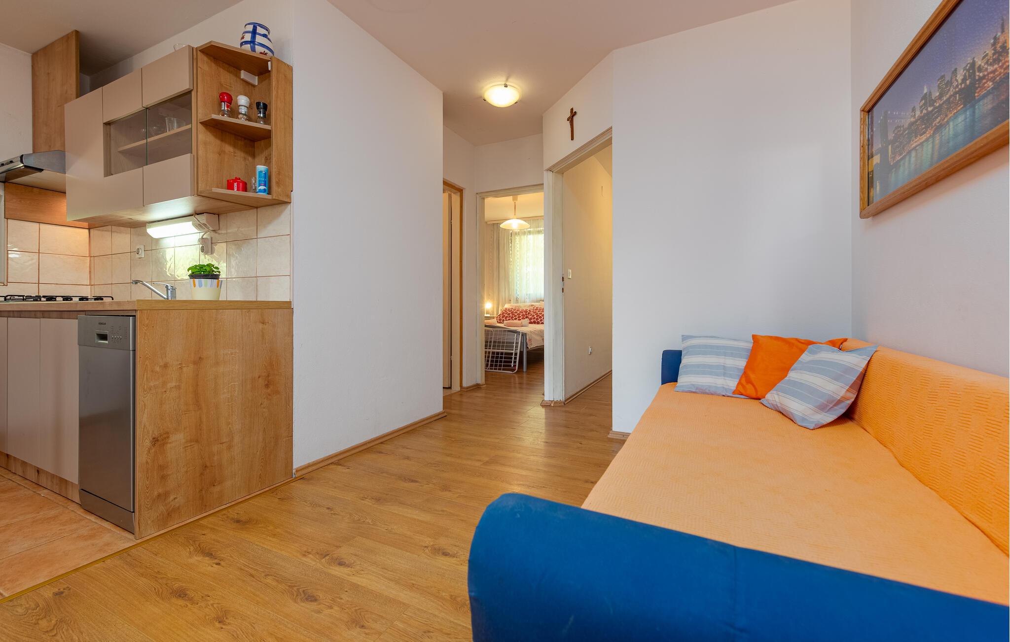 I den lille by Potocnica, på øen Pag, ligger dette hus med tre ferielejligheder. På første sal ligger den større lejlighed CKP391 med en pragtfuld overdækket terrasse, og på anden sal ligger CKP392 og CKP393. Gå en tur til den lille bugt, hvor der ligger en godt gemt strand. Øen Pag rummer mange facetter, ikke blot gastronomiske specialiteter, men også en interessant kultur og tradition. Pager kniplinger, der også kaldes ’Det hvide guld’, er med på UNESCOs liste for sin unikke kvalitet. Ved stranden Zrce kan I danse natten lang, til musikken fra DJs der kommer fra hele verden for at afspille elektronisk musik.