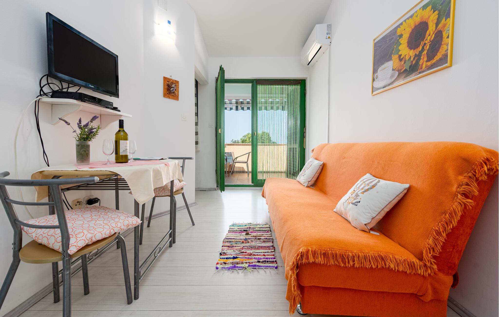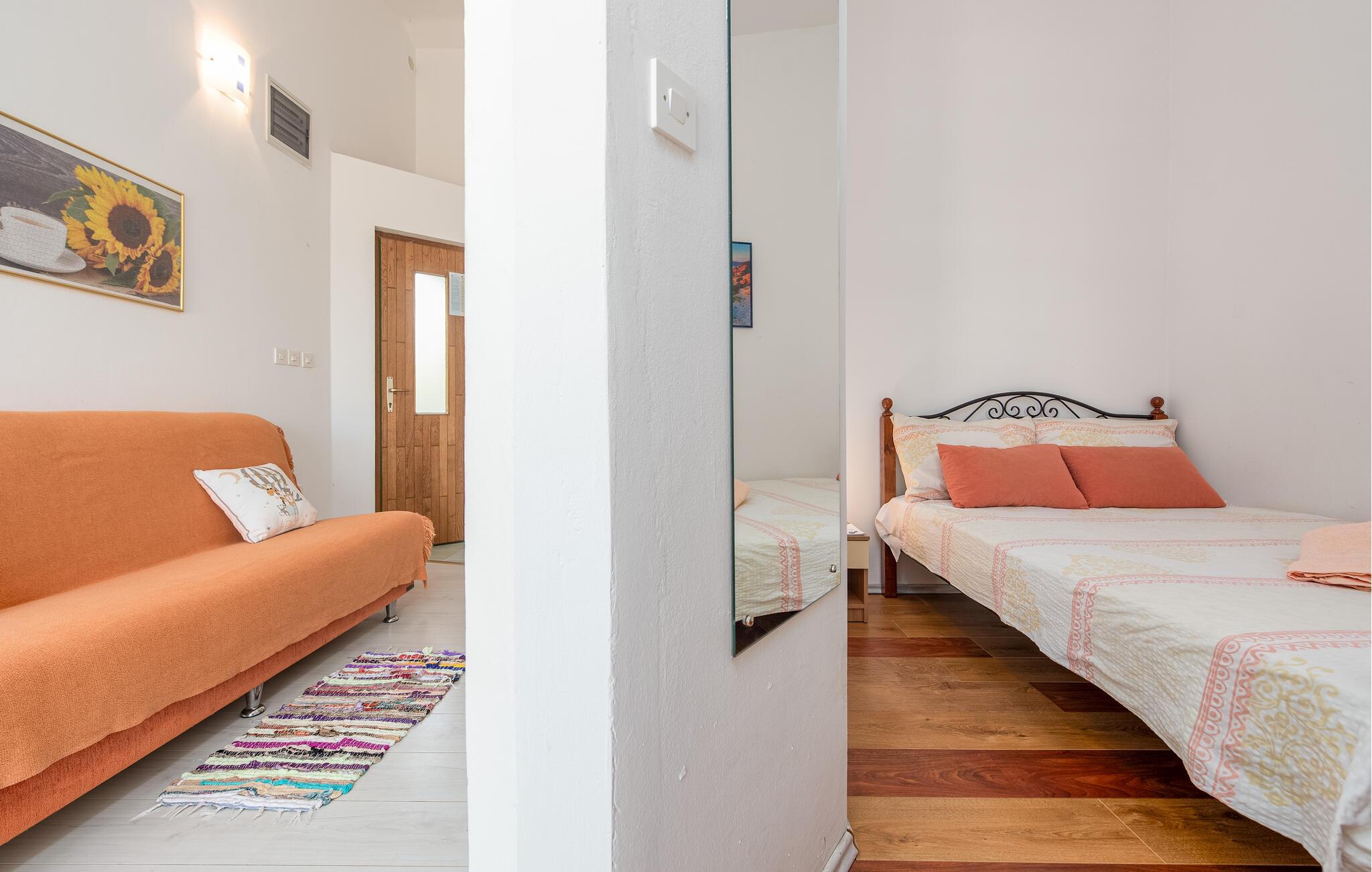 Opholdsstue/køkken - 1 Soveplads. (Sofa, madras eller lignende).