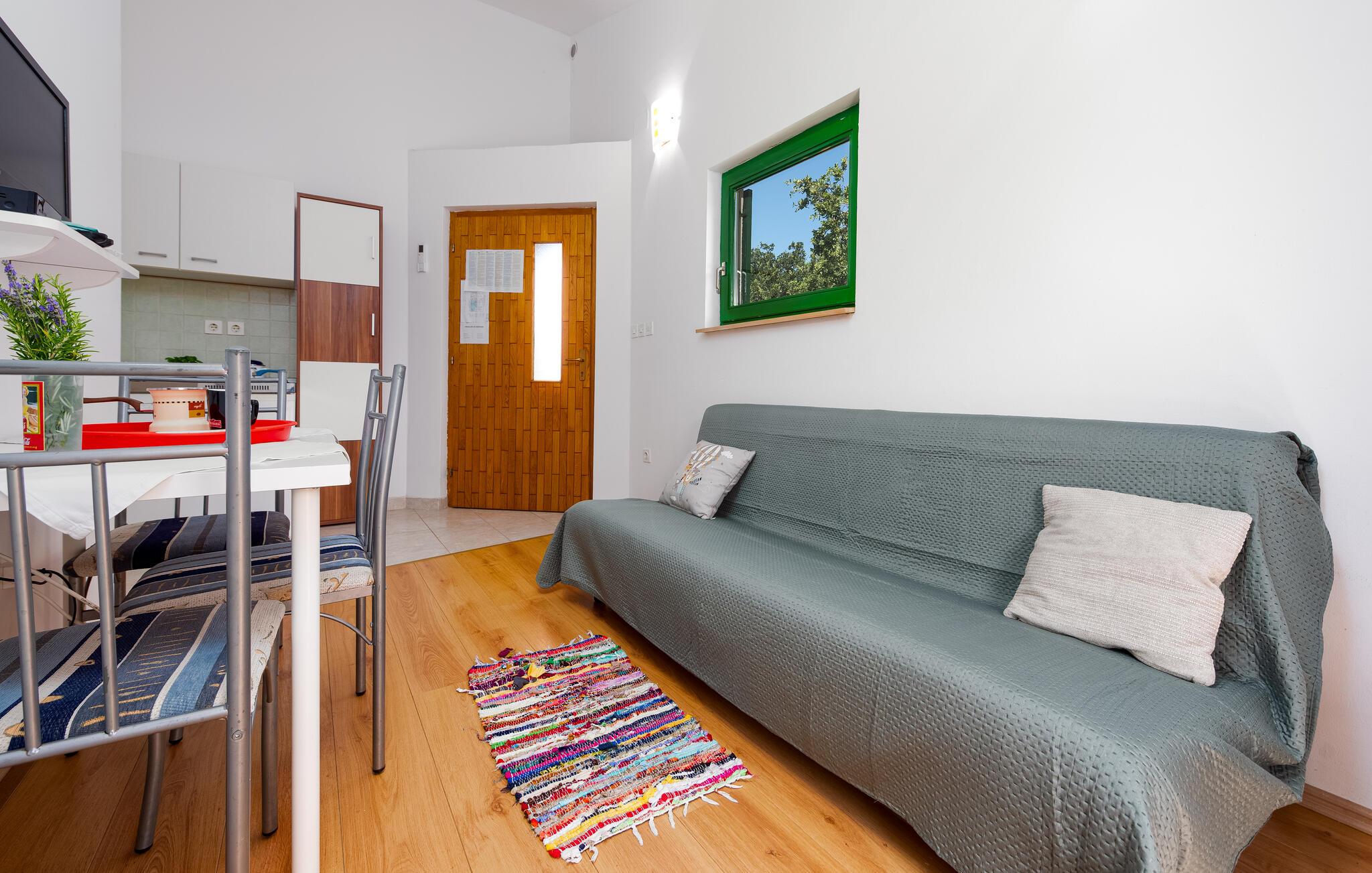 Opholdsstue/køkken - 1 Soveplads. (Sofa, madras eller lignende).