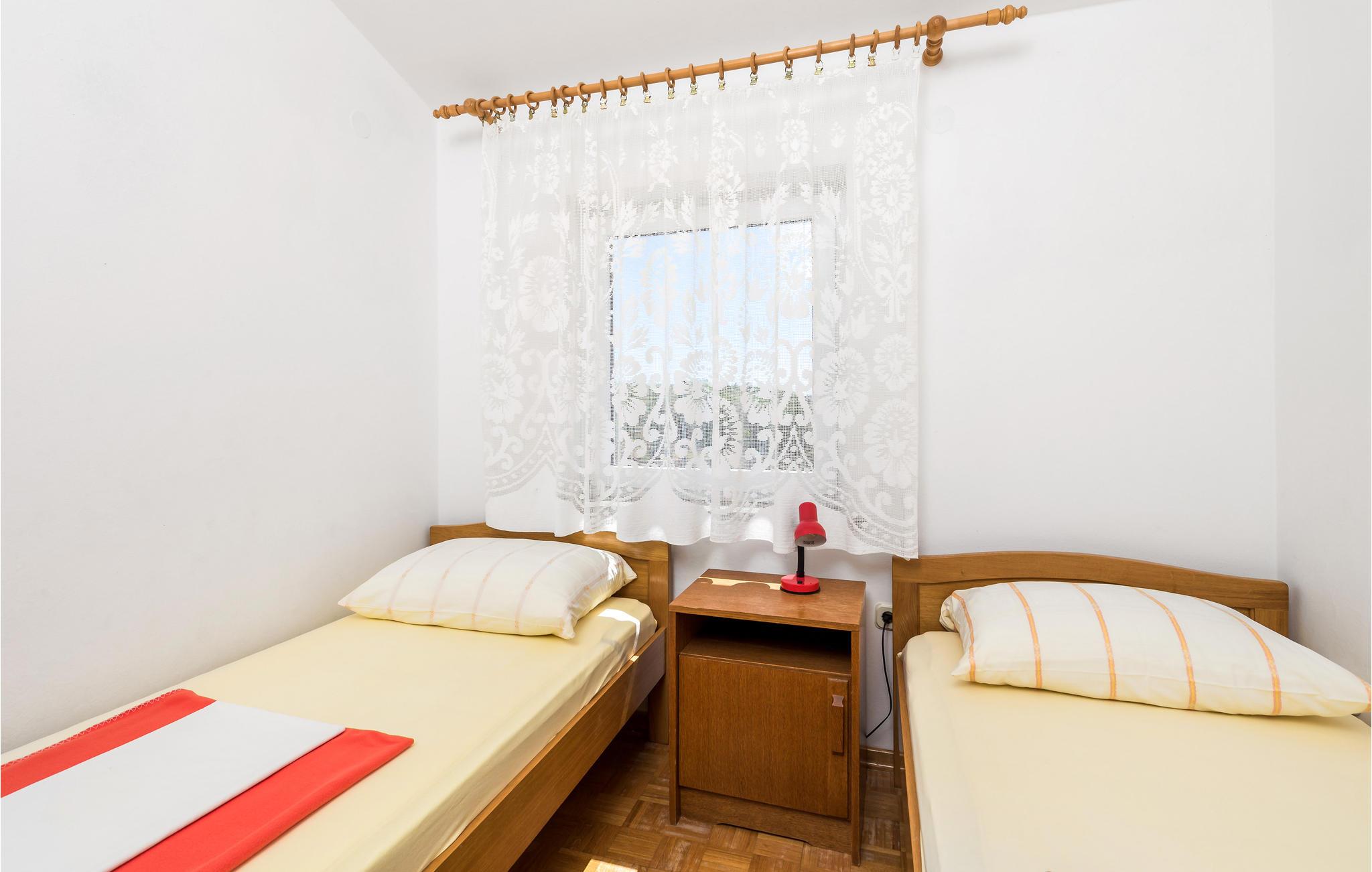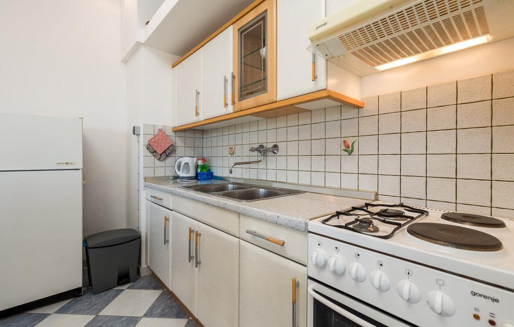 Den velplejede og komfortabelt møblerede lejlighed byder sine gæster velkommen på 1. sal i et hus og tilbyder en smuk udsigt over havet. 5 personer kan indkvarteres komfortabelt her. Takket være klimaanlægget kan I nyde behagelige temperaturer her selv på varme sommerdage.