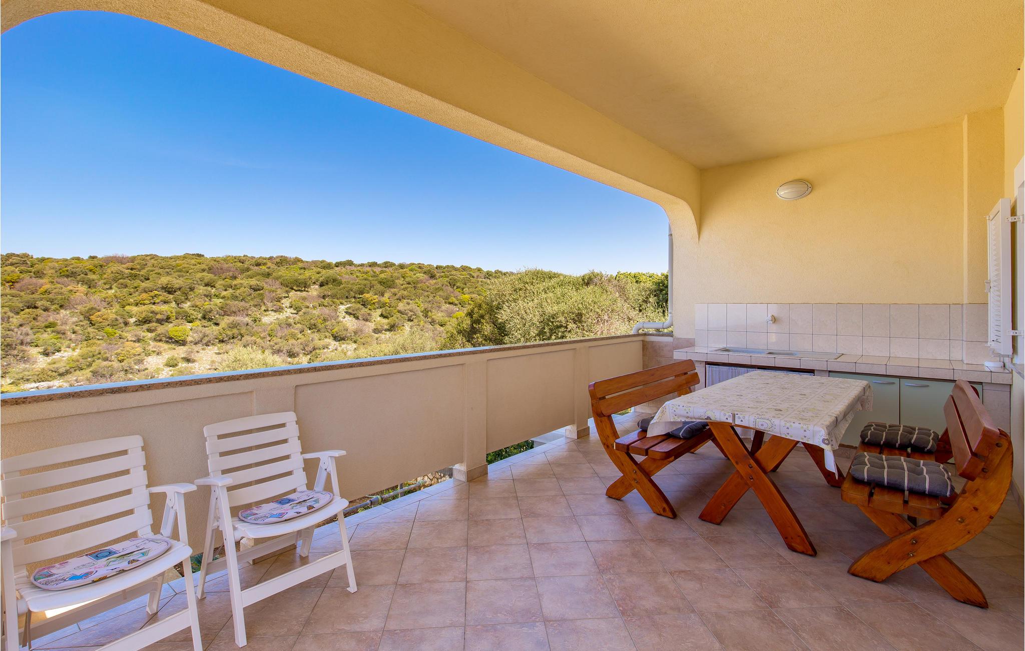 Den velplejede og komfortabelt møblerede lejlighed byder sine gæster velkommen på 1. sal i et hus og tilbyder en smuk udsigt over havet. 5 personer kan indkvarteres komfortabelt her. Takket være klimaanlægget kan I nyde behagelige temperaturer her selv på varme sommerdage.
