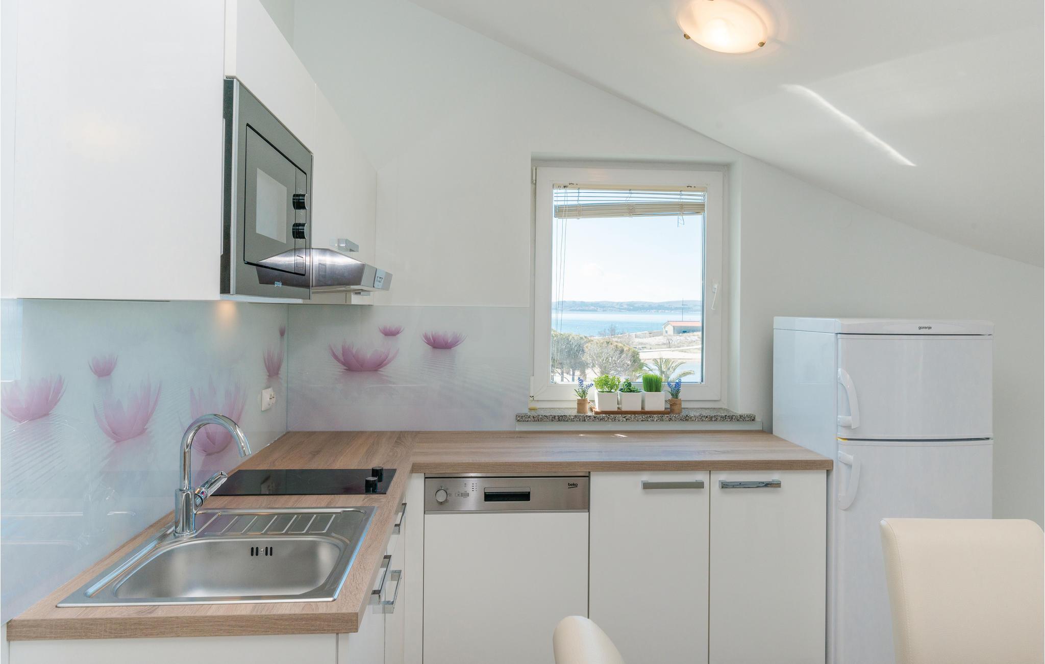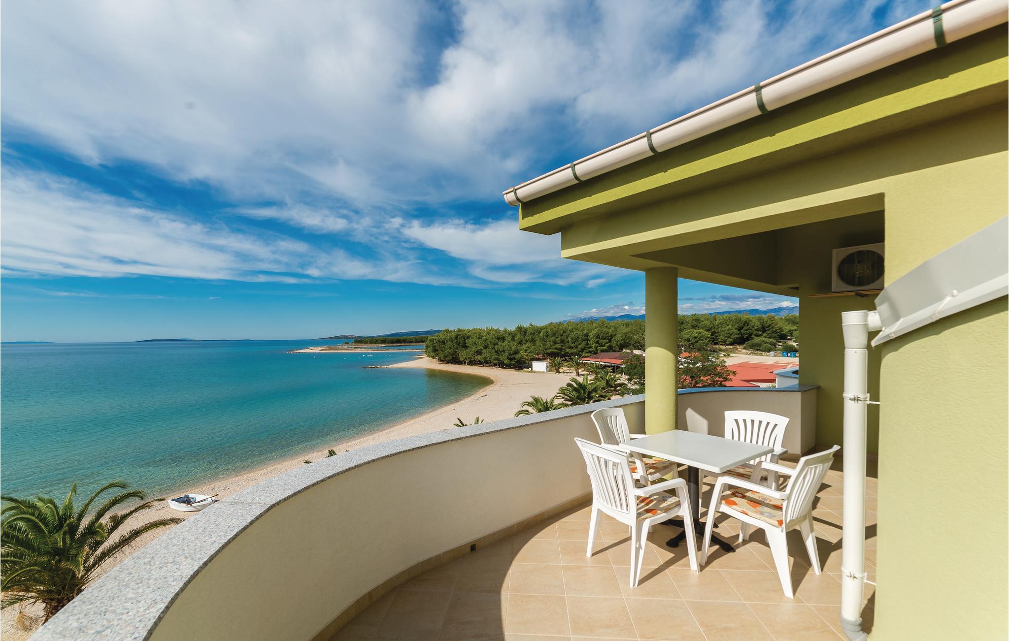 Direkte ved den herlige kiesstrand ligger disse ferielejligheder med pool og storartet udsigt fra altanerne. Lejlighederne råder over fælles whrilpool og swimmingpool. Charmerende skråvægge med en lofthøjde på 140 cm i CKP672 og med en lofthøjde på 120 cm i CKP673. Ved siden af ferieboligen ligger en restaurant og café med billard og bordfodbold. Øen Pag har meget at byde på: besøg talrige fantastisk flotte strande, gemte bugter, partystranden Zrce og parken med oliventræerne i Lun. Smag på Pags ost Gligora, en verdenskendt og prisbelønnet fåreost og smag på Pags lammekød. Gå ikke glip af et besøg i byen Zadar med mange seværdigheder og efter Alfred Hitchcocks mening verdens flotteste solnedgang.