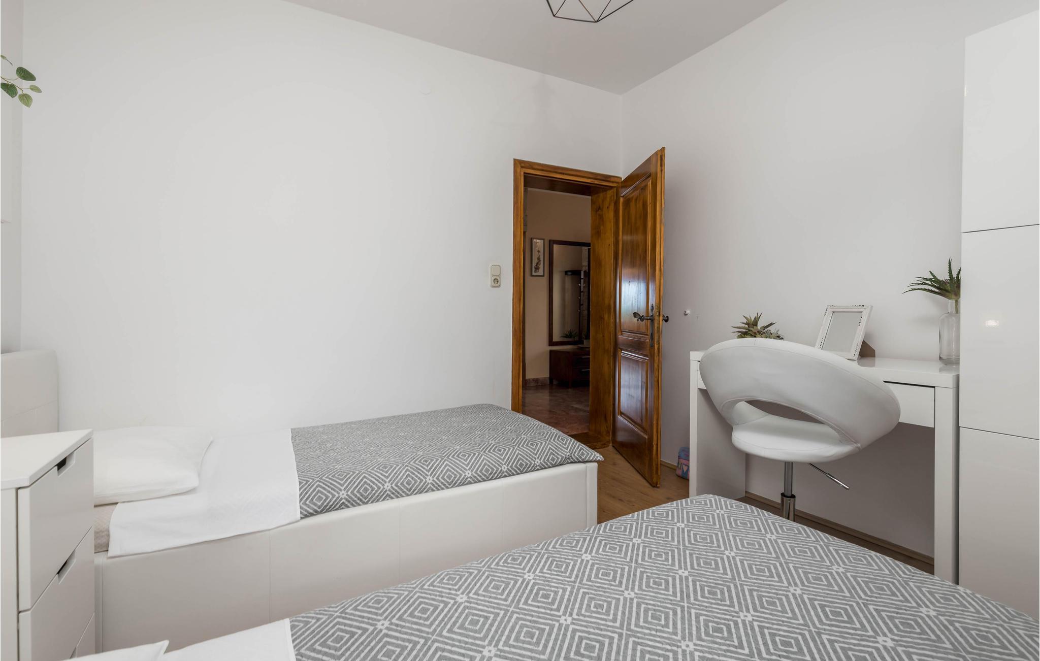 Hold jeres næste ferie i denne moderne og rummelige ferielejlighed med smuk panoramaudsigt over havet og øen. Lejligheden har en fremragende beliggenhed på første sal i Povljana på eventyrøen Pag. Den nærliggende strand er en sandstrand og ideel til familier med børn. På den smukke ejendom er der børnefaciliteter og en grill til fælles brug. Vi anbefaler udflugter til den årtusinde gamle olivenlunde Lun, byen Novalja, det populære saltmuseum og museet for de berømte Pag-blonder. Besøg også de nærliggende øer Rab, Lošinj, Silba og Olib samt den historiske by Zadar med uforglemmelige solnedgang og moderne arkitektur. Mærk naturen komme helt tæt på i nationalparkerne Kornati, Krka, Plitvice Søer, Paklenica og Nord Velebit.