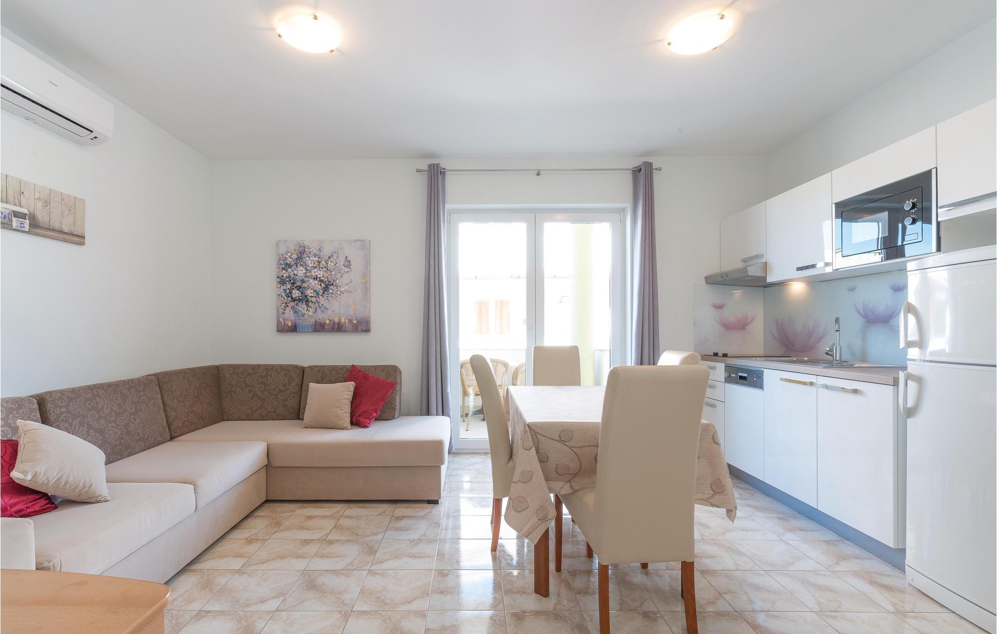 Direkte ved den dejlige grusstrand ligger disse ferieljligheder med fantastisk udsigt fra altanerne. Skråvægge i CKP672 på 140 cm og i CKP673 på 120 cm. Lejlighederne CKP801, 802 og 804 ligger på 1. sal. Lejlighederne har fælles adgang til whirlpool og swimmingpool. Ved siden af boligen er der en restaurant og café med billard og bordfodbold. Pag byder på smukke strande og hemmelige bugter, øen er også kendt for god gastronomi: osten Gligora og lammekødet fra Prag har vundet internationale priser. Besøg også byen Zadar og oplev den smukkeste solnedgang i hele verden, ifølge Alfred Hitchcock.