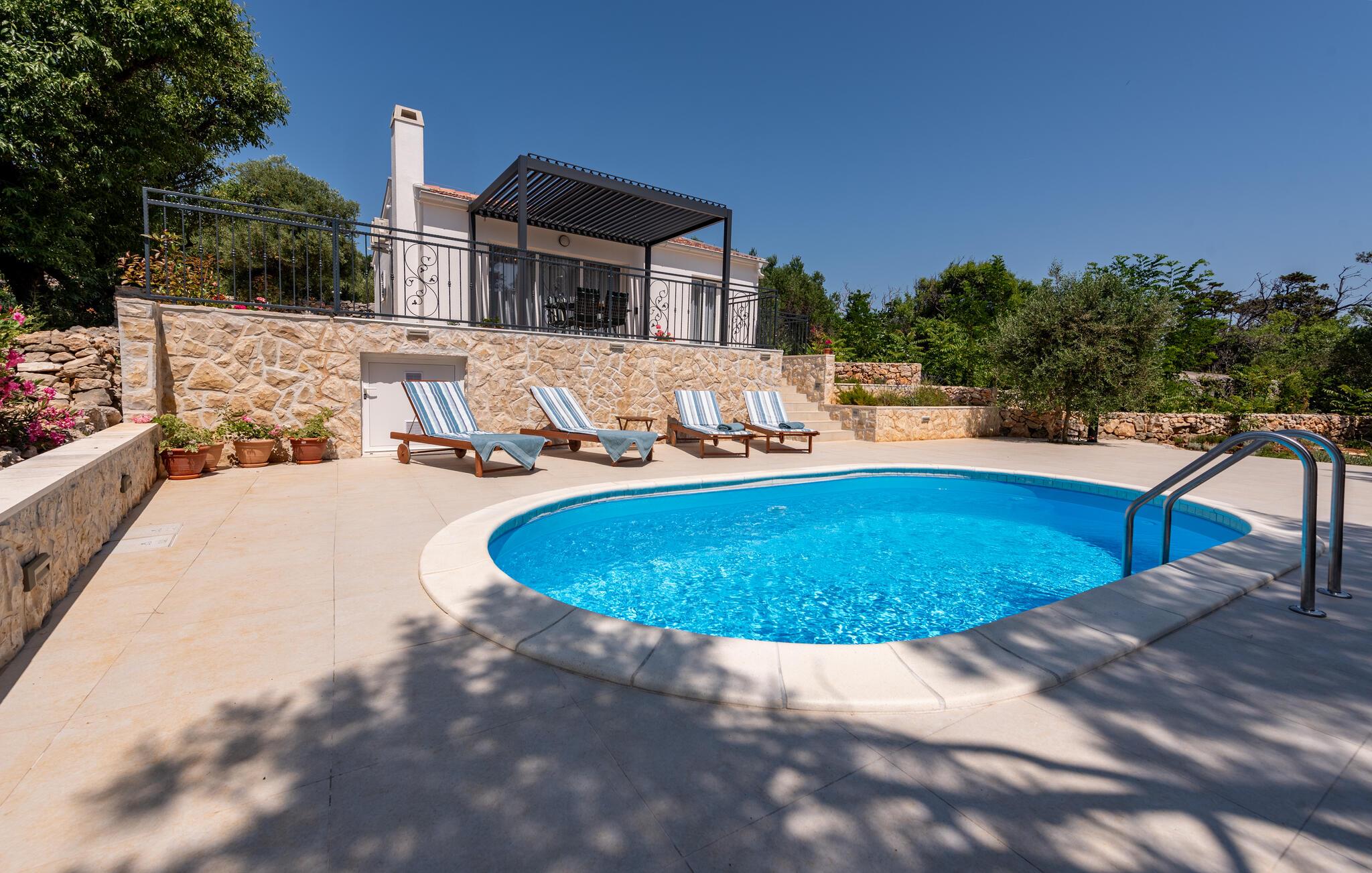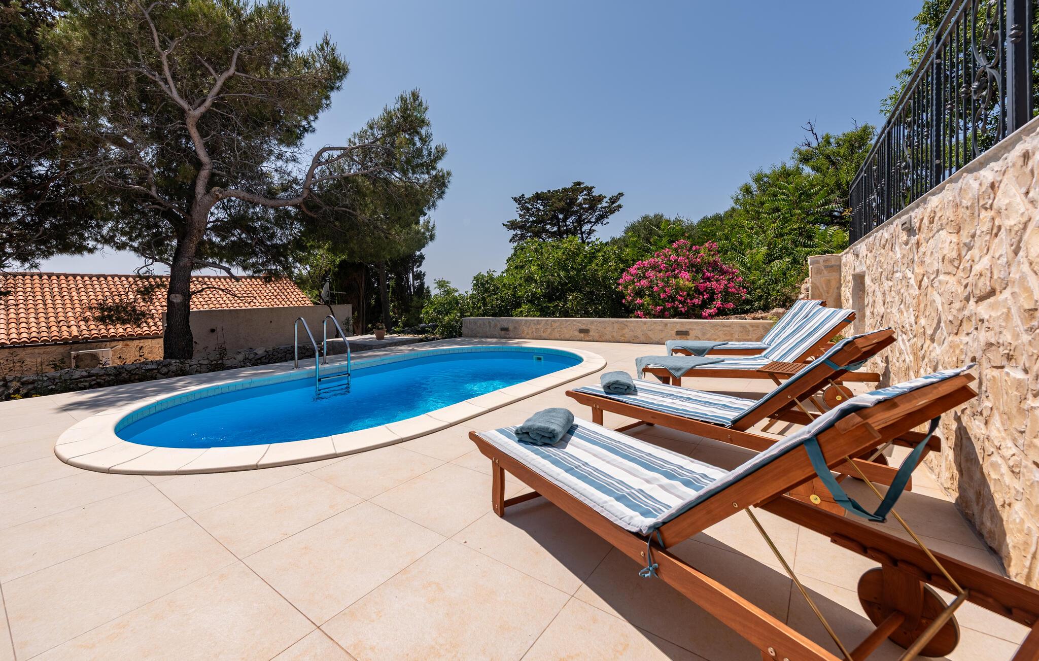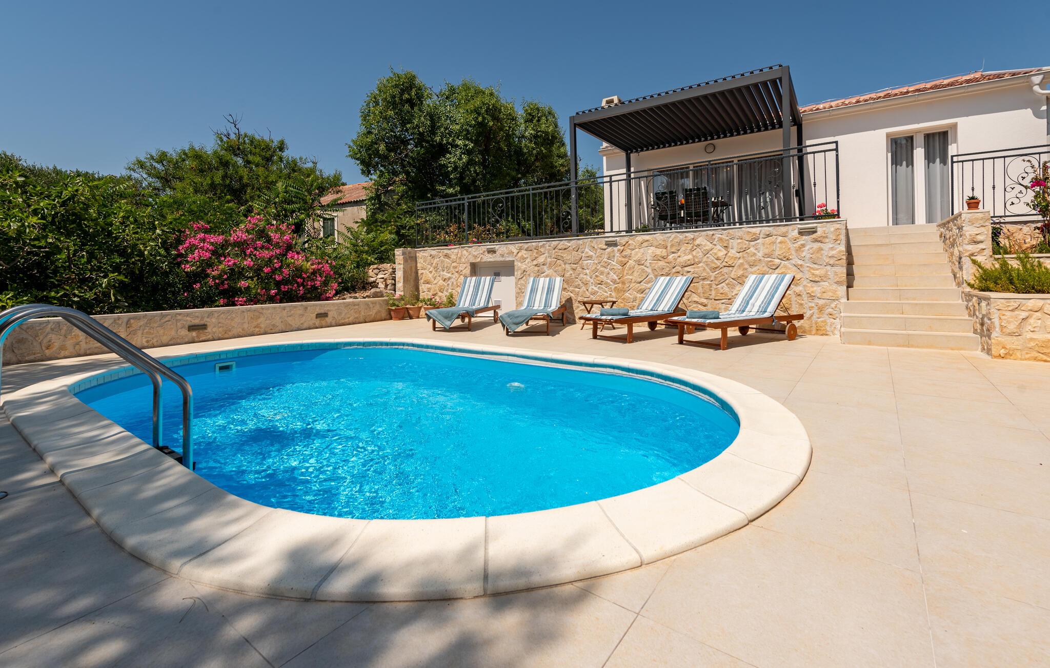 Nyd en idyllisk ferie i dette fortryllende feriehus med pool og havudsigt nær stranden.