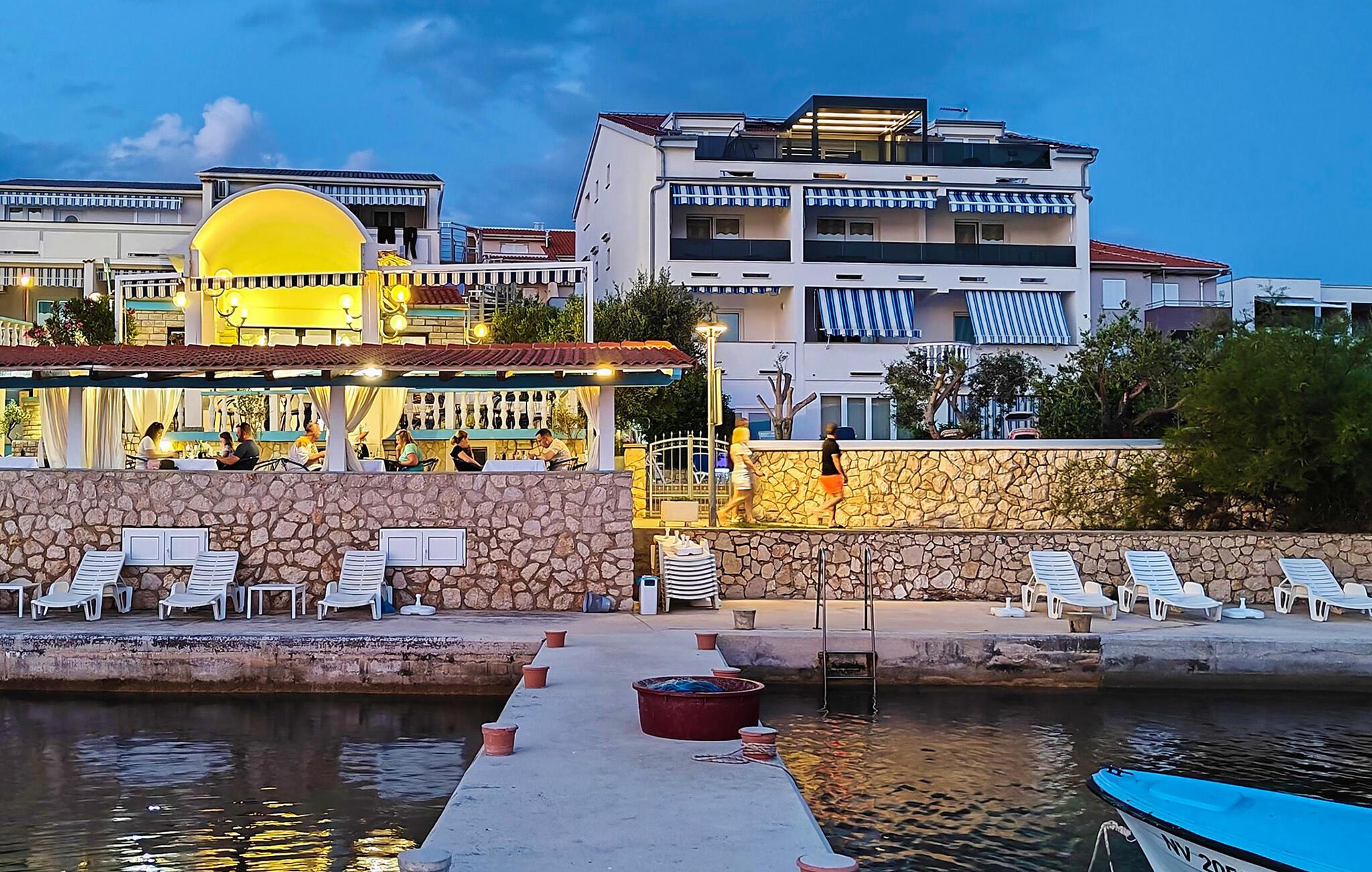 Server jer morgenmad på balkonen og se solnedgangen med et glas vin. I løbet af dagen kan I snuppe en frisk dukkert i den fælles pool og lade op i en liggestol. Alternativt kan I tage en dukkert i Adriaterhavets klare vand kun få skridt fra plateaustranden.
