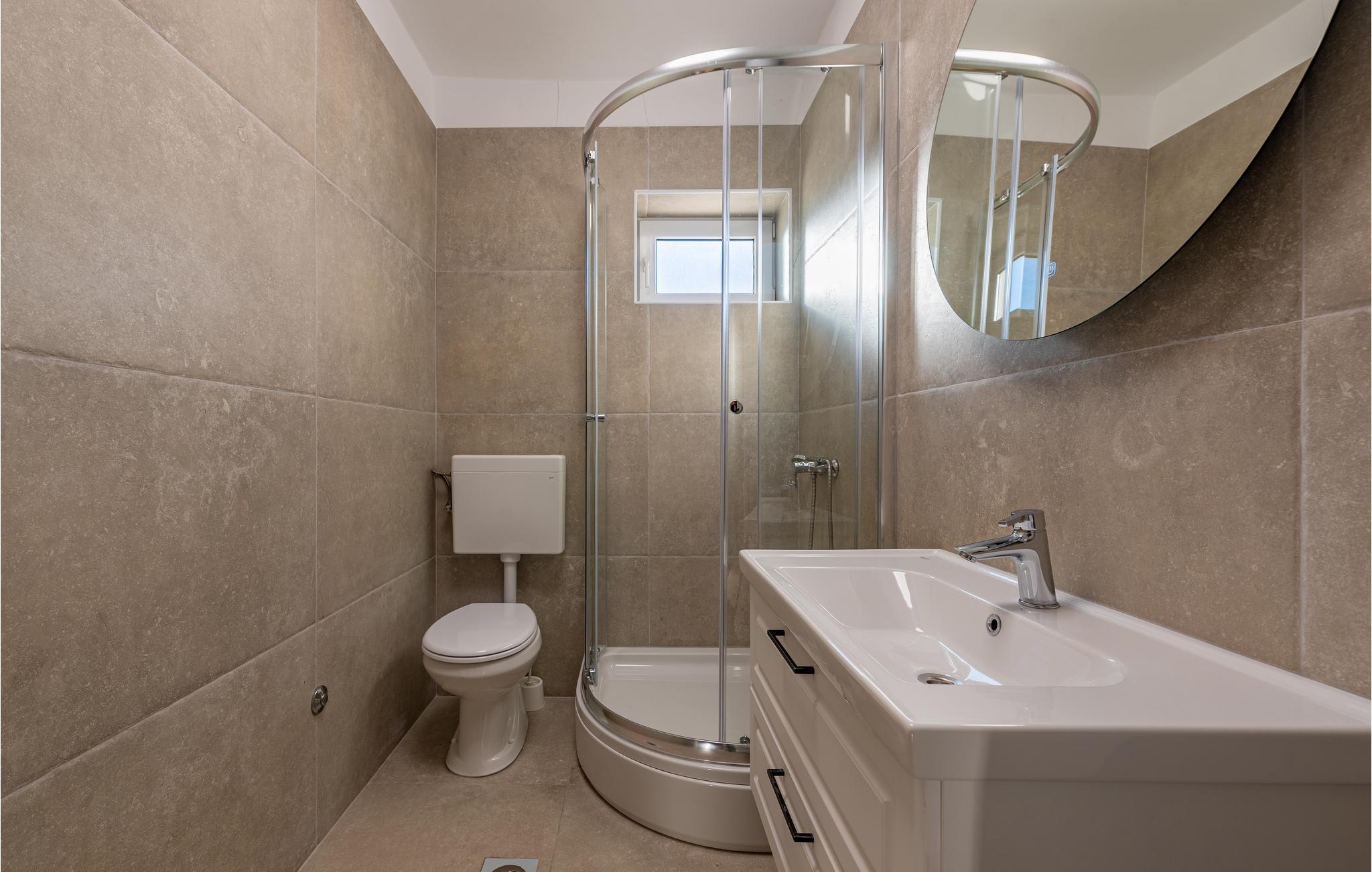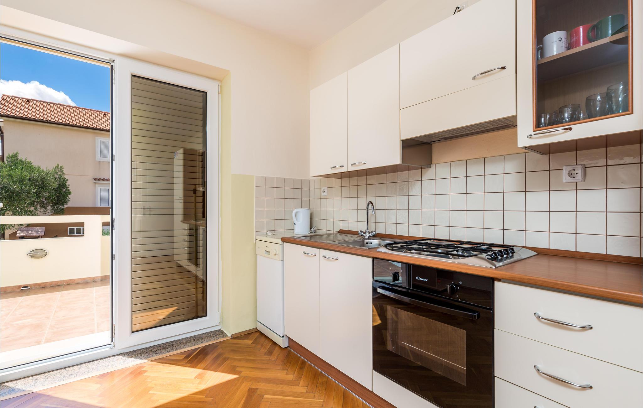 I et flerfamilieshus på øen Pag ligger denne enkelt og praktisk indrettede ferielejlighed.