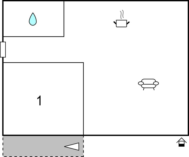 Opholdsstue/køkken 13m2 - 1 Soveplads. (Sofa, madras eller lignende).