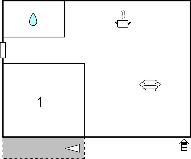 Opholdsstue/køkken 13m2 - 1 Soveplads. (Sofa, madras eller lignende).