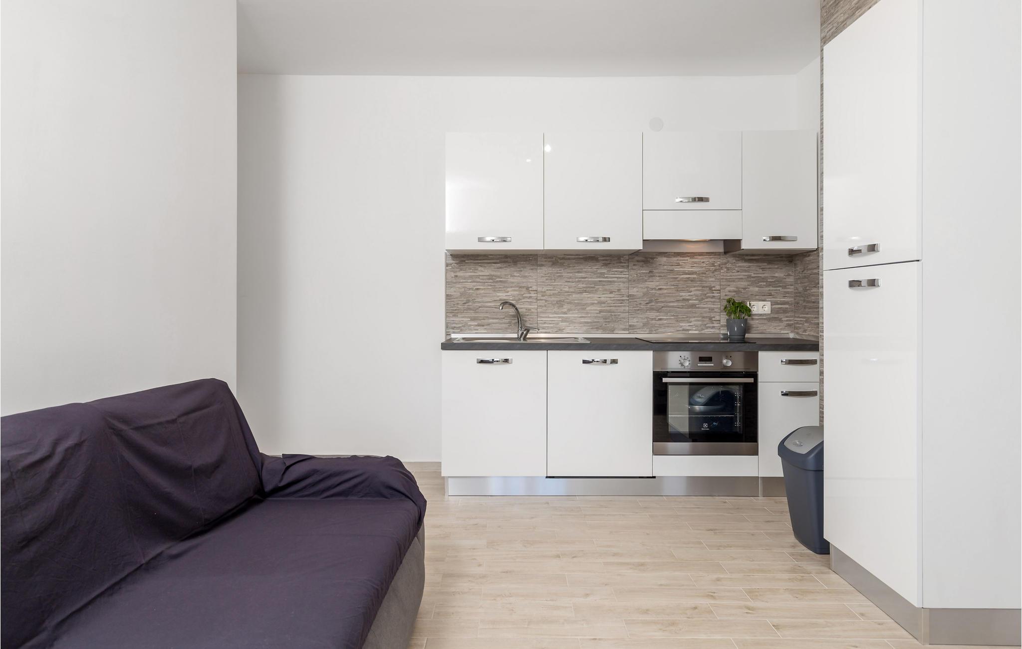 Lejligheden er beliggende i en bygning med flere lejligheder og har en fantastisk havudsigt. Inde kan du forvente en lys og moderne atmosfære med smukke møbler. Fra stuen med åbent og veludstyret køkken og spiseplads har du adgang til et overdækket udendørs område med havemøbler og en smuk udsigt. Hvis vejret er godt, kan du starte dagen her med en god morgenmad og lave yderligere planer for din ferie.