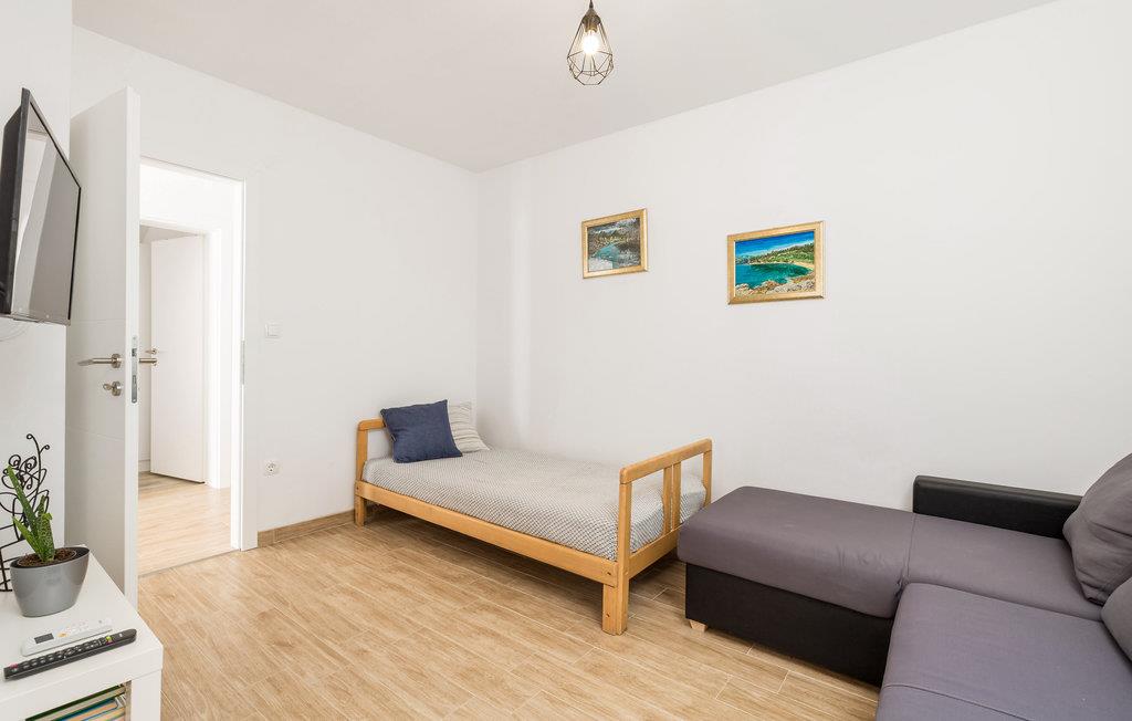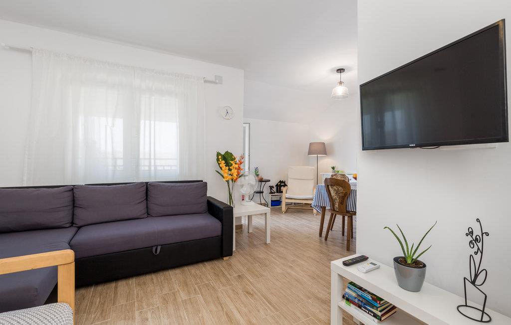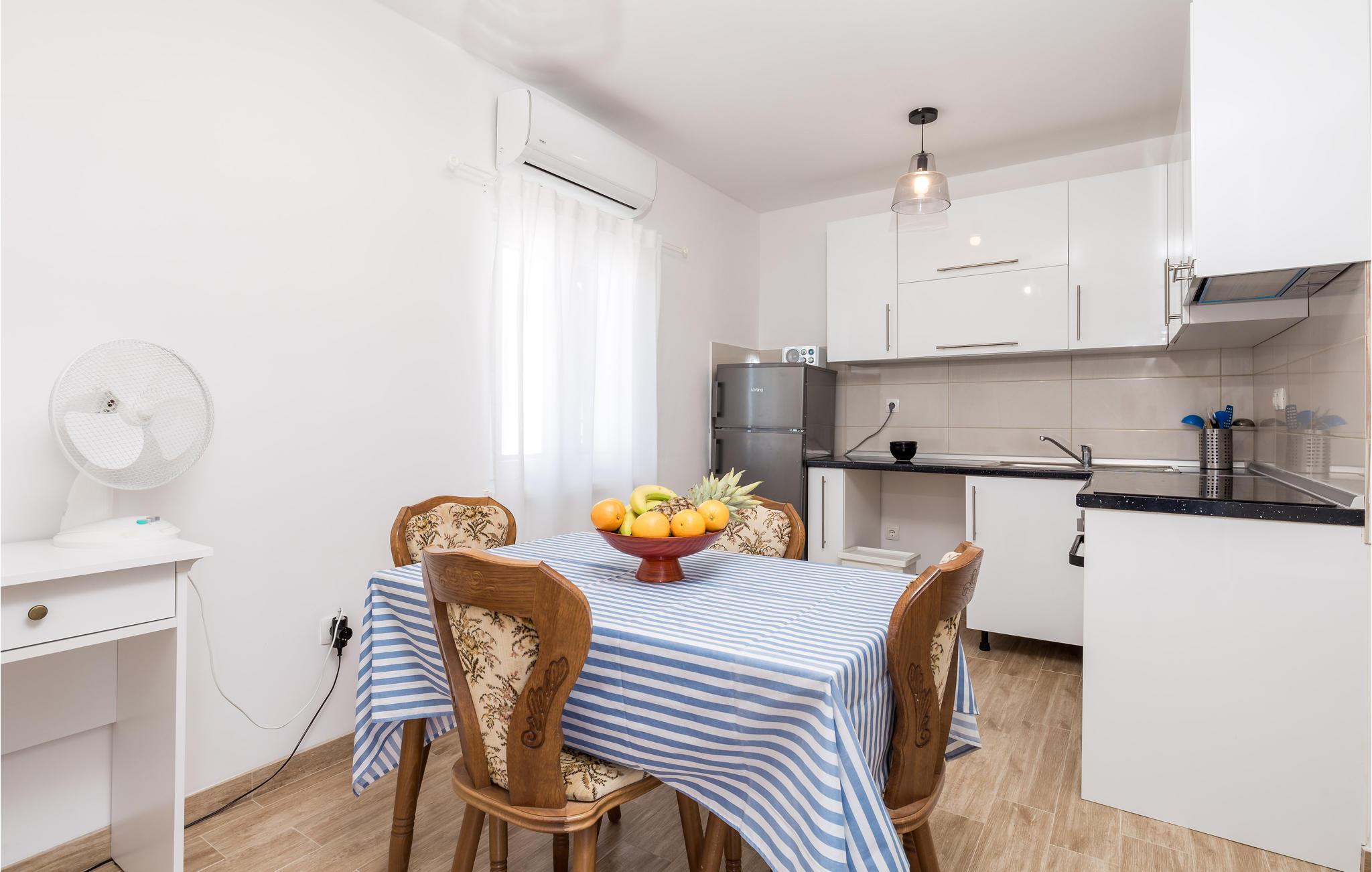 Lejligheden byder jer velkommen på 1. sal i et hus og tilbyder en smuk udsigt over havet. Med sine lyse og attraktive møbler er den det ideelle sted til en afslappende ferie i alle årstider og er velegnet til par og familier. I har et soveværelse og et badeværelse til rådighed. Takket være aircondition kan I nyde behagelige stuetemperaturer her selv på varme sommerdage.