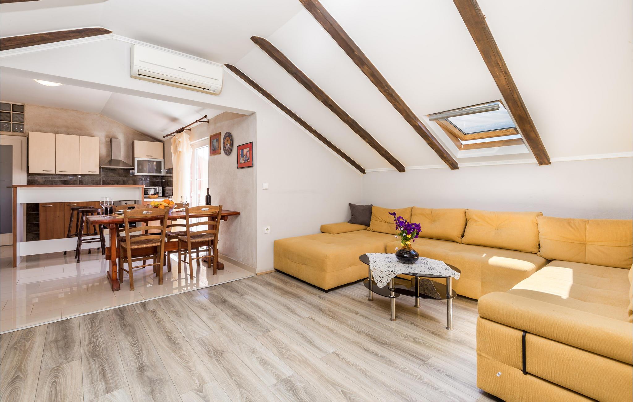 Find jer godt til rette med familien i dette attraktive hjem, hvor rustikke og moderne elementer danner en charmerende blanding. Hold jer i form selv på ferien takket være træningsudstyr, nyd måltider sammen i stuen og glæd jer til skønne aftener i den rummelige sofa, hvor I kan slappe af og sludre længe.