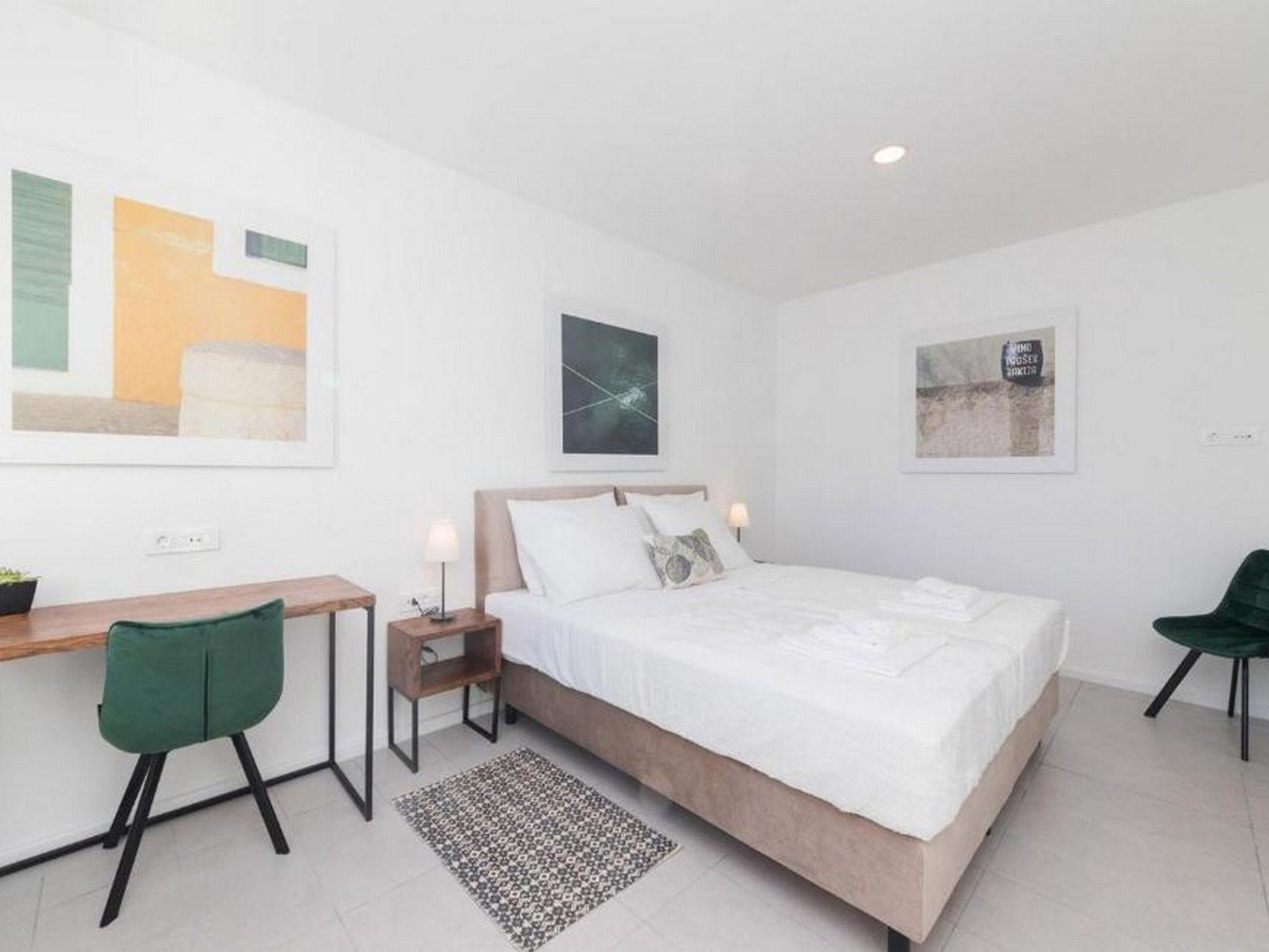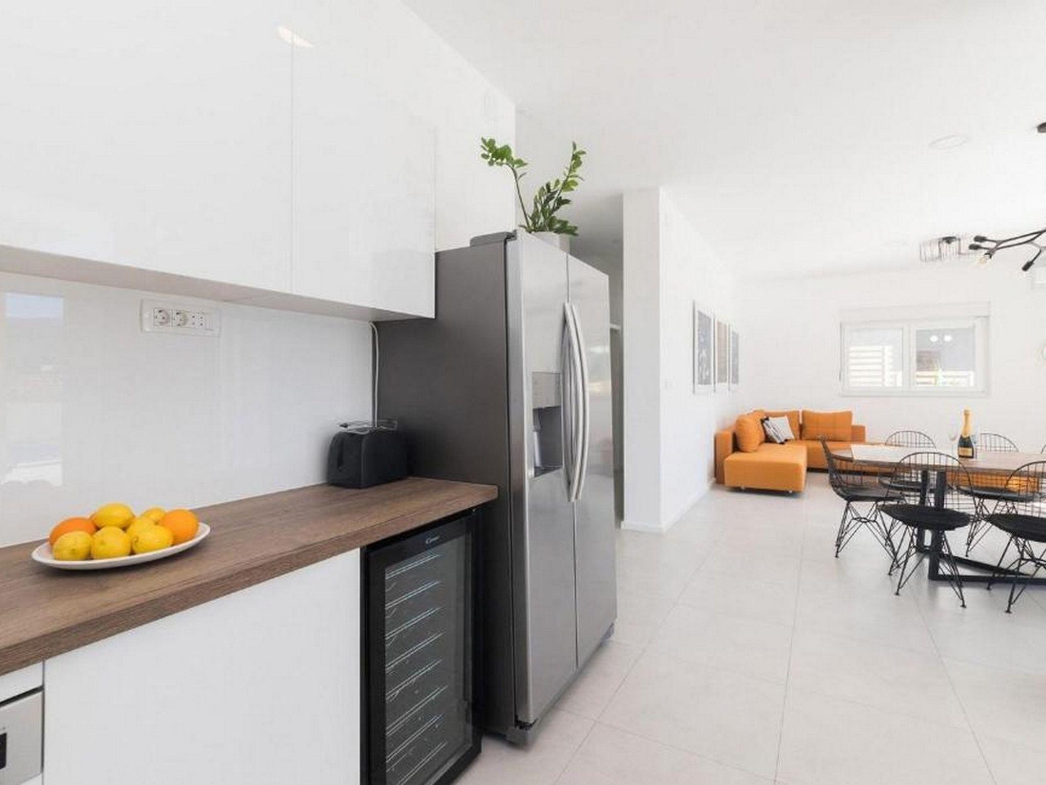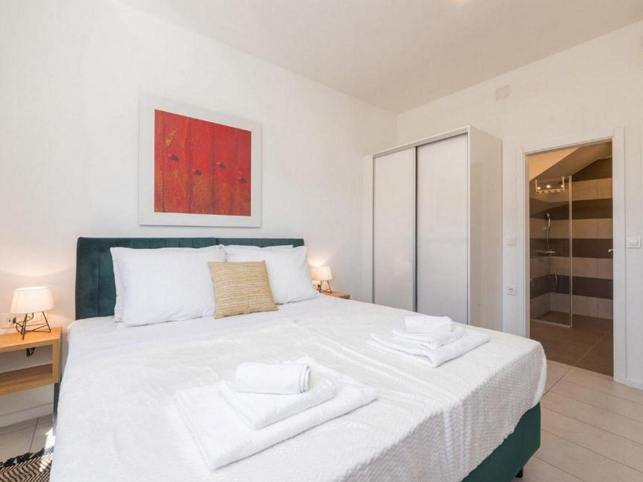 Haus bietet Platz für 10 Gäste. Die Betten sind in Schlafzimmern, die es 4 gibt, und in Wohnzimmer, innerhalb einer Gesamtfläche von 143m2, angeordnet. Die Gäste haben eine eigene Terrasse zur Verfügung, auf der sie in warmen Sommernächten genießen können. Das Haus bietet Meerblick. Es ist erlaubt, Speisen auf dem Gemeinschafts-Grill vorzubereiten. Während ihres Aufenthalts können Gäste das gemeinsam zur Nutzung stehende Schwimmbad benutzen. IM PREIS INBEGRIFFEN: Kurtaxe, Endreinigung, Klimatisierung, Pool, Parkplatz, Internet, Kinderbett, Bügeleisen, Bügelbrett, Föhn. Die Verfügbarkeit zusätzlicher Dienstleistungen in Ihrem reservierten Termin und die Preise derselben (falls nicht aufgeführt) müssen im Voraus überprüft werden. Zusätzliche Dienstleistungen die in der Zahlungsaufforderung nicht aufgeführt sind werden direkt beim Vermieter bezahlt, angenommen der Gast nutzt auch diese. Ermäßigung auf den Grundpreis: Gratistag 14=13 (bei einem Aufenthalt von 14 Tagen oder mehr erhalten Sie einen Gratistag für den Aufenthalt bis 31.12.26).