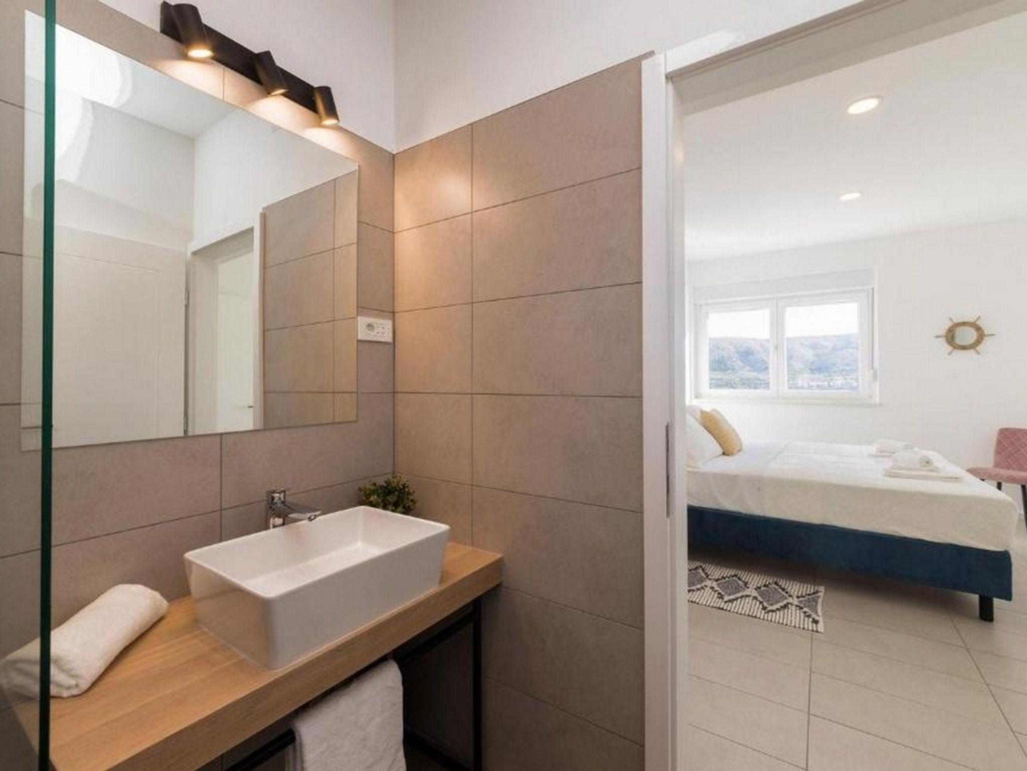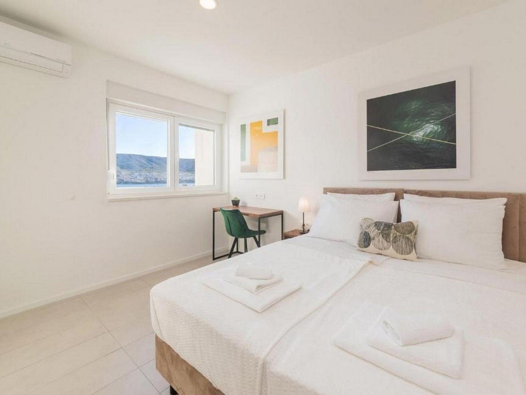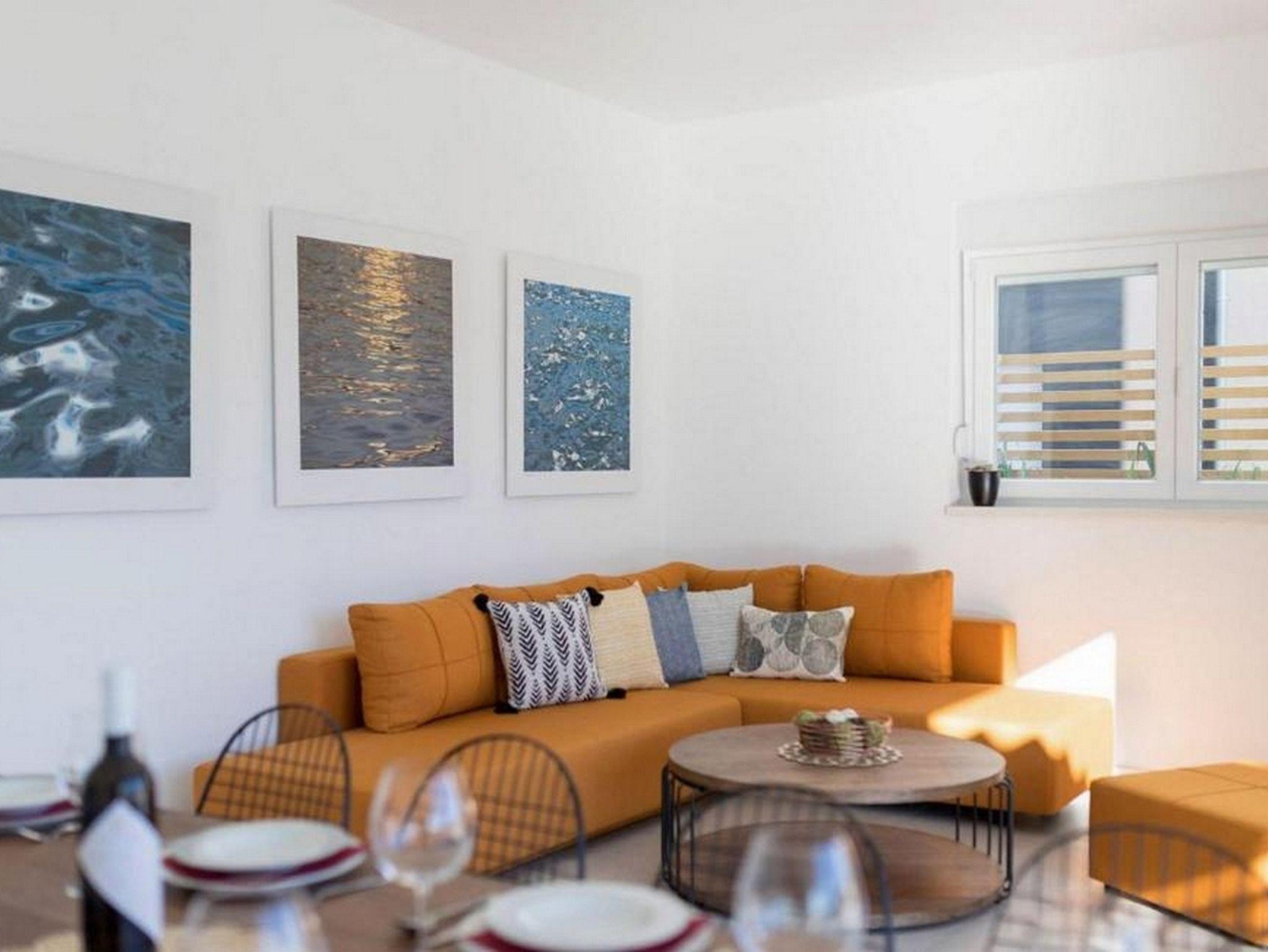Haus bietet Platz für 10 Gäste. Die Betten sind in Schlafzimmern, die es 4 gibt, und in Wohnzimmer, innerhalb einer Gesamtfläche von 143m2, angeordnet. Die Gäste haben eine eigene Terrasse zur Verfügung, auf der sie in warmen Sommernächten genießen können. Das Haus bietet Meerblick. Es ist erlaubt, Speisen auf dem Gemeinschafts-Grill vorzubereiten. Während ihres Aufenthalts können Gäste das gemeinsam zur Nutzung stehende Schwimmbad benutzen. IM PREIS INBEGRIFFEN: Kurtaxe, Endreinigung, Klimatisierung, Pool, Parkplatz, Internet, Kinderbett, Bügeleisen, Bügelbrett, Föhn. Die Verfügbarkeit zusätzlicher Dienstleistungen in Ihrem reservierten Termin und die Preise derselben (falls nicht aufgeführt) müssen im Voraus überprüft werden. Zusätzliche Dienstleistungen die in der Zahlungsaufforderung nicht aufgeführt sind werden direkt beim Vermieter bezahlt, angenommen der Gast nutzt auch diese. Ermäßigung auf den Grundpreis: Gratistag 14=13 (bei einem Aufenthalt von 14 Tagen oder mehr erhalten Sie einen Gratistag für den Aufenthalt bis 31.12.26).