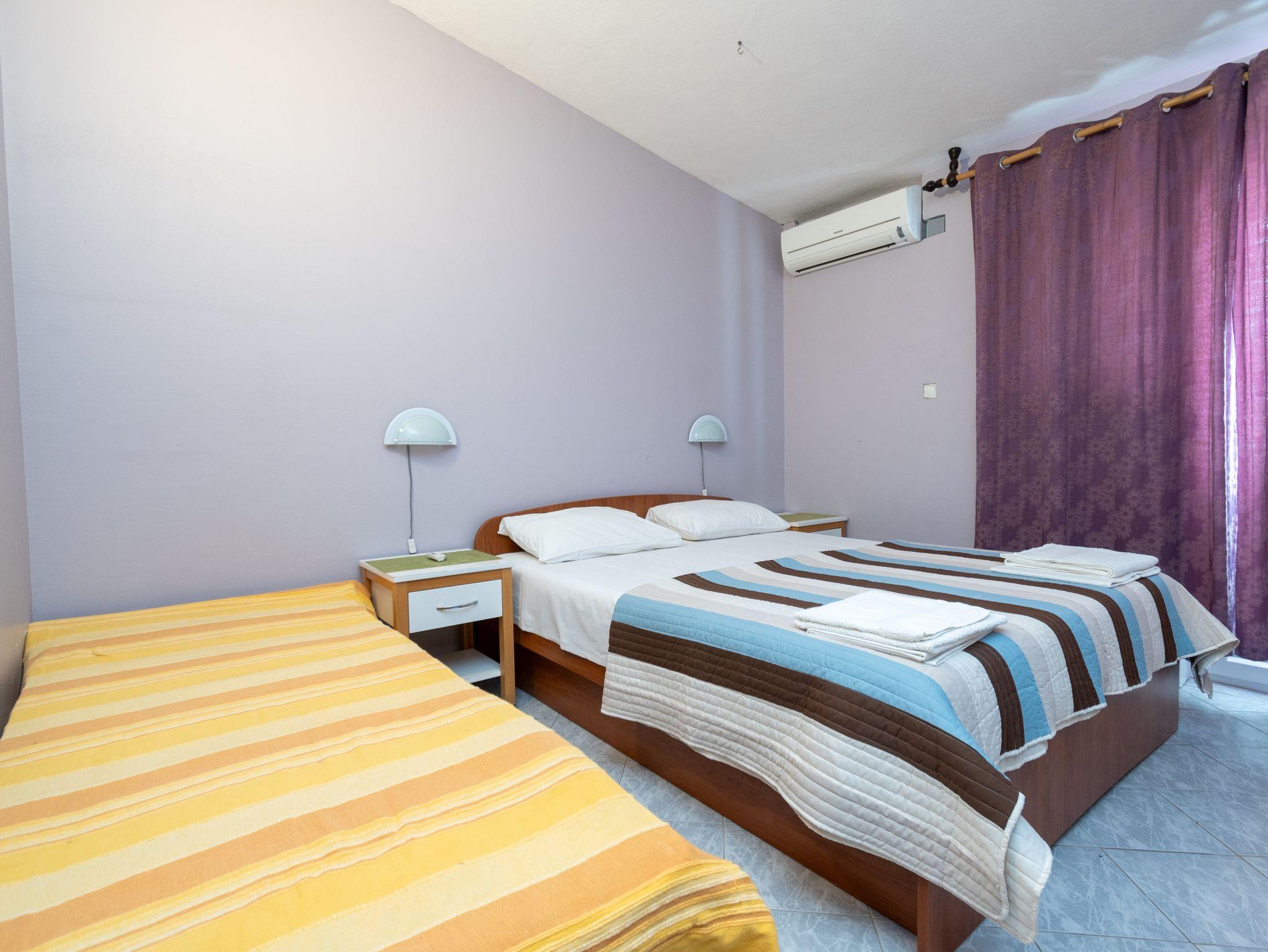 Ferienwohnung bietet Platz für 4 Gäste. Die Betten sind in Schlafzimmern, die es 1 gibt, innerhalb einer Gesamtfläche von 24m2, angeordnet. Die Gäste haben eine eigene Terrasse zur Verfügung, auf der sie in warmen Sommernächten genießen können. Das Apartment bietet Meerblick. In der Unterkunftseinheit besteht die Möglichkeit des Mitbringens von Haustieren gegen Aufpreis. IM PREIS INBEGRIFFEN: Kurtaxe, Endreinigung, Klimatisierung, Parkplatz, Internet, Bootsanlegeplatz, Kinderbett, Bügeleisen, Bügelbrett, Föhn. VERBINDLICHE ZUSÄTZLICHE KOSTEN: Aufzahlung für Kurzaufenthalte (prozentualer Zuschlag pro Nächtigungsanzahl: 30% - 1, 20% - 2, 10% - 3). UNVERBINDLICHE ZUSÄTZLICHE KOSTEN: Haustiere (7,00 € pro Nacht), Zusatzbett (20,00 € pro Nacht). Die Verfügbarkeit zusätzlicher Dienstleistungen in Ihrem reservierten Termin und die Preise derselben (falls nicht aufgeführt) müssen im Voraus überprüft werden. Zusätzliche Dienstleistungen die in der Zahlungsaufforderung nicht aufgeführt sind werden direkt beim Vermieter bezahlt, angenommen der Gast nutzt auch diese.