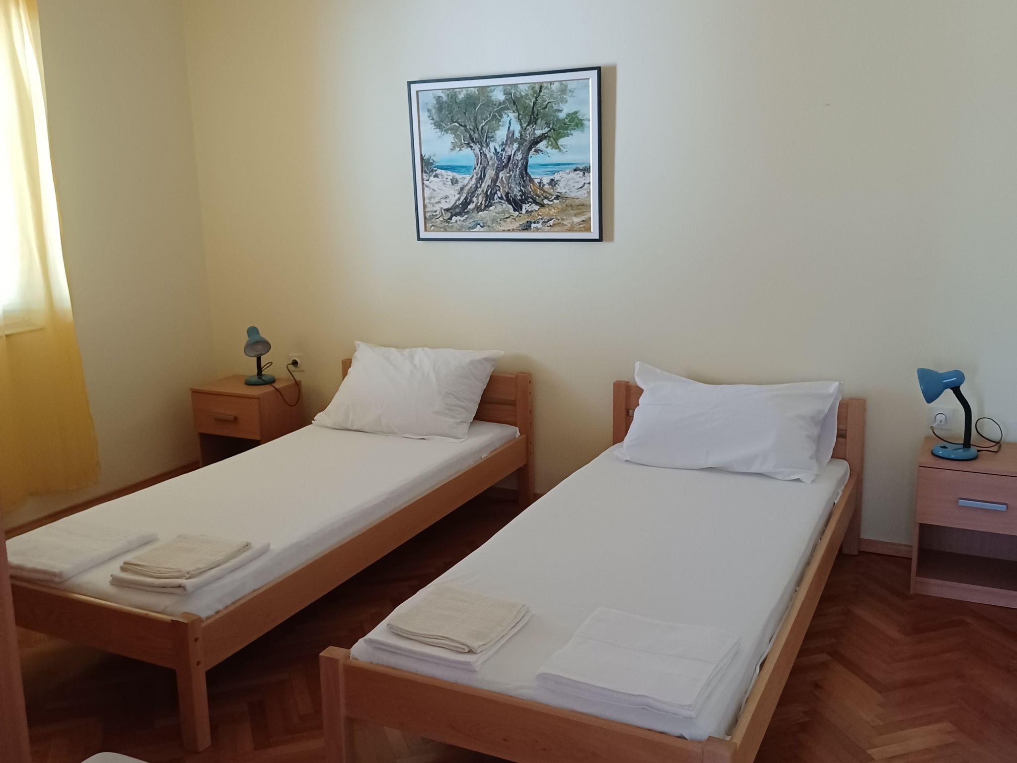 Ferienwohnung bietet Platz für 8 Gäste. Die Betten sind in Schlafzimmern, die es 4 gibt, innerhalb einer Gesamtfläche von 98m2, angeordnet. Die Gäste haben eine eigene Terrasse zur Verfügung, auf der sie in warmen Sommernächten genießen können. Das Apartment bietet Meerblick. Es ist erlaubt, Speisen auf dem Gemeinschafts-Grill vorzubereiten. In der Unterkunftseinheit besteht die Möglichkeit des Mitbringens von Haustieren gegen Aufpreis. Unterkunftseinheit hat Räume, die von dem Rest der Einheit abgetrennt werden. IM PREIS INBEGRIFFEN: Kurtaxe, Endreinigung, Parkplatz, Internet. VERBINDLICHE ZUSÄTZLICHE KOSTEN: Aufzahlung für Kurzaufenthalte (prozentualer Zuschlag pro Nächtigungsanzahl: 30% - 1, 20% - 2, 10% - 3). UNVERBINDLICHE ZUSÄTZLICHE KOSTEN: Klimatisierung (7,00 € pro Nacht), Wäschewaschen (7,00 € Waschen), Haustiere (20,00 € pro Nacht). Die Verfügbarkeit zusätzlicher Dienstleistungen in Ihrem reservierten Termin und die Preise derselben (falls nicht aufgeführt) müssen im Voraus überprüft werden. Zusätzliche Dienstleistungen die in der Zahlungsaufforderung nicht aufgeführt sind werden direkt beim Vermieter bezahlt, angenommen der Gast nutzt auch diese. Ermäßigung auf den Grundpreis: Gratistag 14=13 (bei einem Aufenthalt von 14 Tagen oder mehr erhalten Sie einen Gratistag für den Aufenthalt bis 31.12.26).