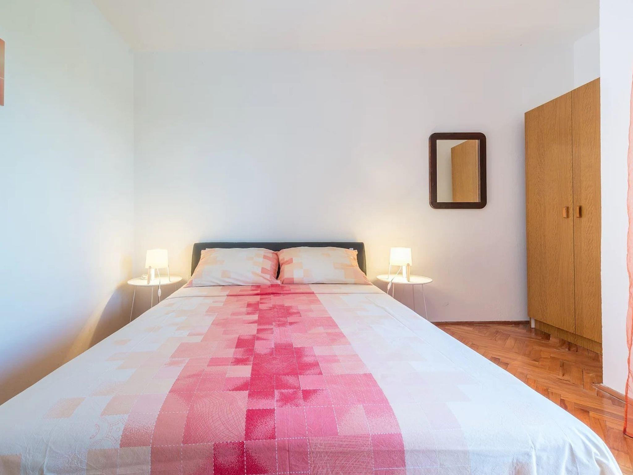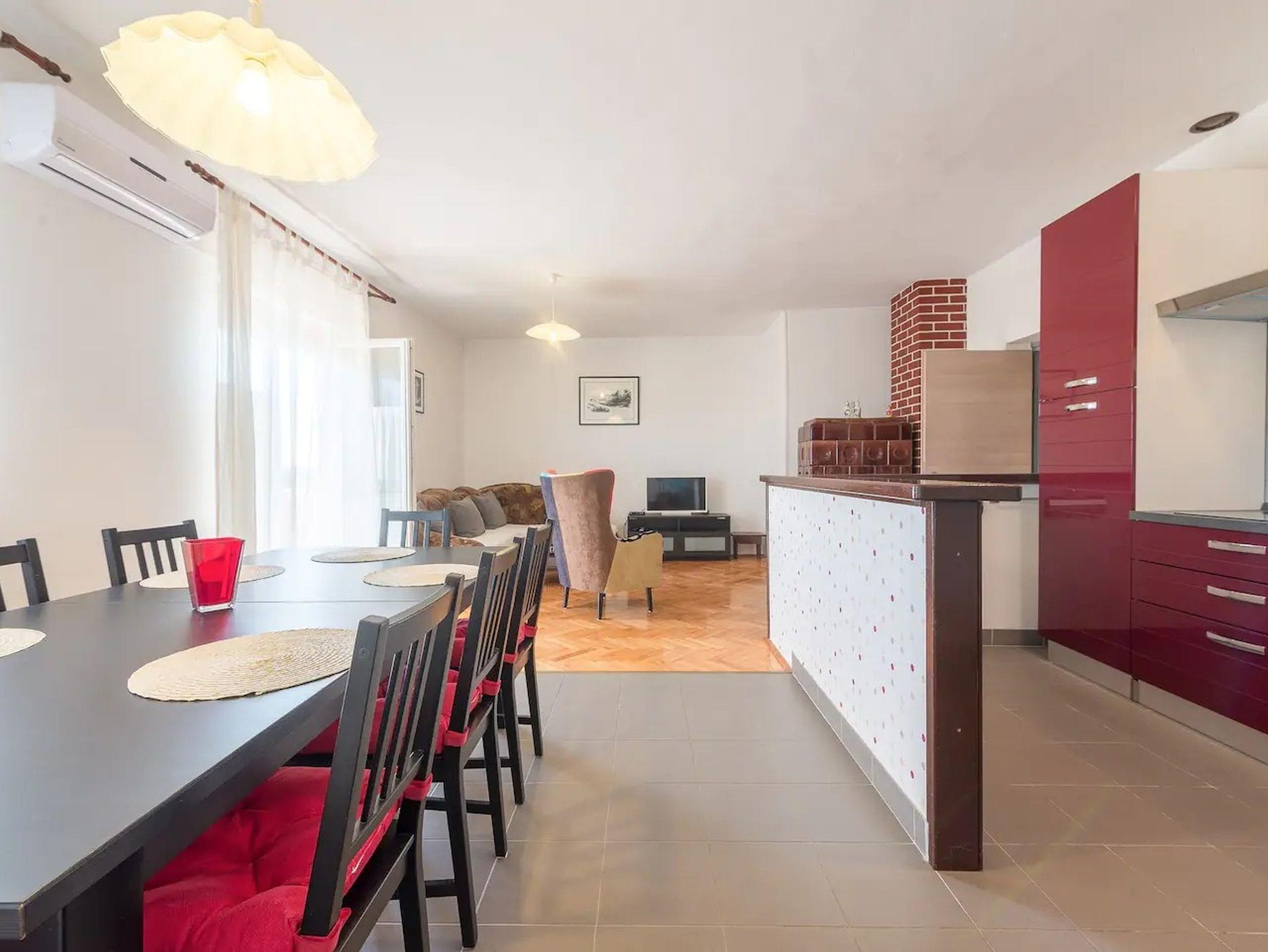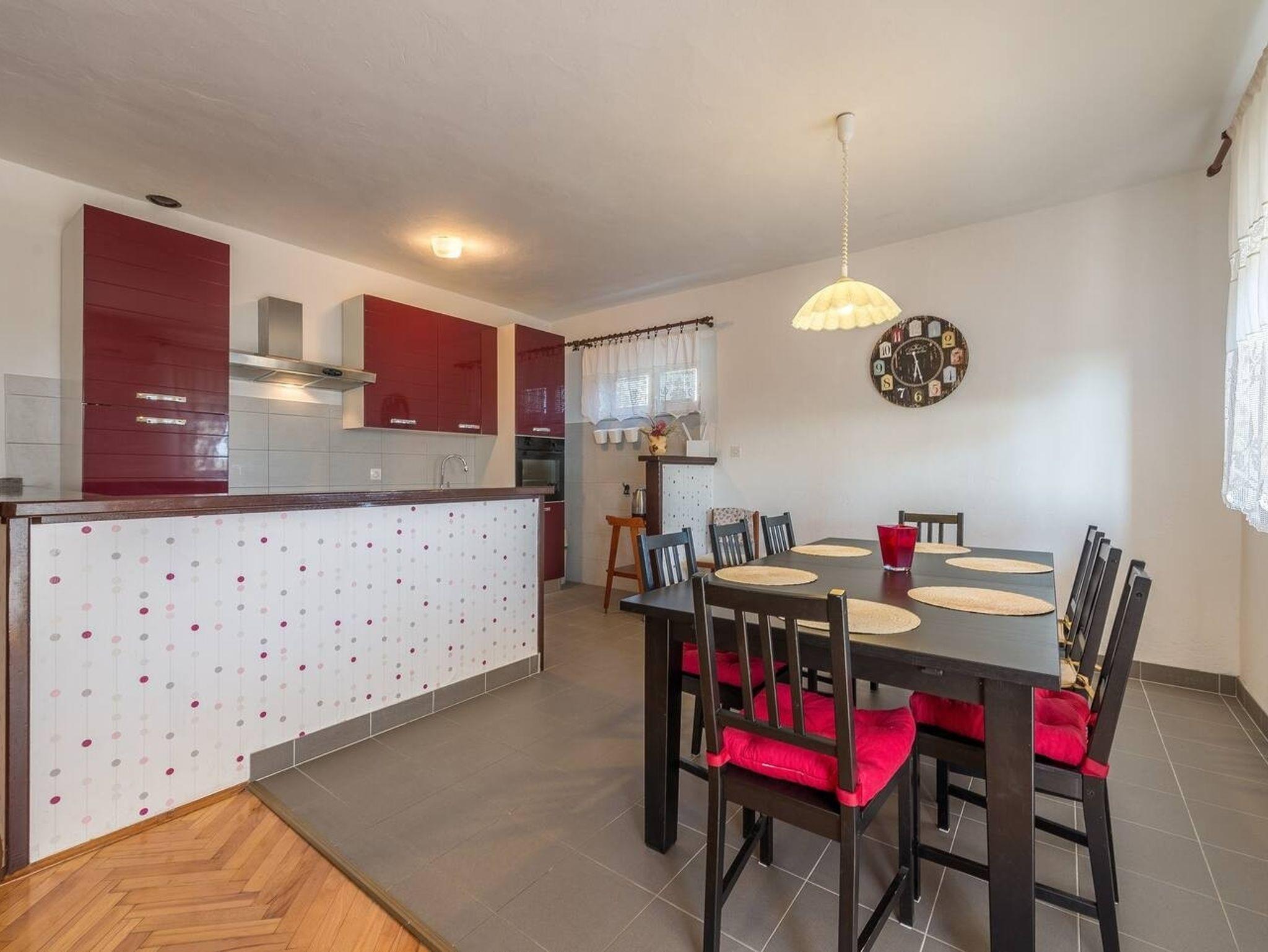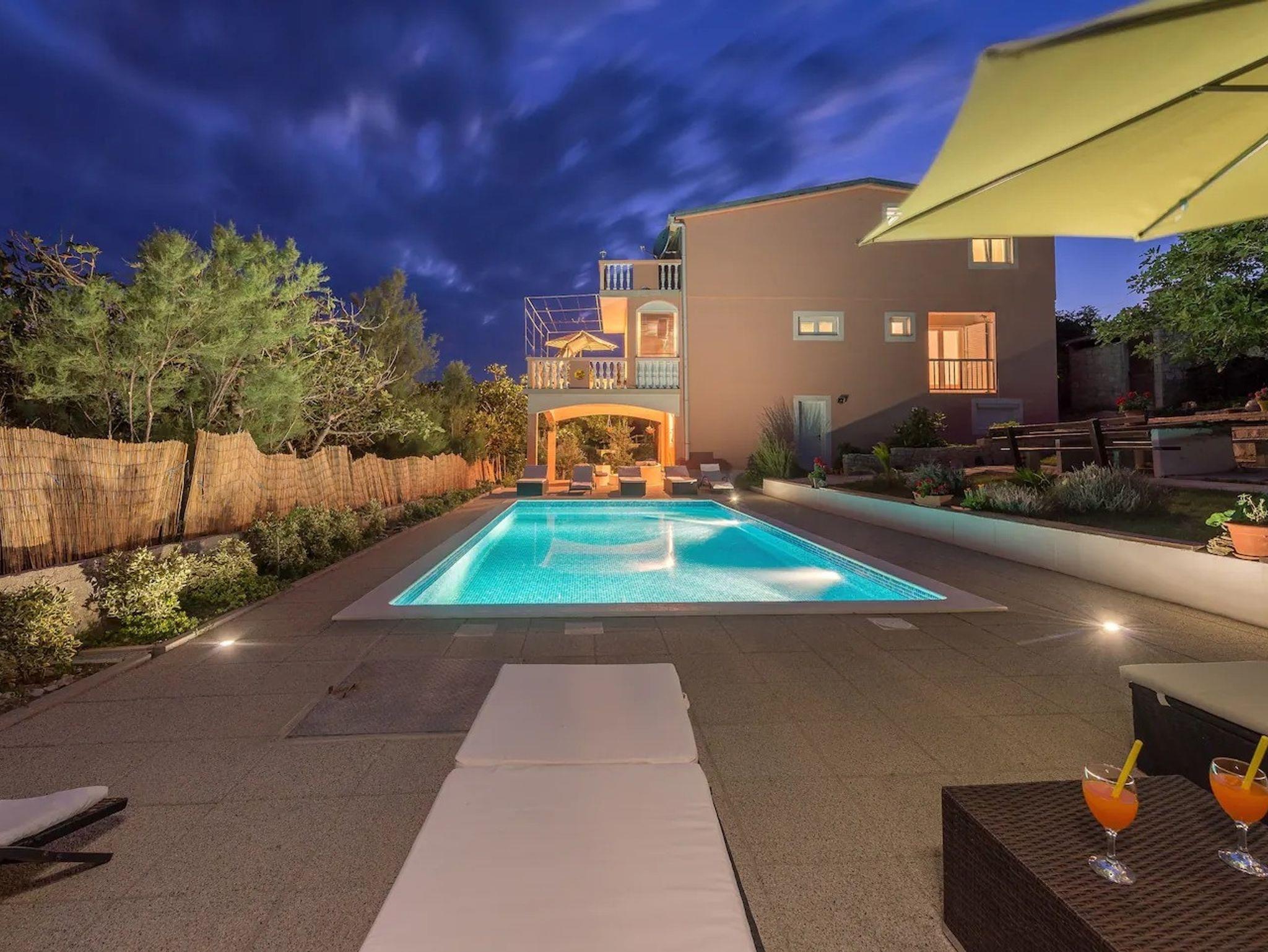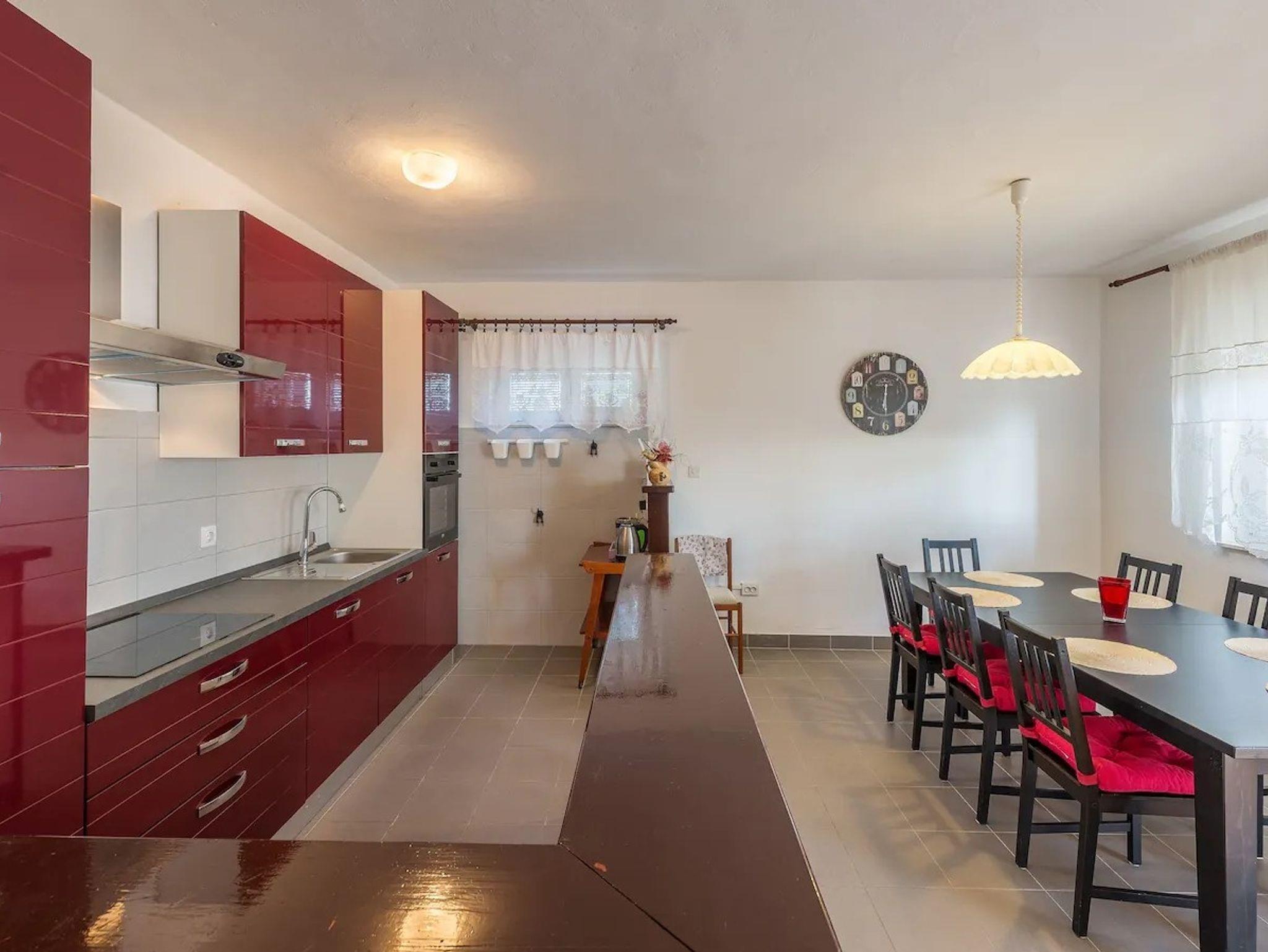 Ferienwohnung bietet Platz für 10 Gäste. Die Betten sind in Schlafzimmern, die es 4 gibt, und in Wohnzimmer, innerhalb einer Gesamtfläche von 97m2, angeordnet. Die Gäste haben eine eigene Terrasse zur Verfügung, auf der sie in warmen Sommernächten genießen können. Es ist erlaubt, Speisen auf dem Gemeinschafts-Grill vorzubereiten. Während ihres Aufenthalts können Gäste das gemeinsam zur Nutzung stehende Schwimmbad benutzen. In der Unterkunftseinheit besteht die Möglichkeit des Mitbringens von Haustieren, und die Dienstleistung ist im Preis der Unterkunft enthalten. IM PREIS INBEGRIFFEN: Kurtaxe, Endreinigung, Klimatisierung, Pool, Parkplatz, Internet, Haustiere, Kinderbett, Zusatzbett, Bügeleisen, Bügelbrett, Föhn. VERBINDLICHE ZUSÄTZLICHE KOSTEN: Aufzahlung für Kurzaufenthalte (prozentualer Zuschlag pro Nächtigungsanzahl: 30% - 1, 20% - 2, 10% - 3). Die Verfügbarkeit zusätzlicher Dienstleistungen in Ihrem reservierten Termin und die Preise derselben (falls nicht aufgeführt) müssen im Voraus überprüft werden. Zusätzliche Dienstleistungen die in der Zahlungsaufforderung nicht aufgeführt sind werden direkt beim Vermieter bezahlt, angenommen der Gast nutzt auch diese. Ermäßigung auf den Grundpreis: Gratistag 14=13 (bei einem Aufenthalt von 14 Tagen oder mehr erhalten Sie einen Gratistag für den Aufenthalt bis 31.12.26).