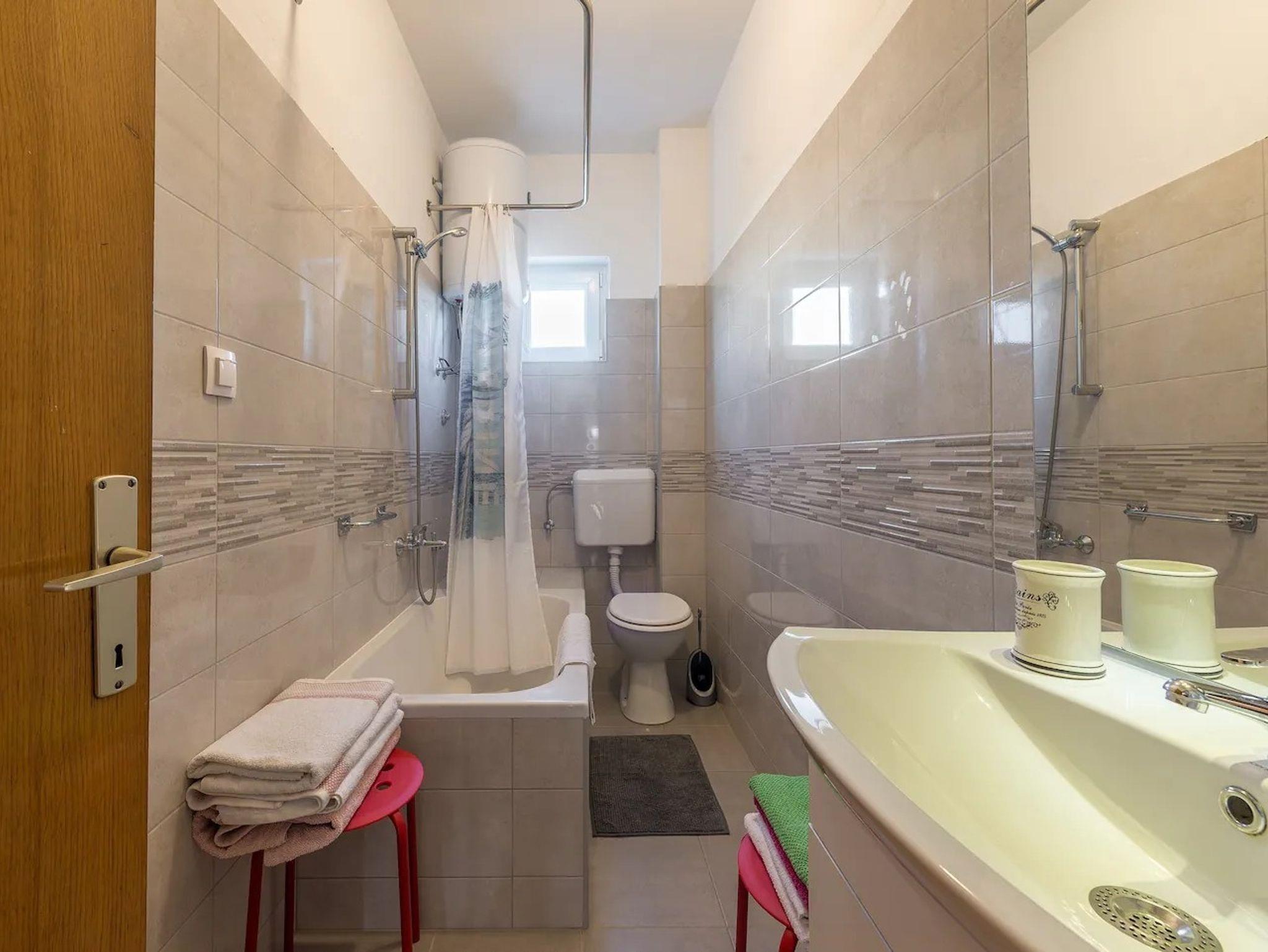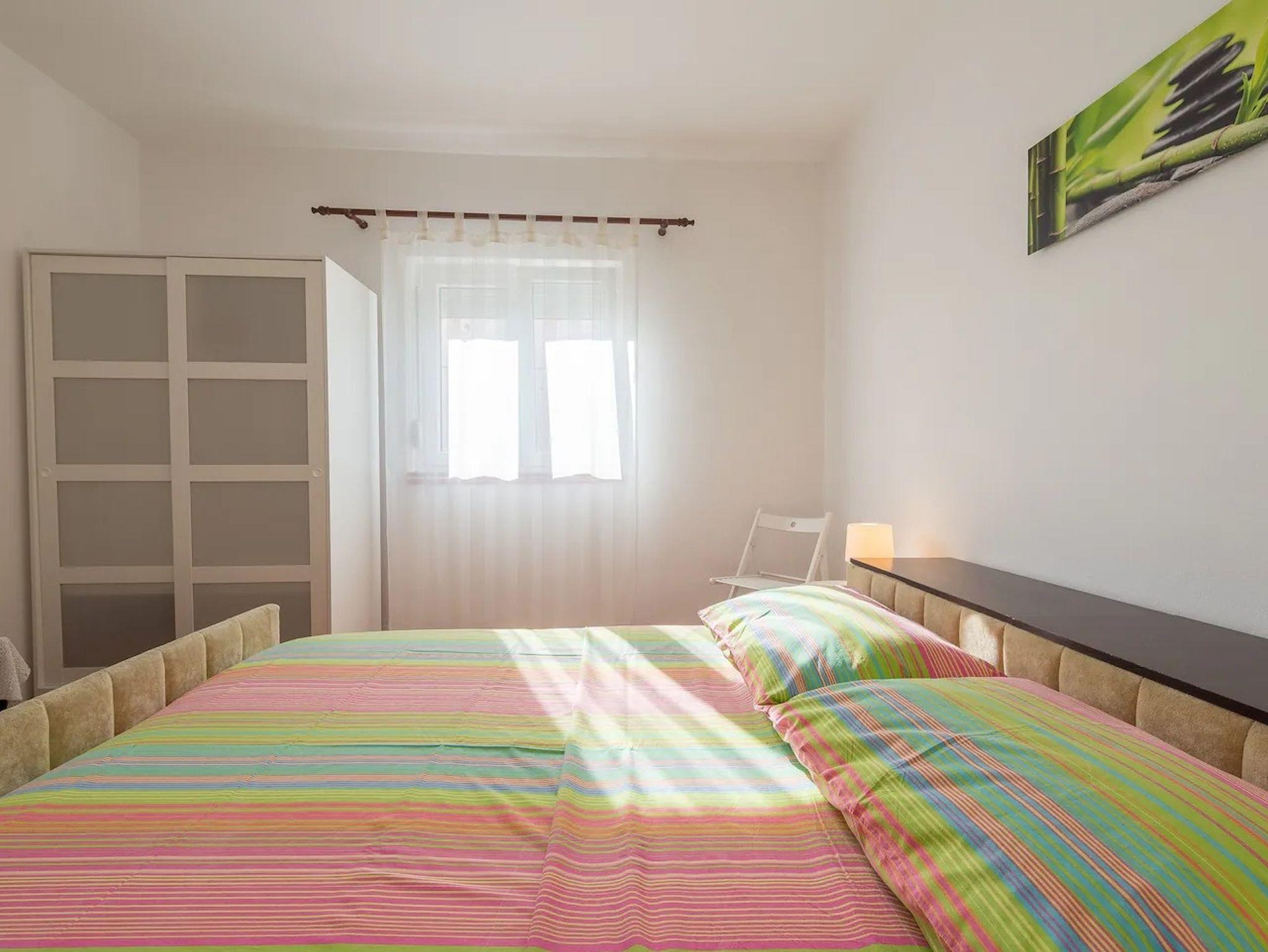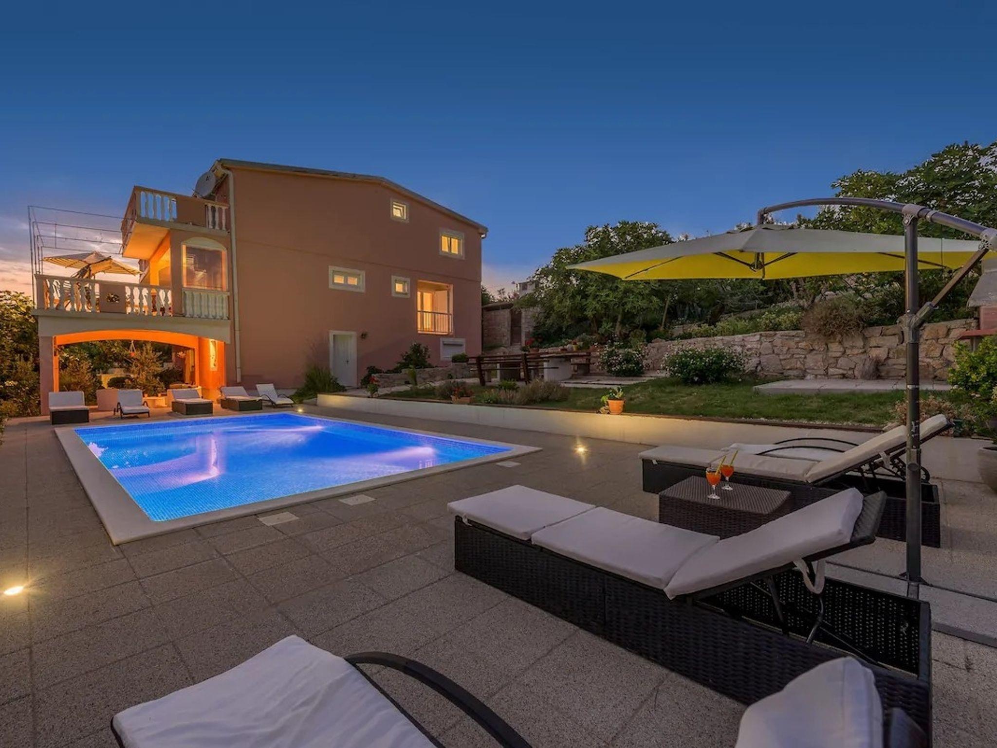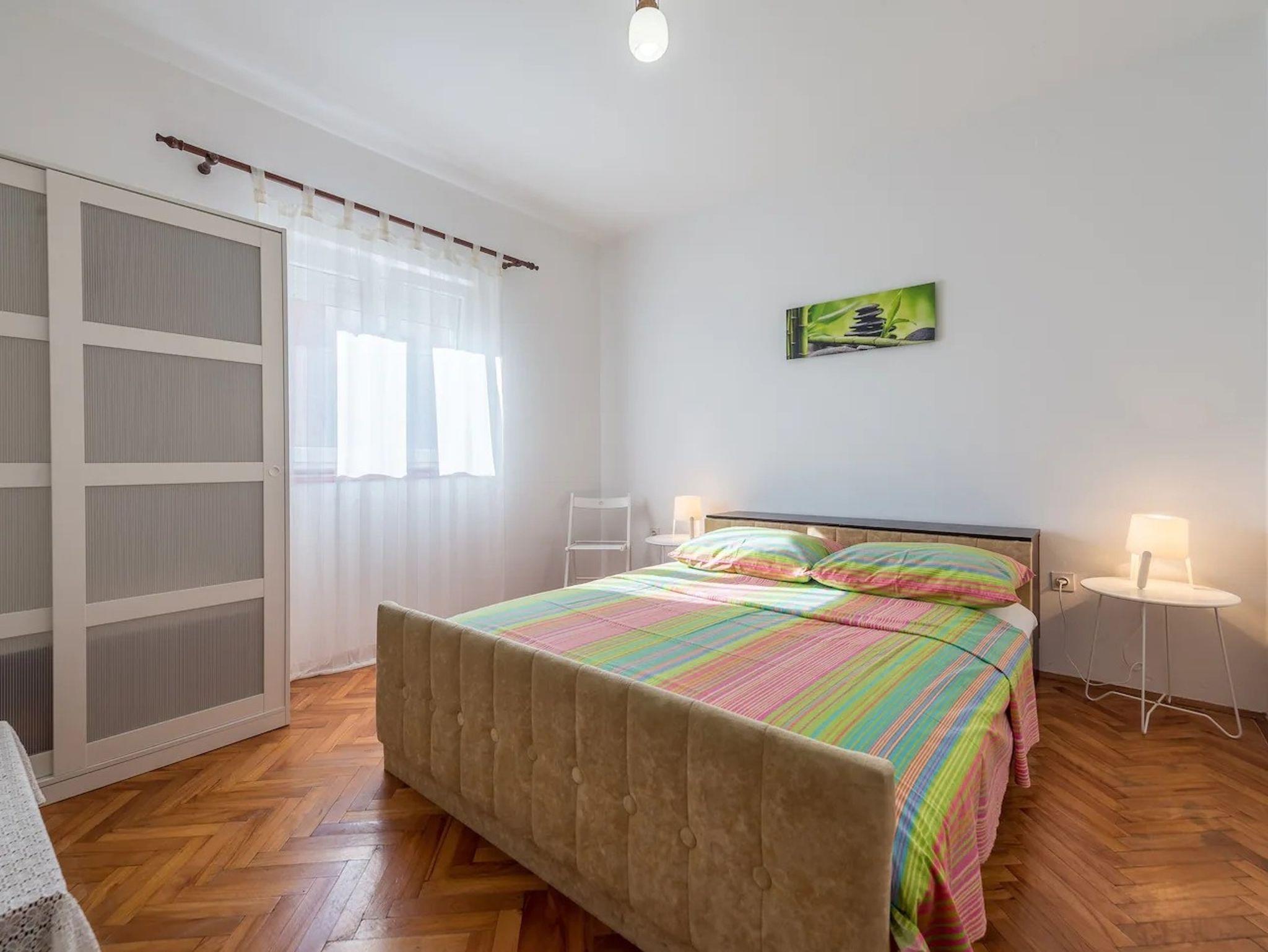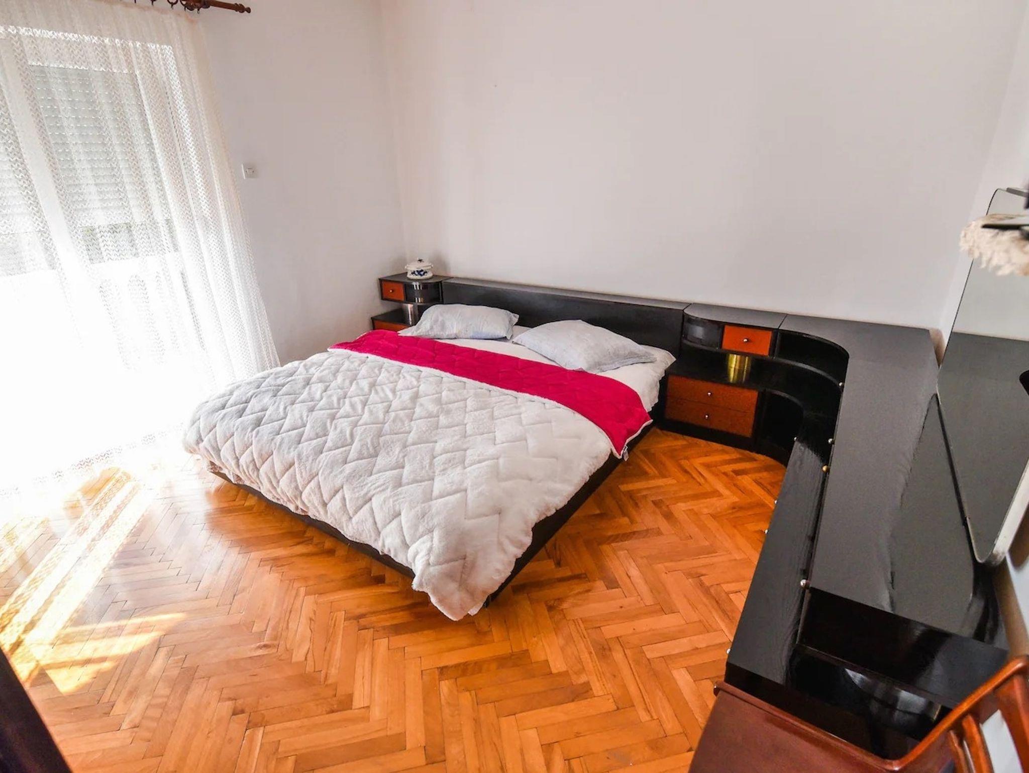 Ferienwohnung bietet Platz für 10 Gäste. Die Betten sind in Schlafzimmern, die es 4 gibt, und in Wohnzimmer, innerhalb einer Gesamtfläche von 97m2, angeordnet. Die Gäste haben eine eigene Terrasse zur Verfügung, auf der sie in warmen Sommernächten genießen können. Es ist erlaubt, Speisen auf dem Gemeinschafts-Grill vorzubereiten. Während ihres Aufenthalts können Gäste das gemeinsam zur Nutzung stehende Schwimmbad benutzen. In der Unterkunftseinheit besteht die Möglichkeit des Mitbringens von Haustieren, und die Dienstleistung ist im Preis der Unterkunft enthalten. IM PREIS INBEGRIFFEN: Kurtaxe, Endreinigung, Klimatisierung, Pool, Parkplatz, Internet, Haustiere, Kinderbett, Zusatzbett, Bügeleisen, Bügelbrett, Föhn. VERBINDLICHE ZUSÄTZLICHE KOSTEN: Aufzahlung für Kurzaufenthalte (prozentualer Zuschlag pro Nächtigungsanzahl: 30% - 1, 20% - 2, 10% - 3). Die Verfügbarkeit zusätzlicher Dienstleistungen in Ihrem reservierten Termin und die Preise derselben (falls nicht aufgeführt) müssen im Voraus überprüft werden. Zusätzliche Dienstleistungen die in der Zahlungsaufforderung nicht aufgeführt sind werden direkt beim Vermieter bezahlt, angenommen der Gast nutzt auch diese. Ermäßigung auf den Grundpreis: Gratistag 14=13 (bei einem Aufenthalt von 14 Tagen oder mehr erhalten Sie einen Gratistag für den Aufenthalt bis 31.12.26).