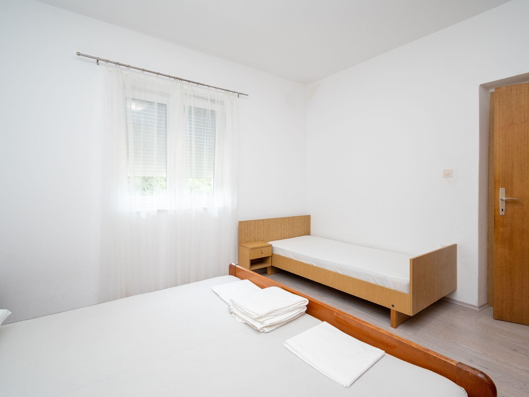 Ferienwohnung bietet Platz für 4 Gäste. Die Betten sind in Schlafzimmern, die es 2 gibt, innerhalb einer Gesamtfläche von 48m2, angeordnet. Die Gäste haben eine eigene Terrasse zur Verfügung, auf der sie in warmen Sommernächten genießen können. Das Apartment bietet Meerblick. In der Unterkunftseinheit besteht die Möglichkeit des Mitbringens von Haustieren gegen Aufpreis. IM PREIS INBEGRIFFEN: Kurtaxe, Endreinigung, Klimatisierung, Parkplatz, Internet, Bügeleisen, Bügelbrett, Föhn, Liegestühle. VERBINDLICHE ZUSÄTZLICHE KOSTEN: Aufzahlung für Kurzaufenthalte (prozentualer Zuschlag pro Nächtigungsanzahl: 30% - 1, 20% - 2, 10% - 3). UNVERBINDLICHE ZUSÄTZLICHE KOSTEN: Haustiere (15,00 € pro Nacht). Die Verfügbarkeit zusätzlicher Dienstleistungen in Ihrem reservierten Termin und die Preise derselben (falls nicht aufgeführt) müssen im Voraus überprüft werden. Zusätzliche Dienstleistungen die in der Zahlungsaufforderung nicht aufgeführt sind werden direkt beim Vermieter bezahlt, angenommen der Gast nutzt auch diese.