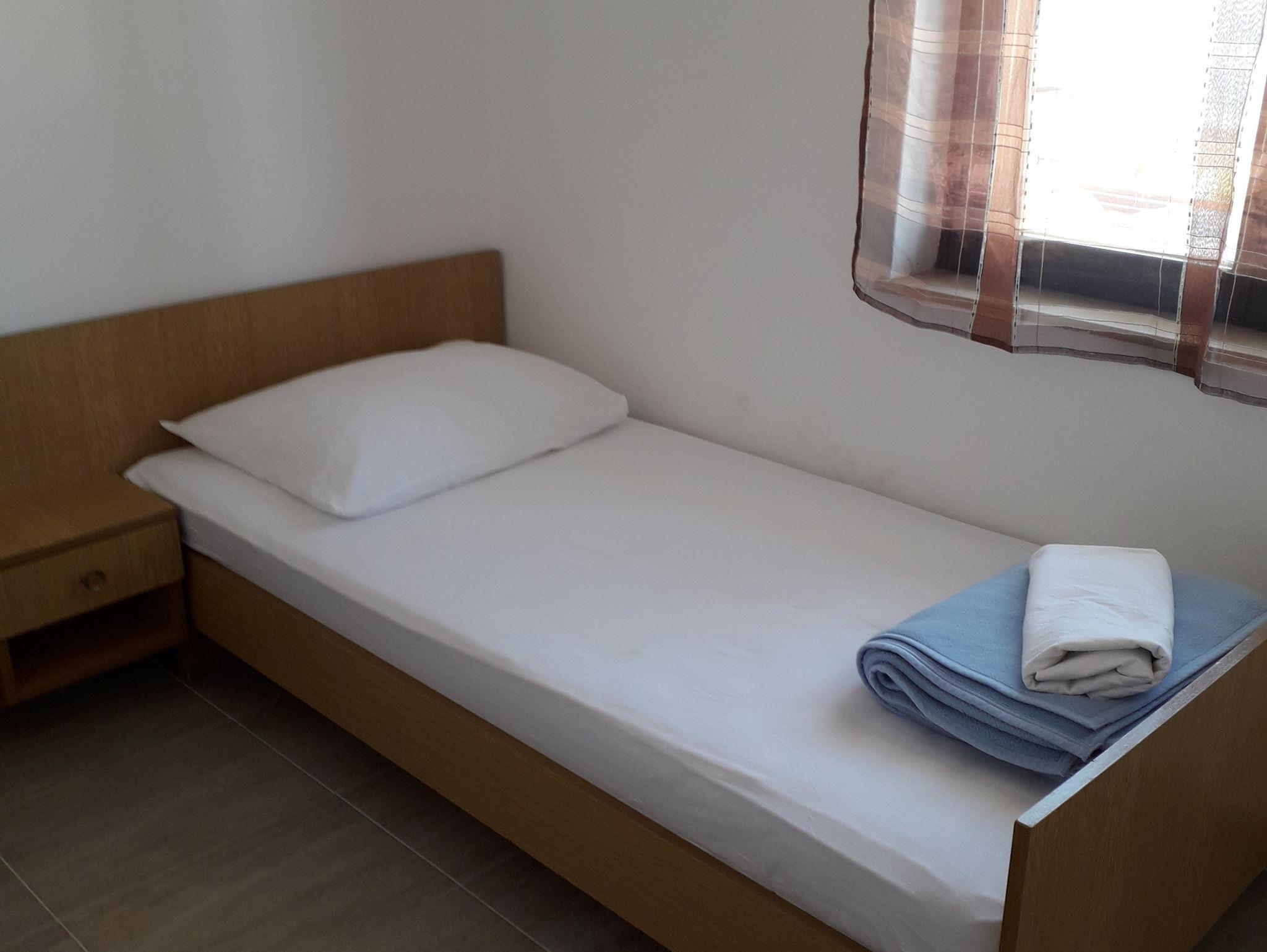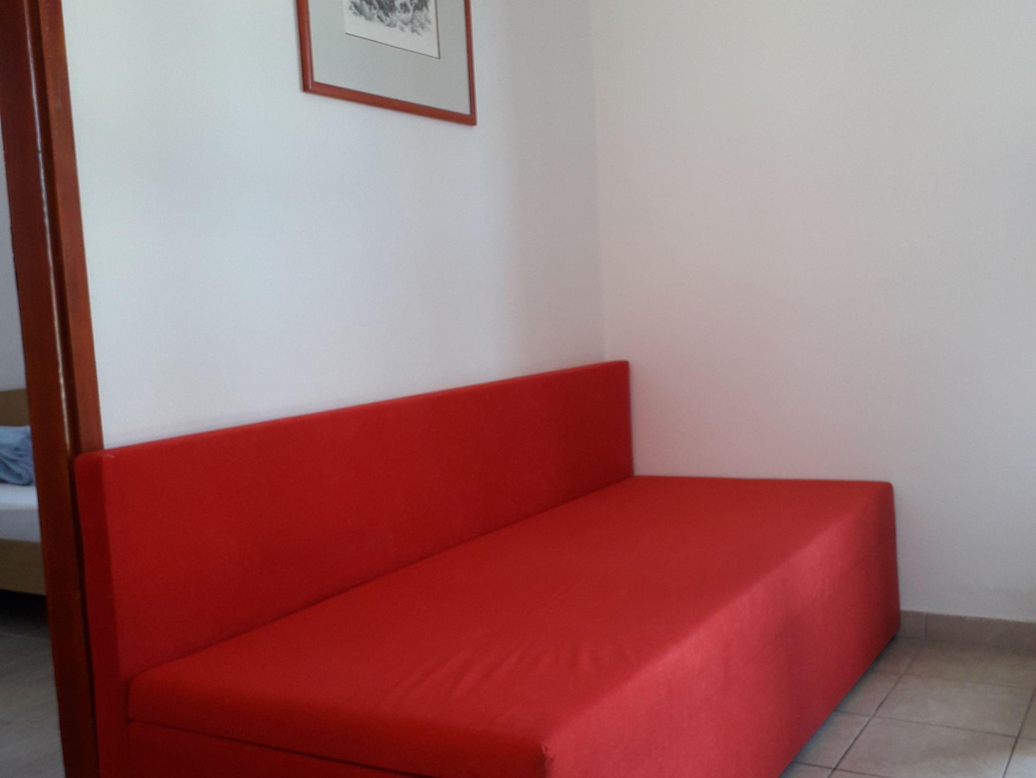 Ferienwohnung bietet Platz für 5 Gäste. Die Betten sind in Schlafzimmern, die es 2 gibt, und in Wohnzimmer, innerhalb einer Gesamtfläche von 41m2, angeordnet. Die Gäste haben eine eigene Terrasse zur Verfügung, auf der sie in warmen Sommernächten genießen können. Das Apartment bietet Meerblick. Es ist erlaubt, Speisen auf dem Gemeinschafts-Grill vorzubereiten. In der Unterkunftseinheit besteht die Möglichkeit des Mitbringens von Haustieren, und die Dienstleistung ist im Preis der Unterkunft enthalten. IM PREIS INBEGRIFFEN: Kurtaxe, Endreinigung, Klimatisierung, Parkplatz, Internet, Haustiere. VERBINDLICHE ZUSÄTZLICHE KOSTEN: Aufzahlung für Kurzaufenthalte (prozentualer Zuschlag pro Nächtigungsanzahl: 30% - 1, 20% - 2, 10% - 3). Die Verfügbarkeit zusätzlicher Dienstleistungen in Ihrem reservierten Termin und die Preise derselben (falls nicht aufgeführt) müssen im Voraus überprüft werden. Zusätzliche Dienstleistungen die in der Zahlungsaufforderung nicht aufgeführt sind werden direkt beim Vermieter bezahlt, angenommen der Gast nutzt auch diese.