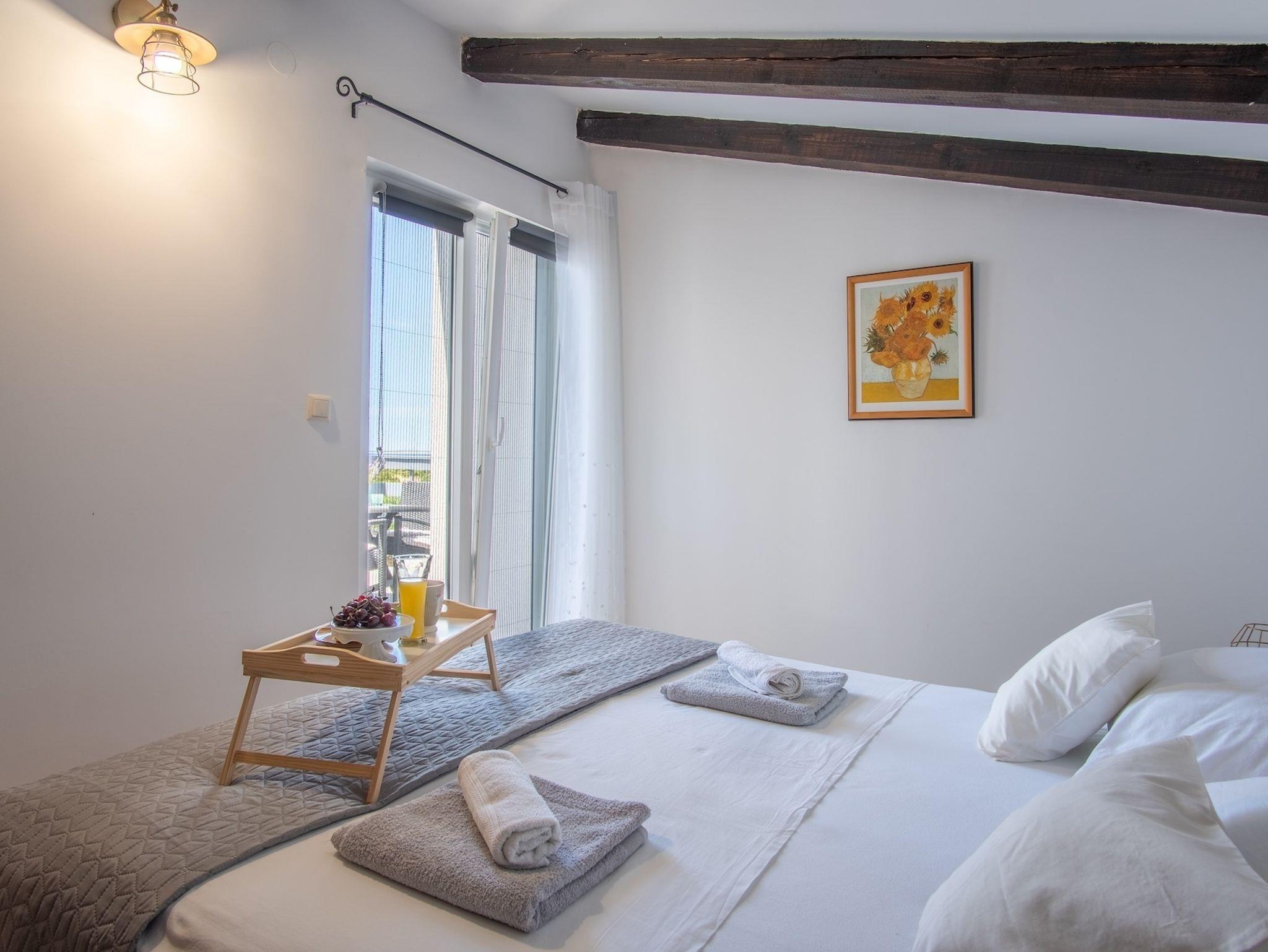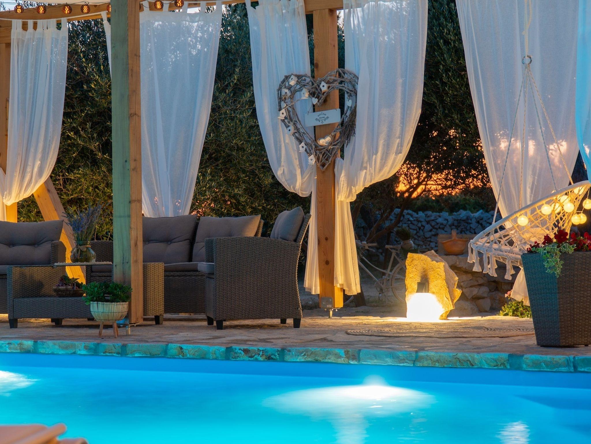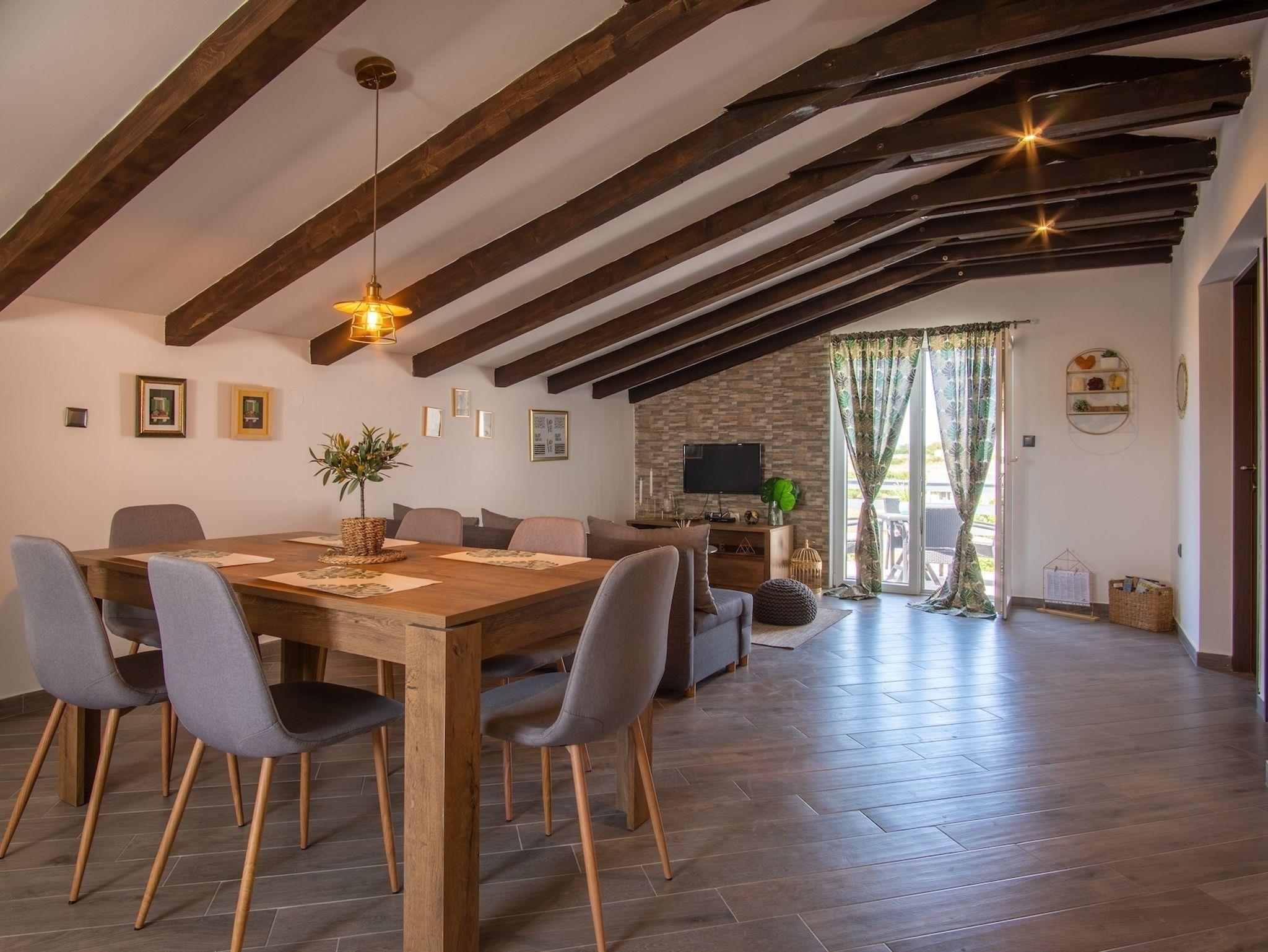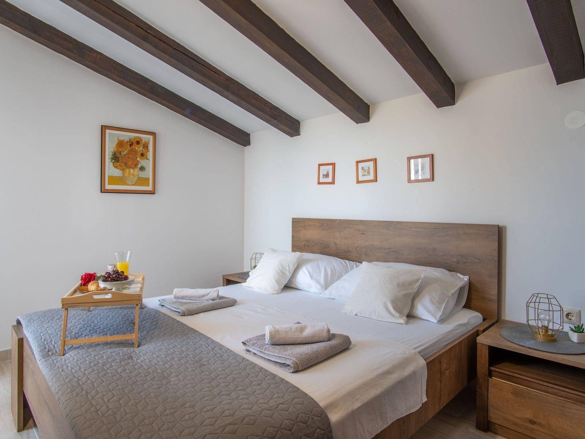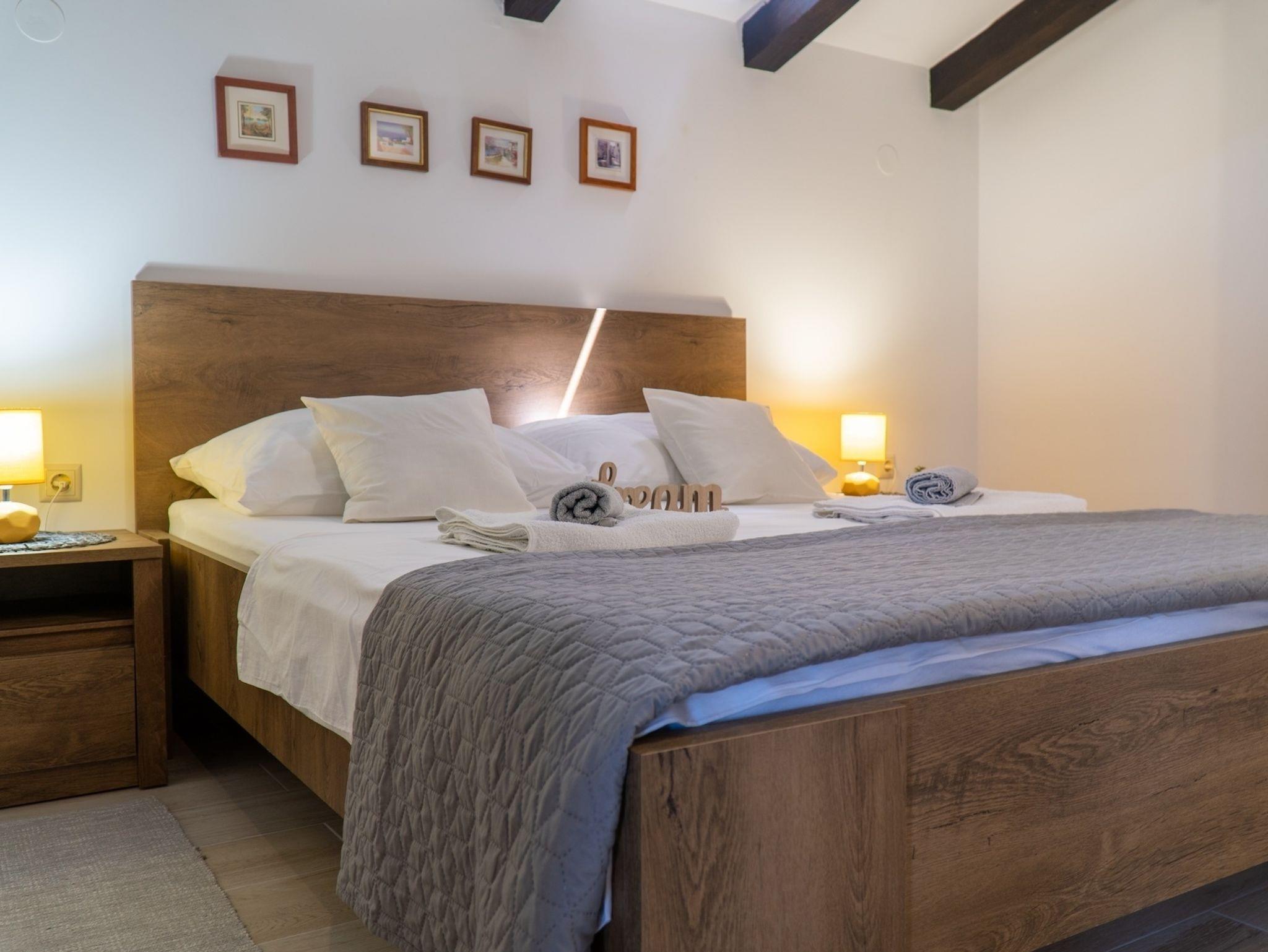Haus bietet Platz für 12 Gäste. Die Betten sind in Schlafzimmern, die es 5 gibt, und in Wohnzimmer, innerhalb einer Gesamtfläche von 203m2, angeordnet. Die Gäste haben einen eigenen Balkon zur Verfügung, auf der sie in warmen Sommernächten genießen können. Für vollen Genuss und Entspannung gibt es einen privaten Grill für Gäste dieser Unterkunft. Während ihres Aufenthalts können Gäste das gemeinsam zur Nutzung stehende Schwimmbad benutzen. In der Unterkunftseinheit besteht die Möglichkeit des Mitbringens von Haustieren, und die Dienstleistung ist im Preis der Unterkunft enthalten. IM PREIS INBEGRIFFEN: Kurtaxe, Endreinigung, Klimatisierung, Pool, Parkplatz, Internet, Wäschewaschen, Haustiere, Kinderbett, Bügeleisen, Bügelbrett, Föhn. Die Verfügbarkeit zusätzlicher Dienstleistungen in Ihrem reservierten Termin und die Preise derselben (falls nicht aufgeführt) müssen im Voraus überprüft werden. Zusätzliche Dienstleistungen die in der Zahlungsaufforderung nicht aufgeführt sind werden direkt beim Vermieter bezahlt, angenommen der Gast nutzt auch diese.