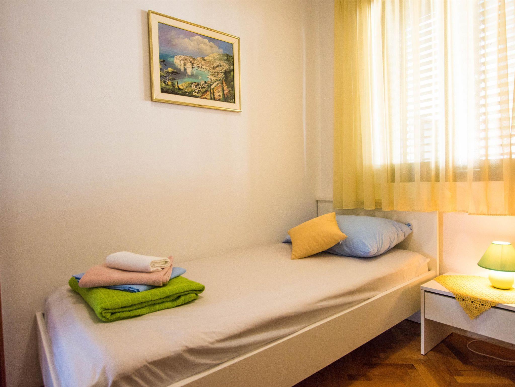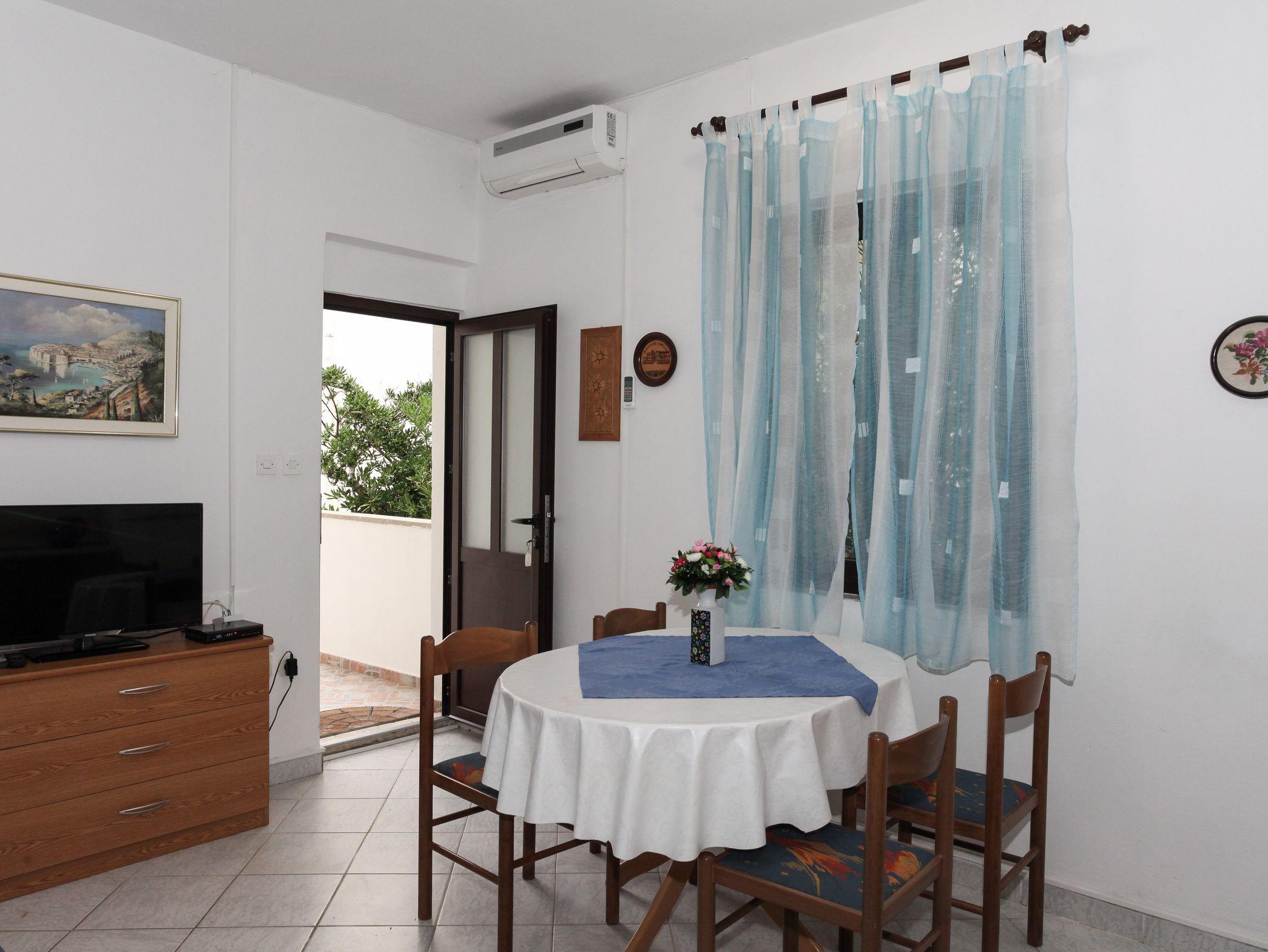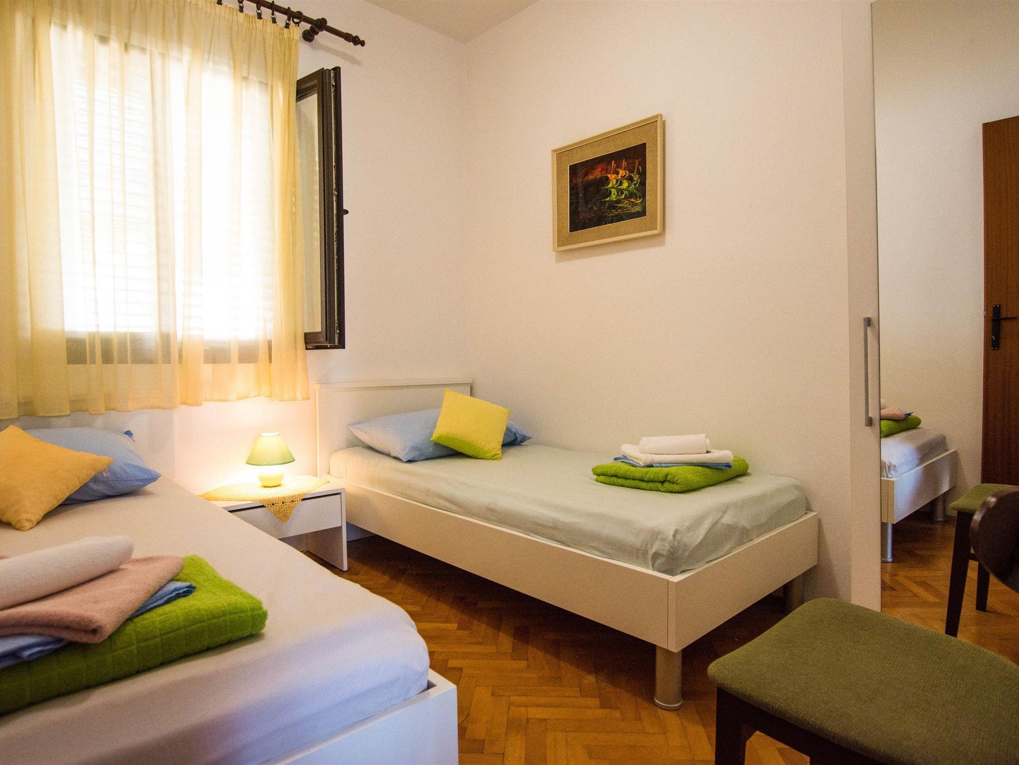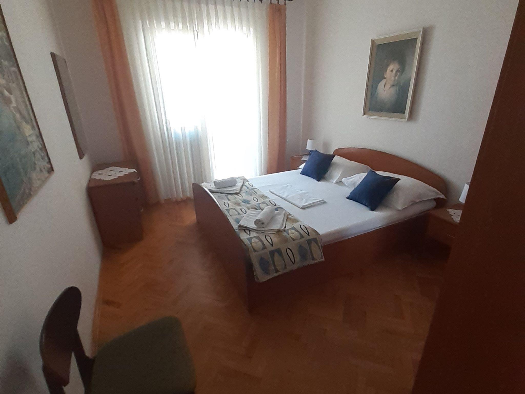 Ferienwohnung bietet Platz für 4 Gäste. Die Betten sind in Schlafzimmern, die es 2 gibt, innerhalb einer Gesamtfläche von 45m2, angeordnet. Die Gäste haben eine eigene Terrasse zur Verfügung, auf der sie in warmen Sommernächten genießen können. Das Apartment bietet Meerblick. Es ist erlaubt, Speisen auf dem Gemeinschafts-Grill vorzubereiten. IM PREIS INBEGRIFFEN: Kurtaxe, Endreinigung, Parkplatz, Internet, Wäschewaschen, Kinderbett, Bügeleisen, Bügelbrett, Föhn. VERBINDLICHE ZUSÄTZLICHE KOSTEN: Aufzahlung für Kurzaufenthalte (prozentualer Zuschlag pro Nächtigungsanzahl: 30% - 1, 20% - 2, 10% - 3). UNVERBINDLICHE ZUSÄTZLICHE KOSTEN: Klimatisierung (5,00 € pro Nacht), Zusatzbett (10,00 € pro Nacht). Die Verfügbarkeit zusätzlicher Dienstleistungen in Ihrem reservierten Termin und die Preise derselben (falls nicht aufgeführt) müssen im Voraus überprüft werden. Zusätzliche Dienstleistungen die in der Zahlungsaufforderung nicht aufgeführt sind werden direkt beim Vermieter bezahlt, angenommen der Gast nutzt auch diese.