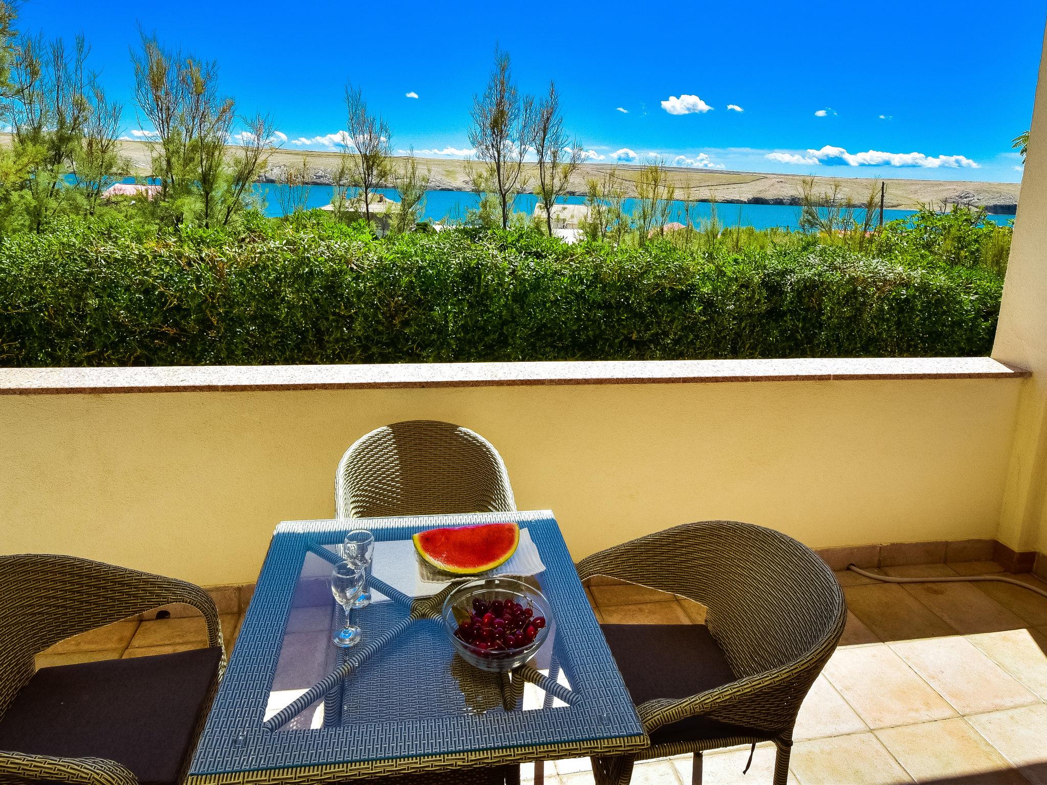 3-family house "Marija". 14 km from the centre of Pag, in a quiet, sunny, elevated position, 130 m from the sea, 130 m from the beach, in a cul-de-sac, in the countryside. For shared use: property 500 m2, swimming pool (11 x 4 m, depth 80 - 150 cm, seasonal availability: 25.Apr. - 26.Sep.) with internal staircase. Outdoor shower, table tennis, terrace, garden furniture, barbecue. In the house: internet access, washing machine (for shared use, extra). Available: canoe (extra). Parking at the house on the premises. Shop 450 m, restaurant 130 m, bus stop 800 m, sandy beach, pebble beach 130 m. Nearby attractions: NP Paklenica 50 km, NP Krka 90 km. Please note: Property ref. HR3955.110 is situated on the same property. For shared use with the neighbouring apartment house HR3955.110: sunbathing area, outdoor kitchen (dining table, 4 hotplates, oven, refrigerator, 3 sinks, kettle, filter coffee, bar),tavern with open-hearth place, dining table, terrace furniture and kitchen (4 hot plates, oven, 2 fridges, microwave, electric coffee machine). Motor boat of the house owner can be hired (extra). Possibility of fishing with the house owner (extra).