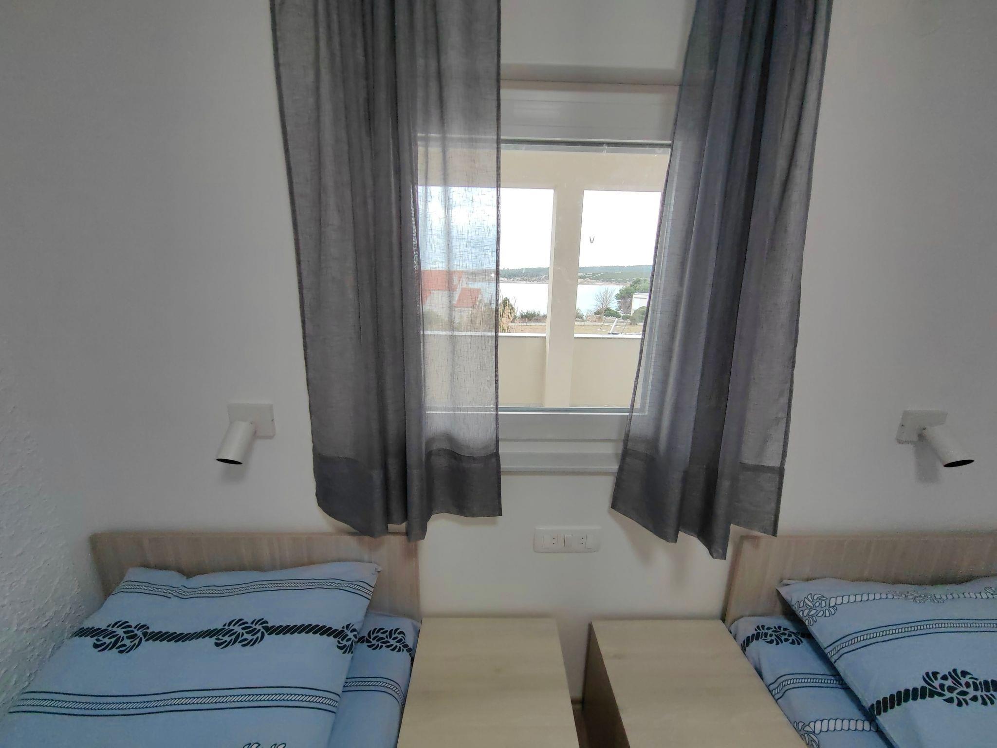 Inside, the apartment is thoughtfully equipped to cater to your every need. It features two well-appointed bedrooms, ensuring a restful night's sleep for all guests. One bedroom is furnished with a double bed, while the other offers two single beds, accommodating a variety of group dynamics. The heart of the apartment, a kitchen, comes fully equipped, ready for you to whip up delicious meals with ease. Adjacent to the kitchen, the dining room provides a comfortable space for sharing meals and moments, complete with a table and five chairs, alongside modern amenities like television, internet, and efficient air conditioning for those warm Dalmatian days.