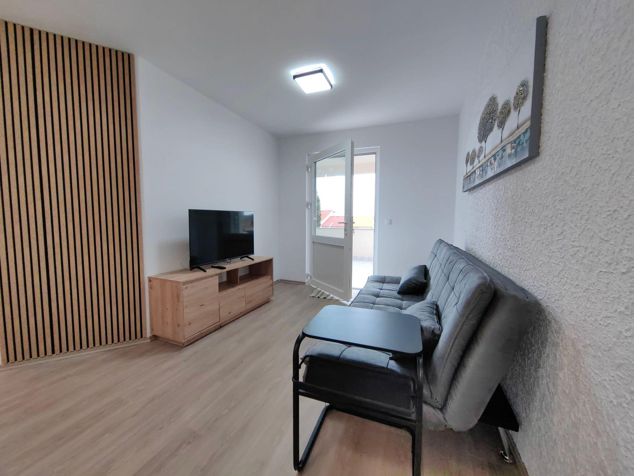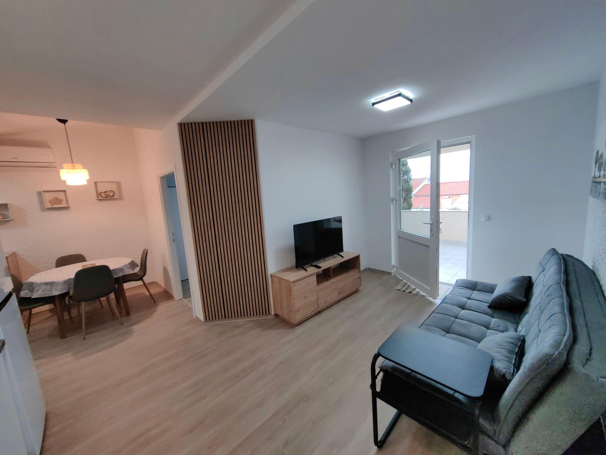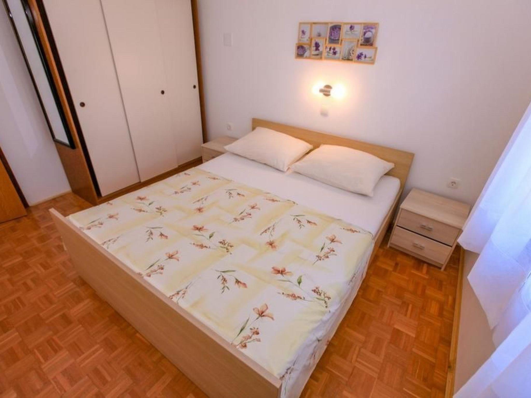 Inside, the apartment is thoughtfully equipped to ensure a comfortable and convenient stay. It features two cozy bedrooms, one with a double bed and the other with two single beds, catering to the needs of a family or a group of friends. The central air conditioning system guarantees a cool and pleasant environment throughout your stay, providing a welcome respite from the warm Dalmatian sun. Additionally, the apartment boasts a communal washing machine in the building, making it easy to keep up with laundry needs during your holiday.
